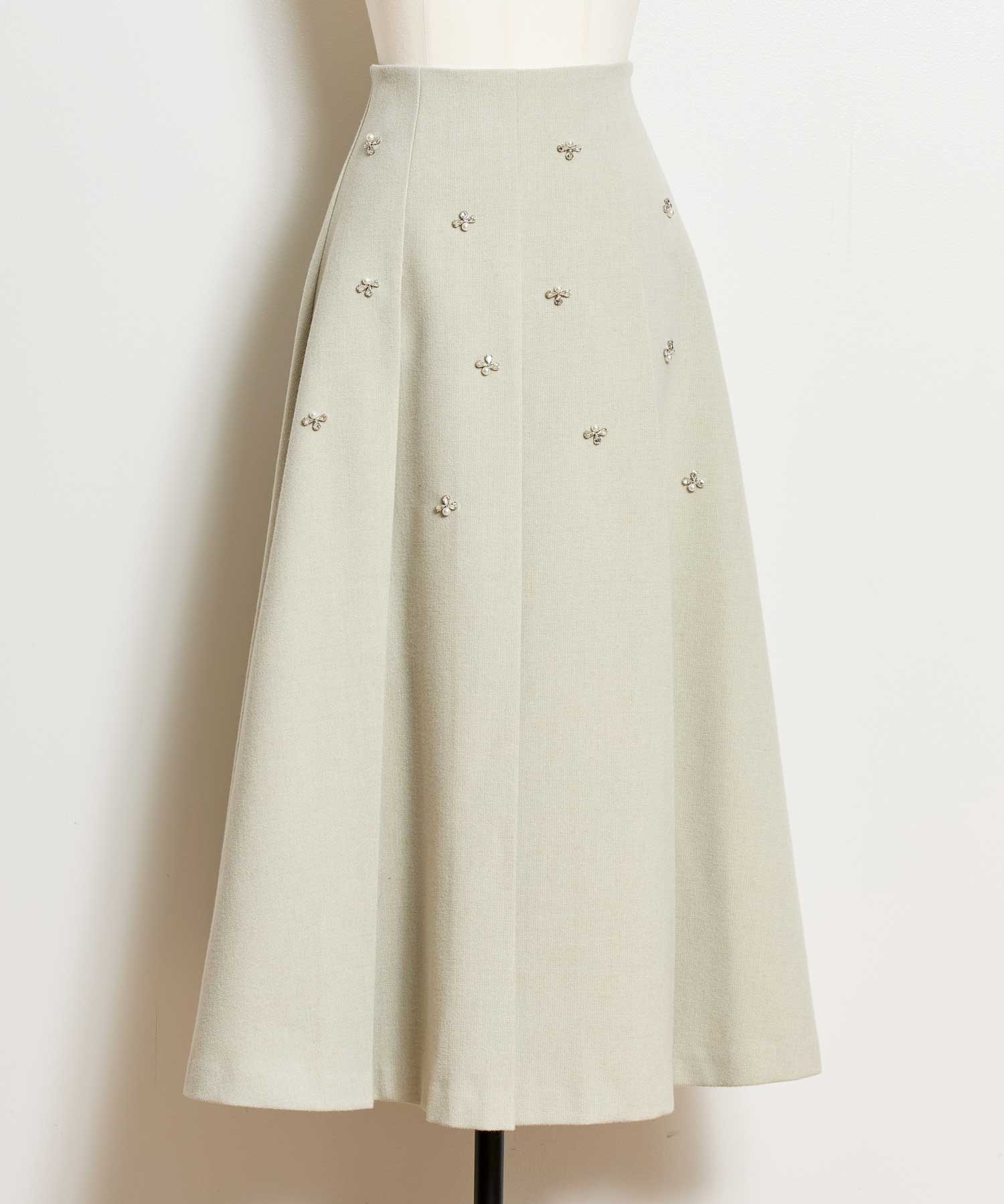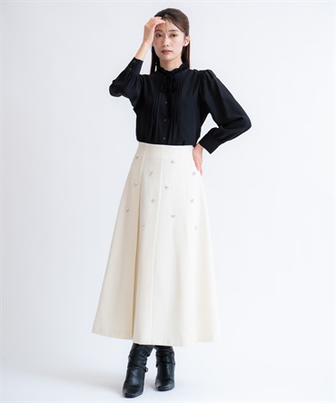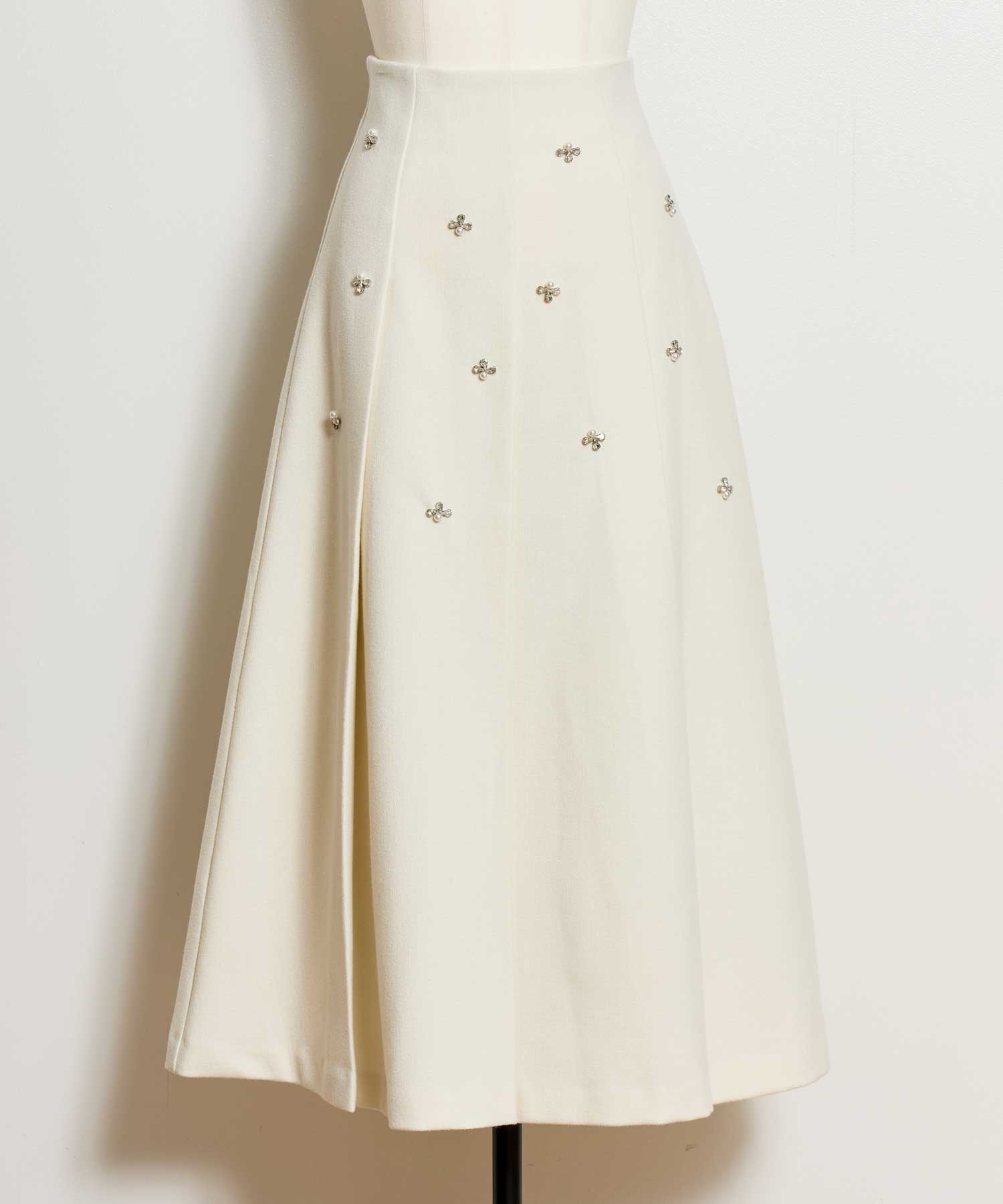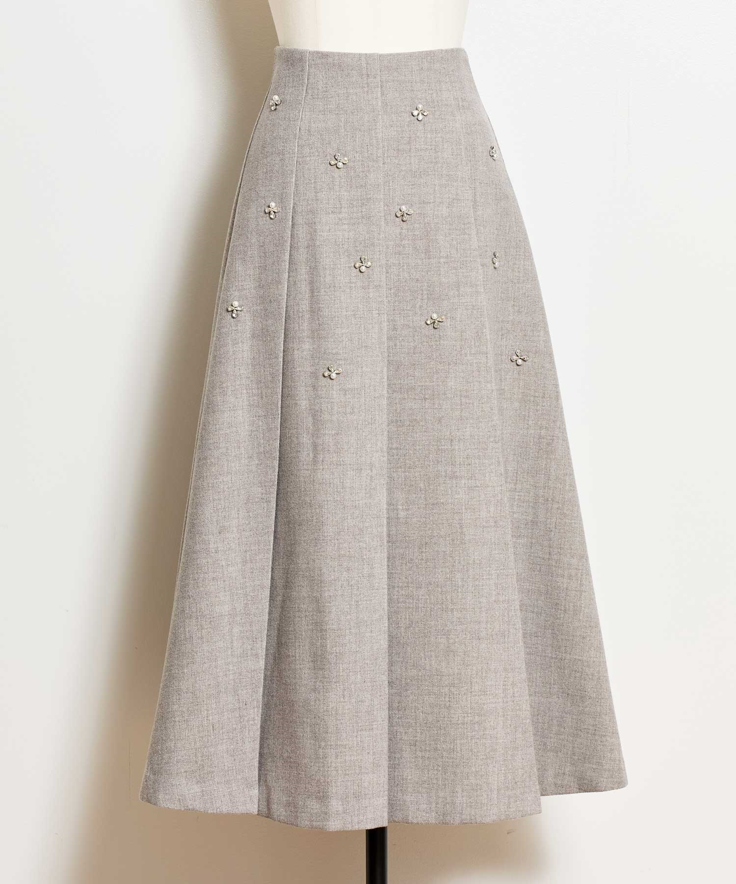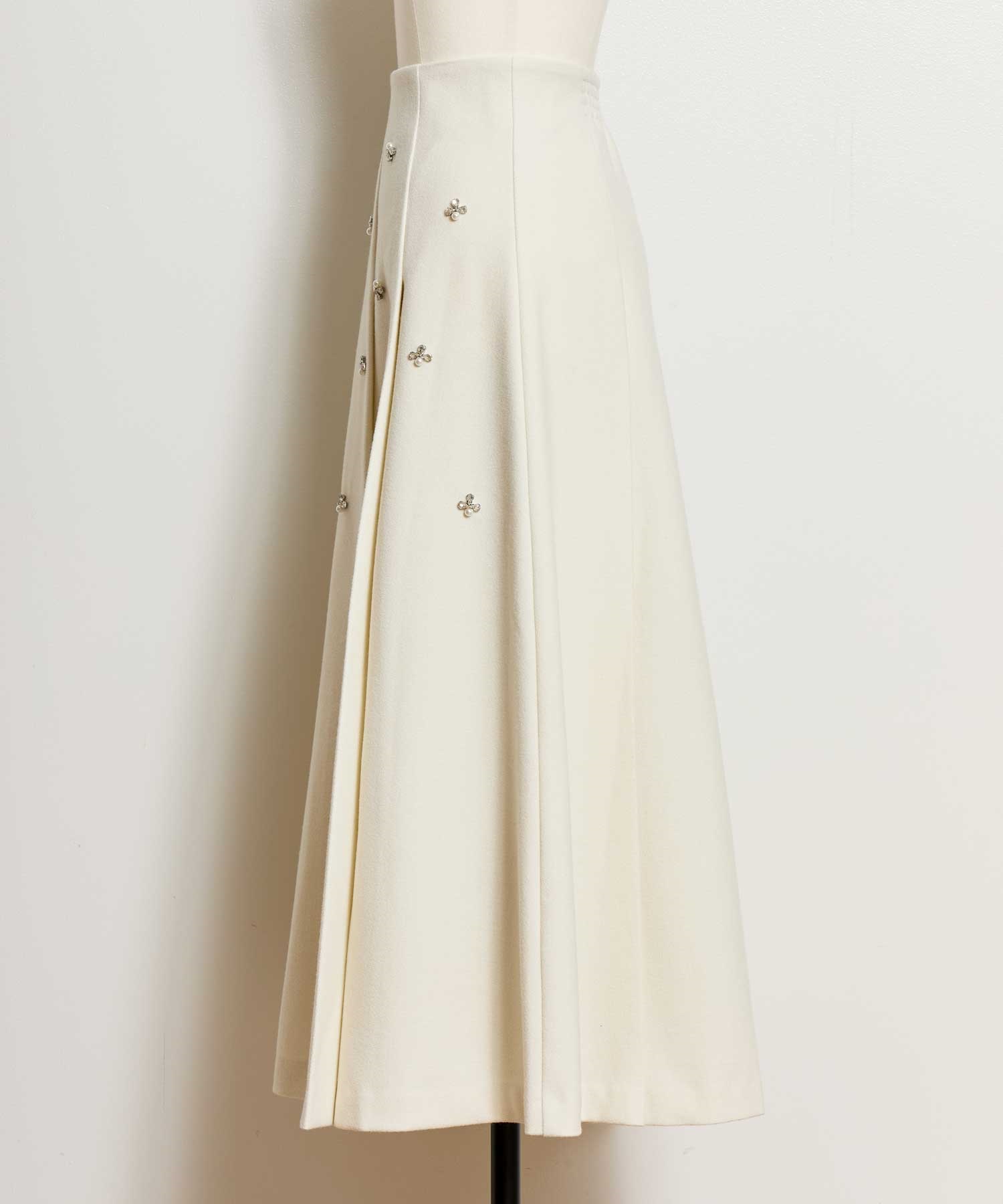 大きめのタックに、パールやビジューを贅沢にあしらったフレアスカート。