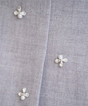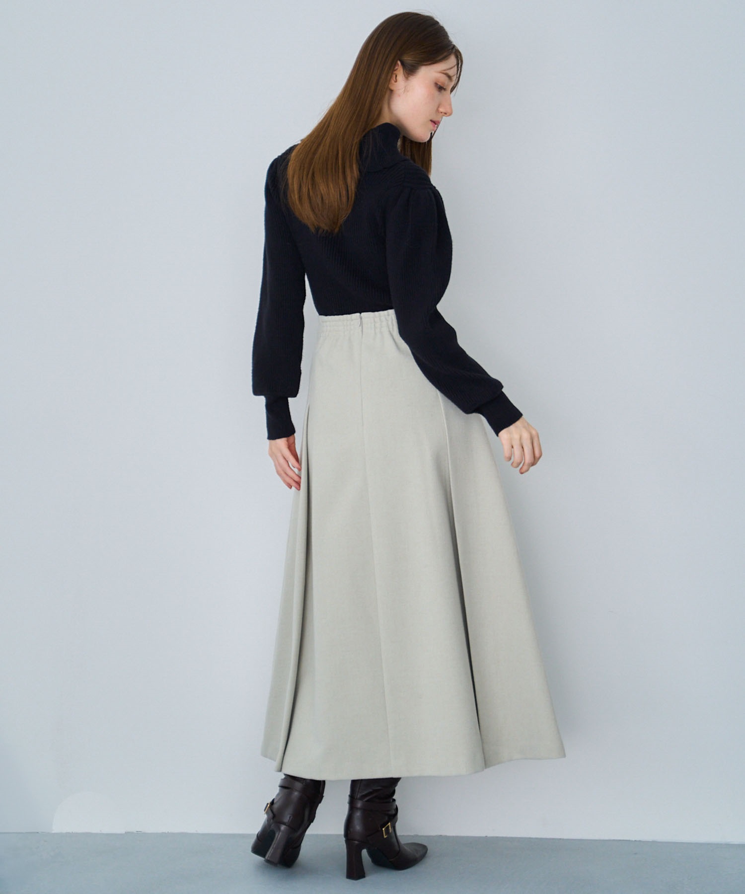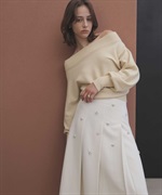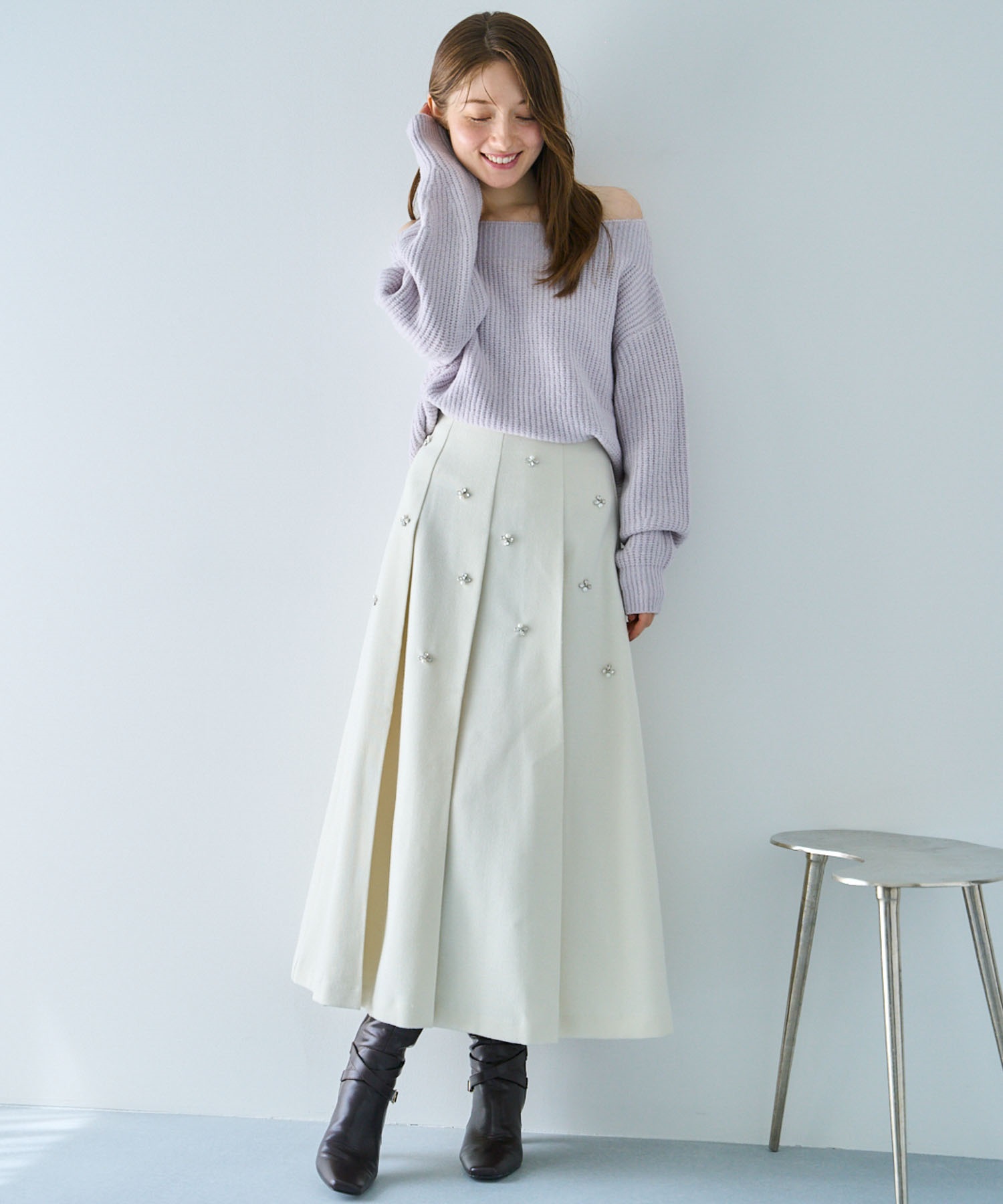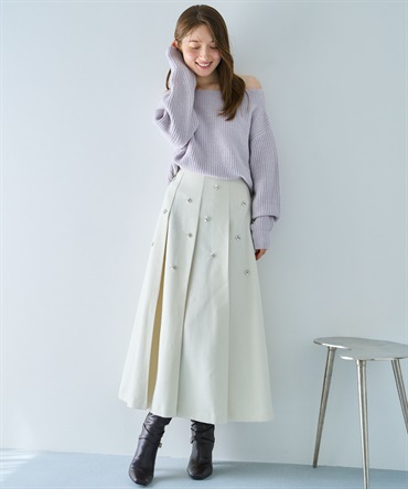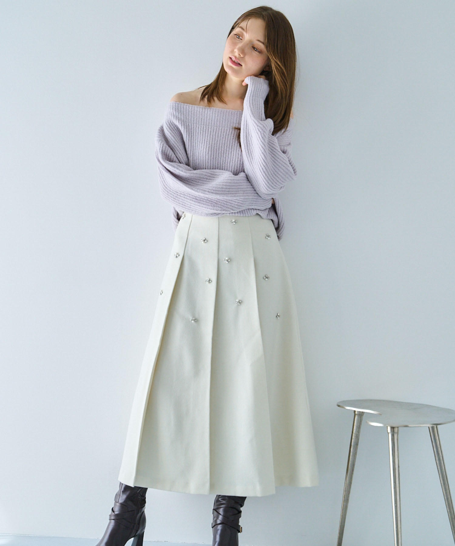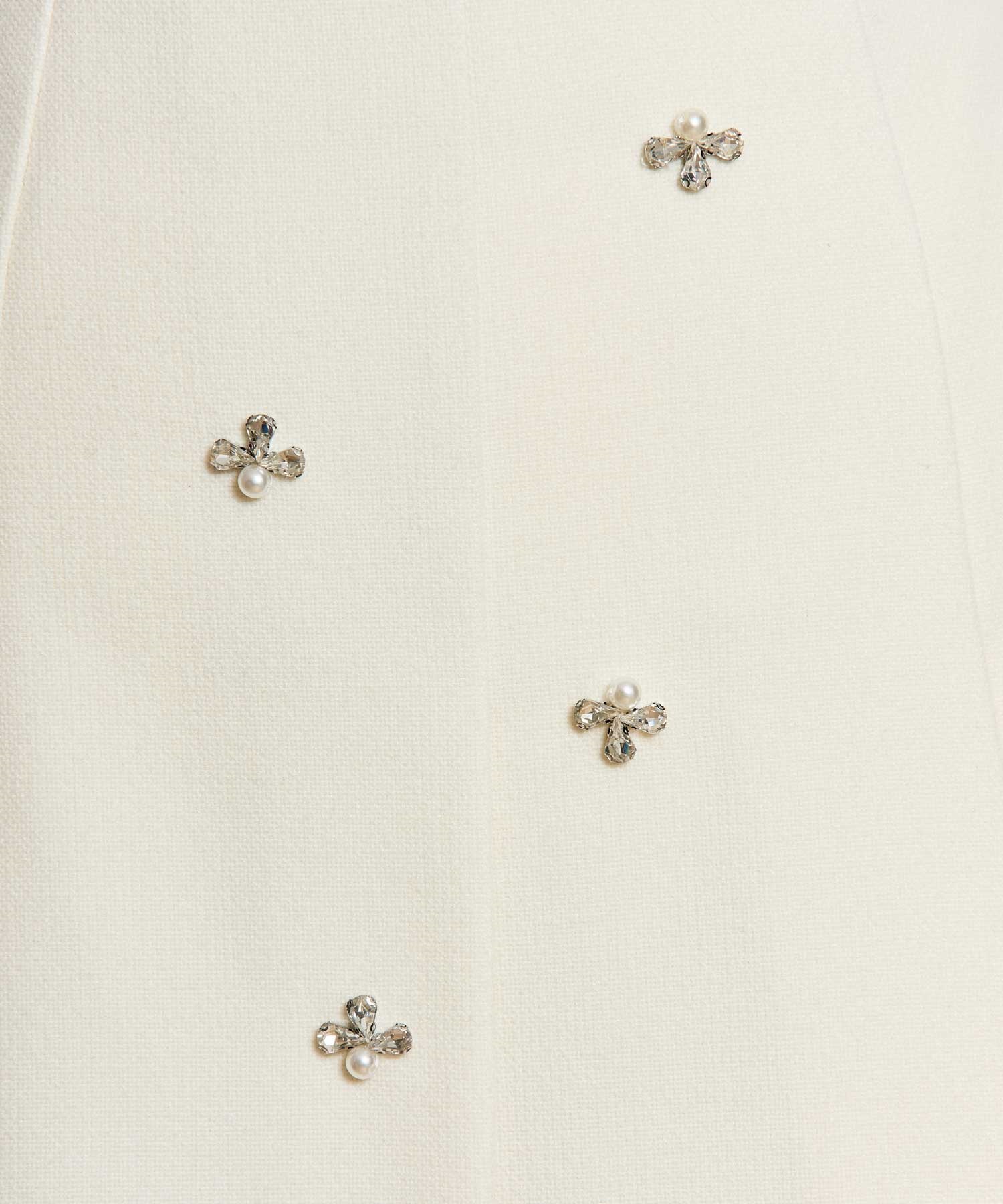 大きめのタックに、パールやビジューを贅沢にあしらったフレアスカート。