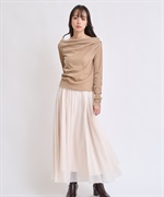 ざっくりしたニットと合わせて、カジュアルながらも女性らしい柔らかさを演出。