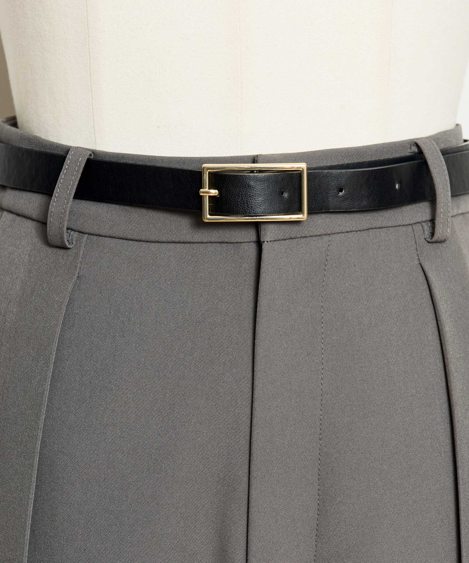 配色の合皮ベルトがアクセントのストレートパンツ。