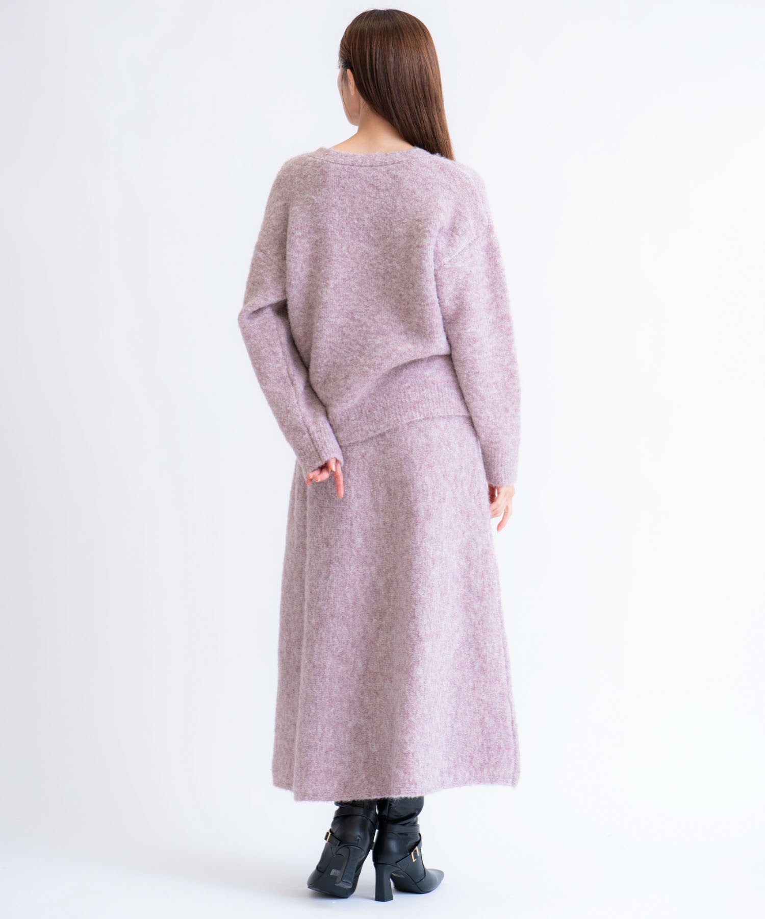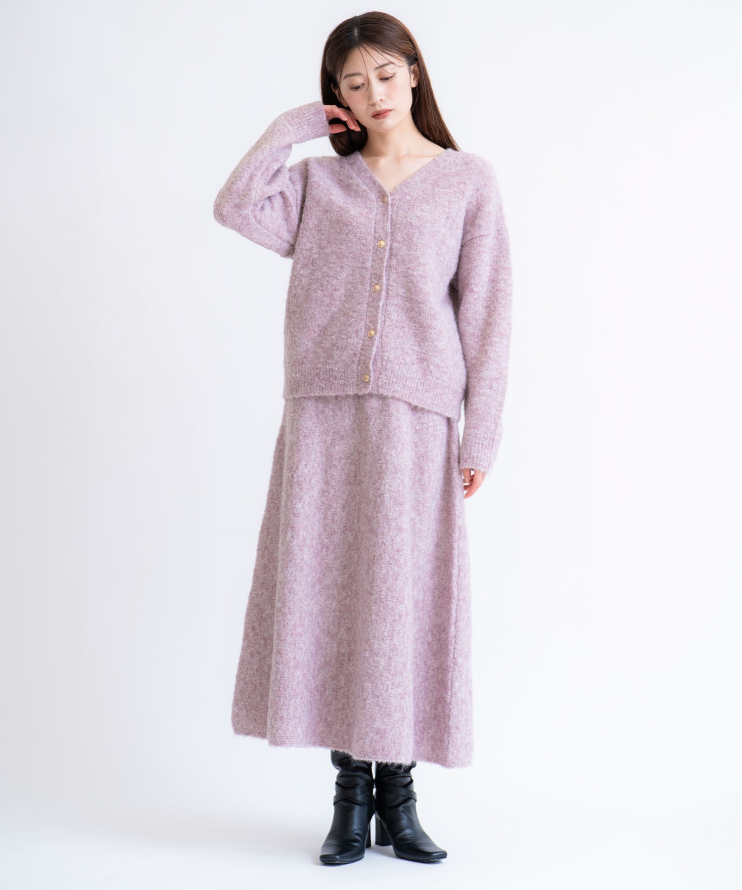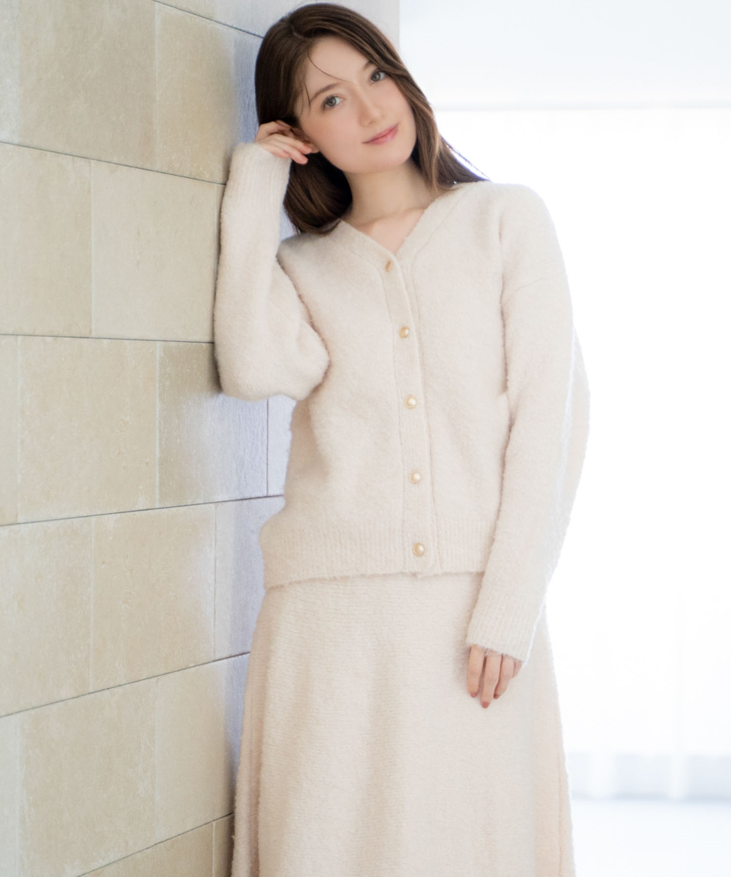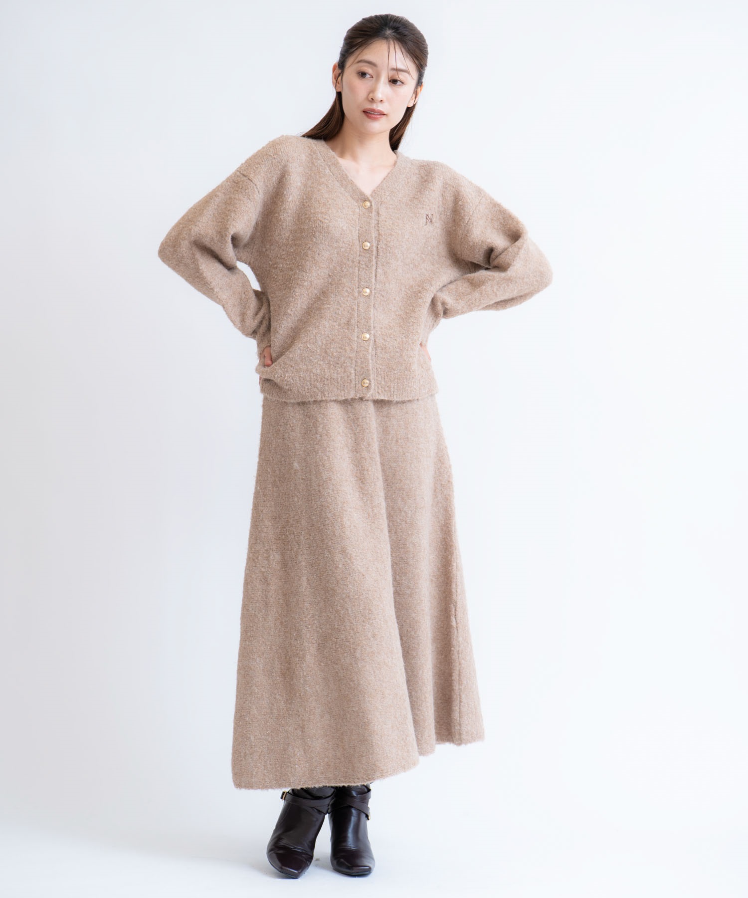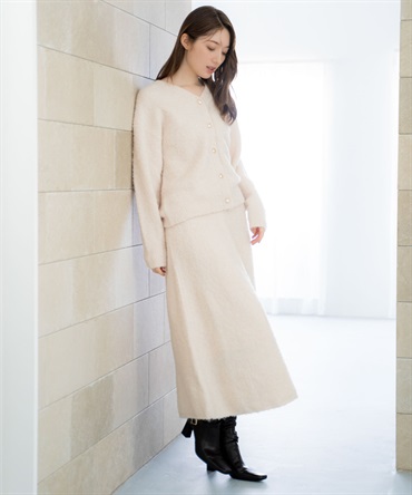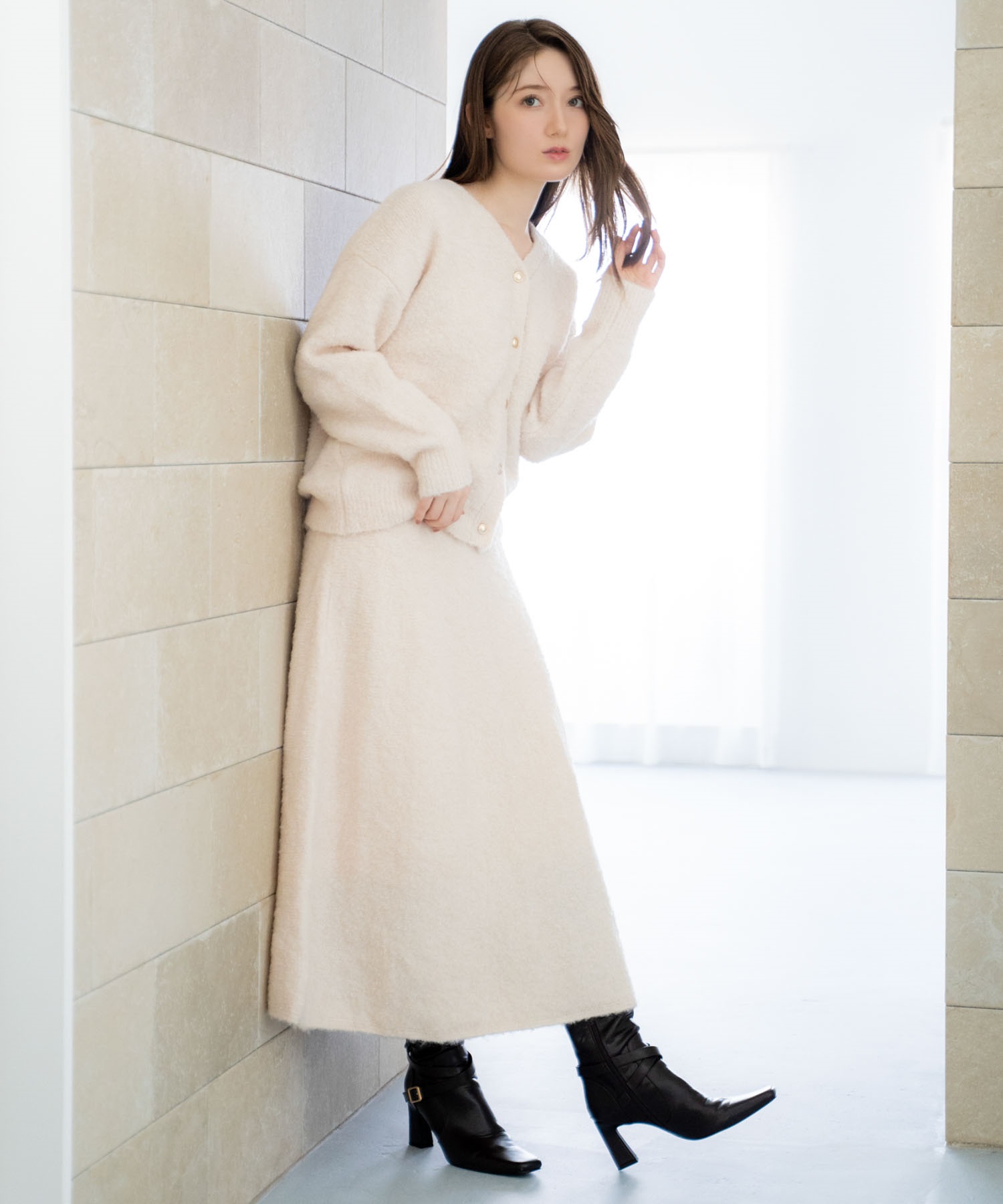 ブークレ糸で仕上げた、ふんわりと温もりのあるニットセットアップ。