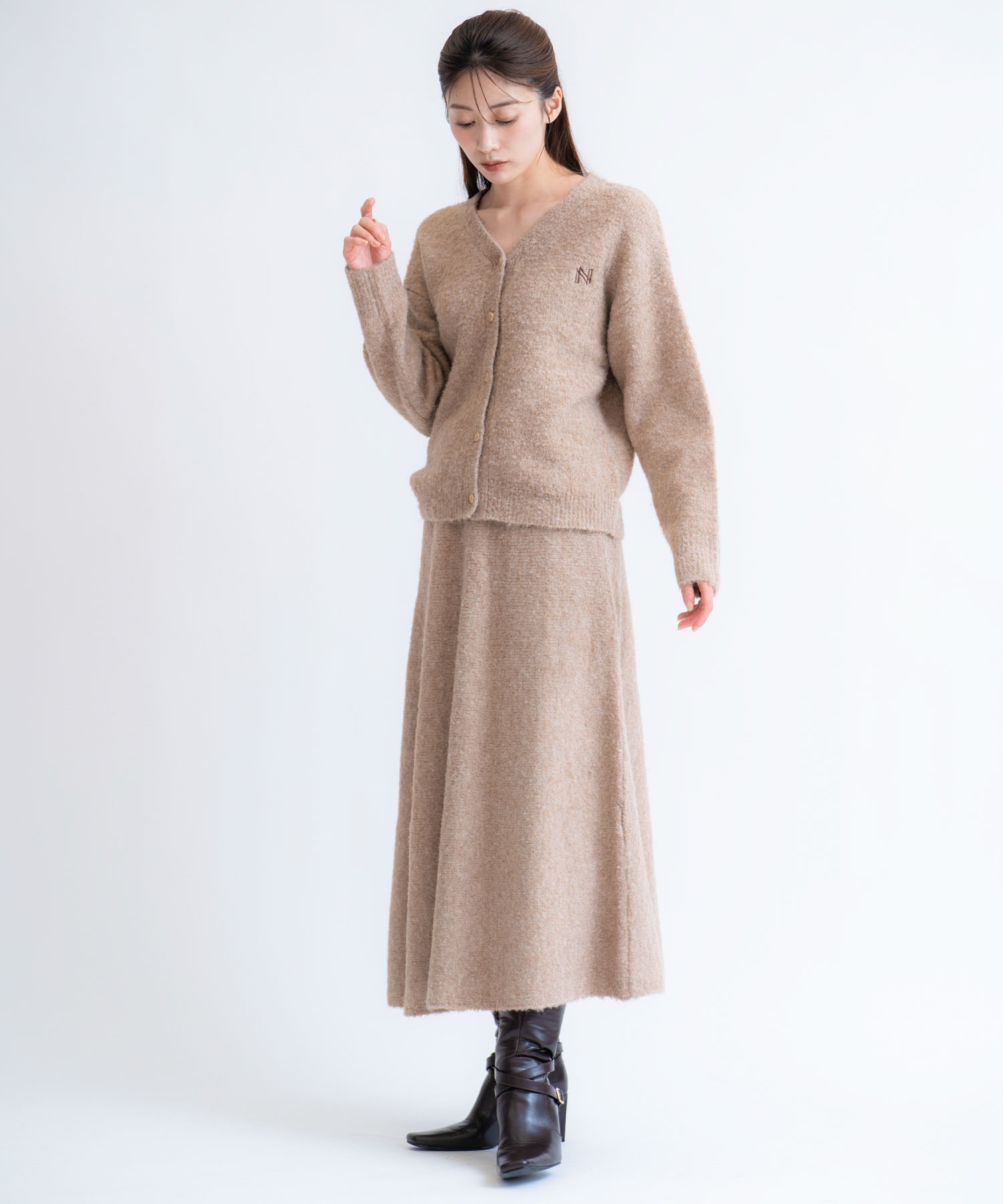 • 【予約】ロゴ刺繍シャギーニットセットアップ(83キャメル-S-11月下旬ごろのお届け)