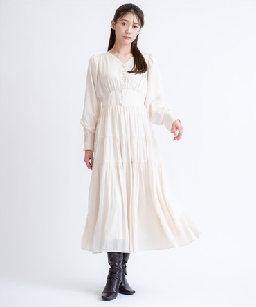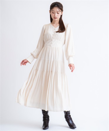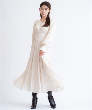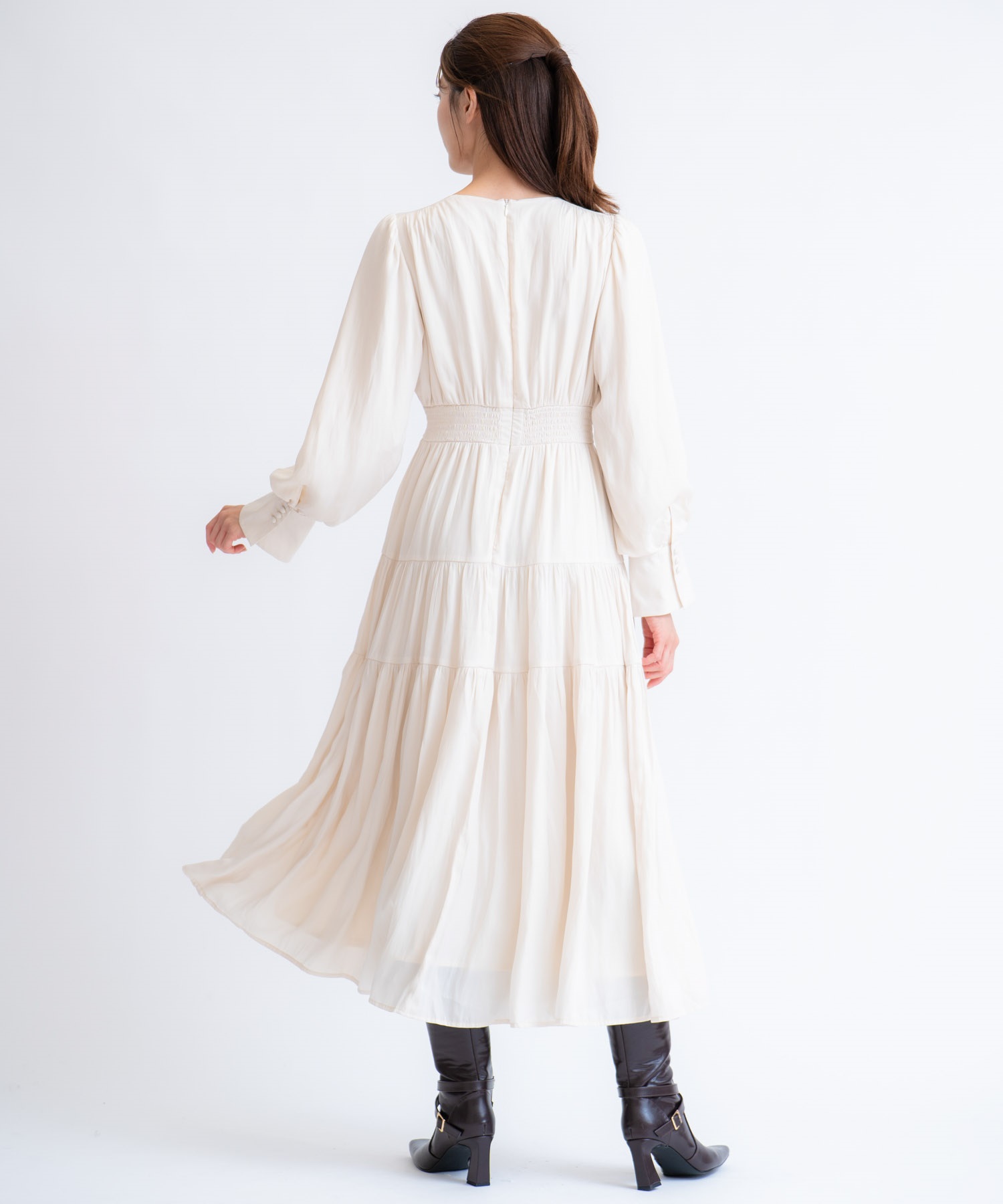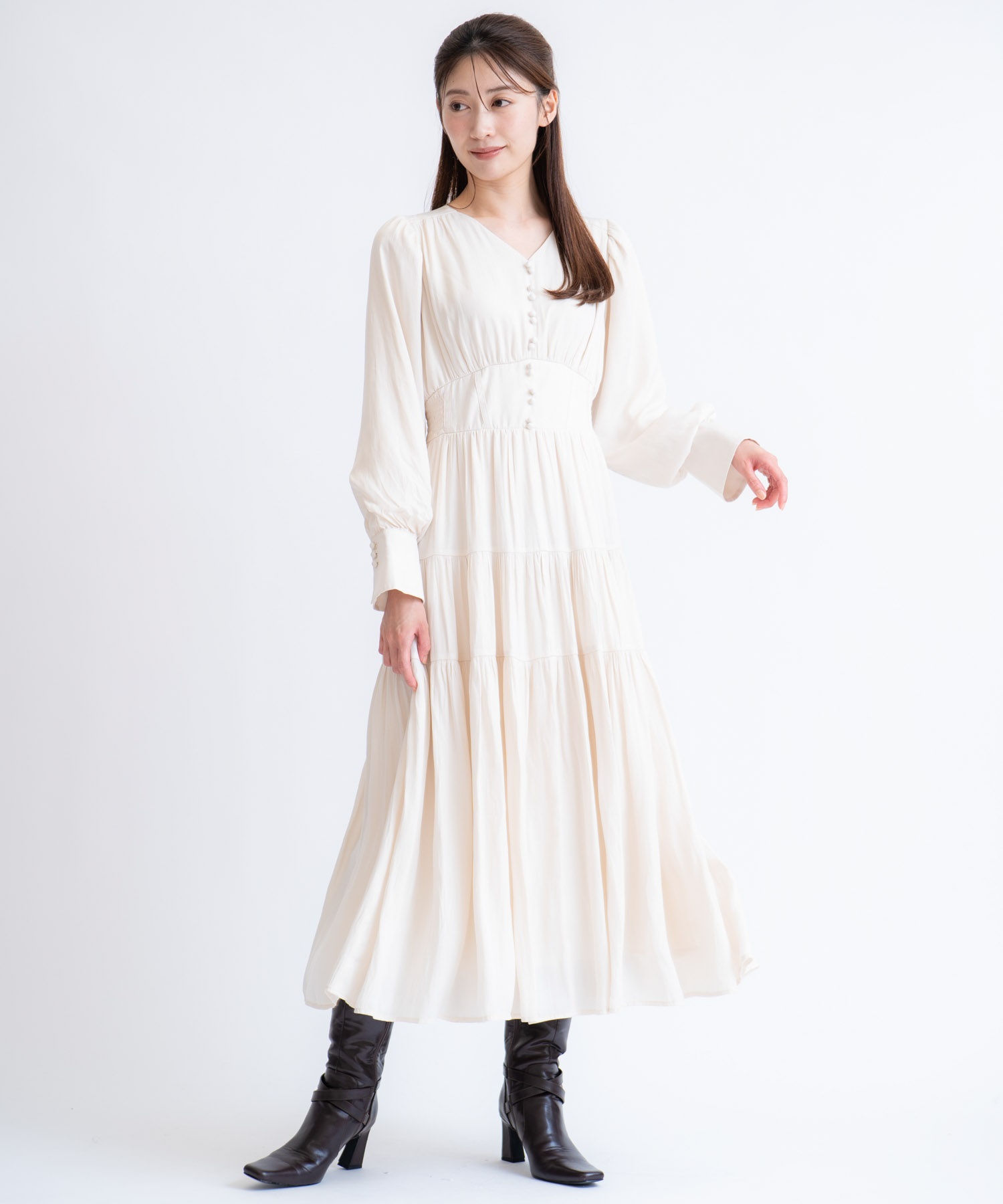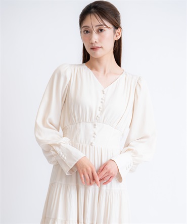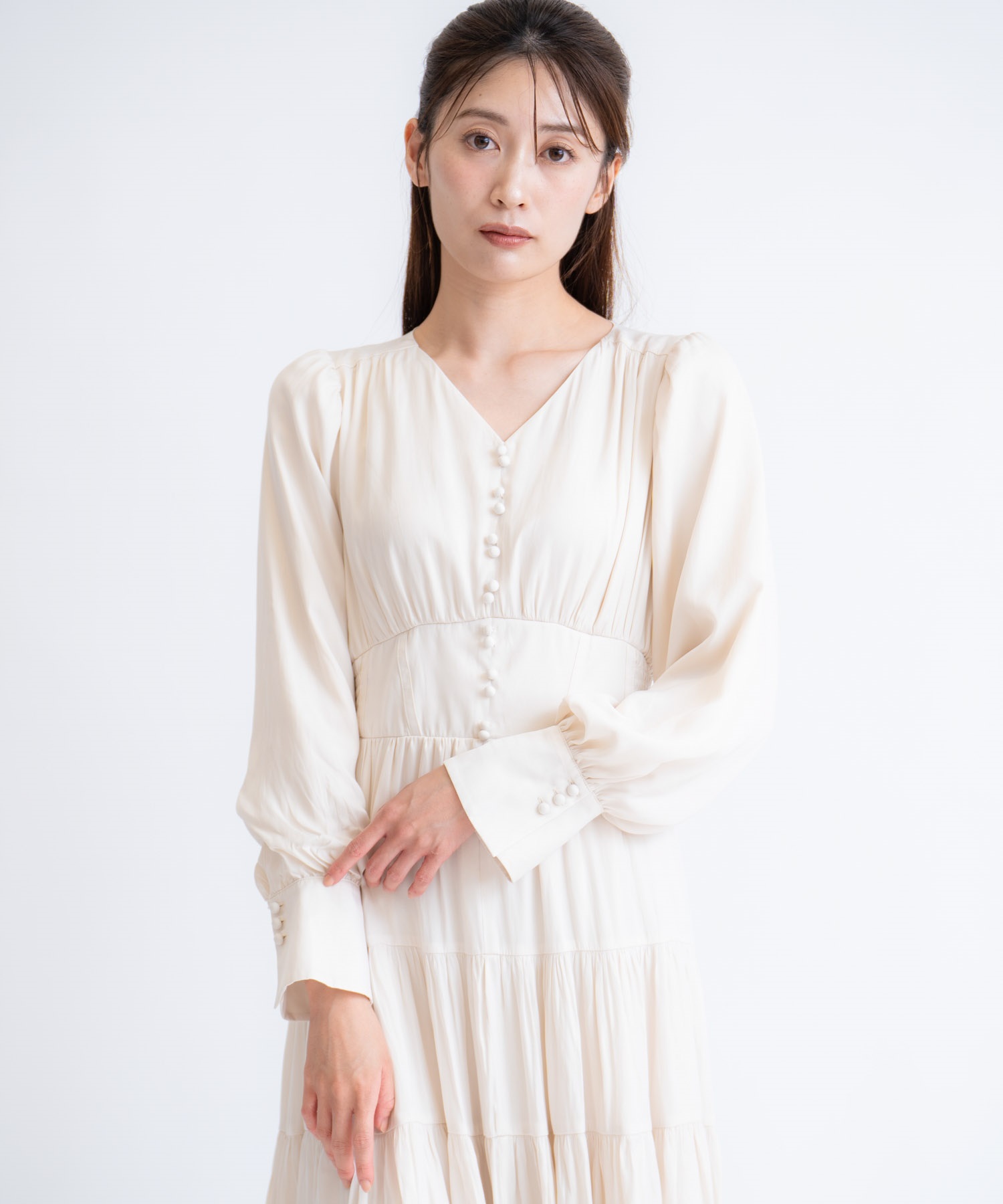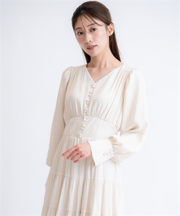 • 【予約】ティアードサテンワンピース(01オフホワイト-S-11月下旬ごろのお届け)