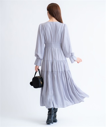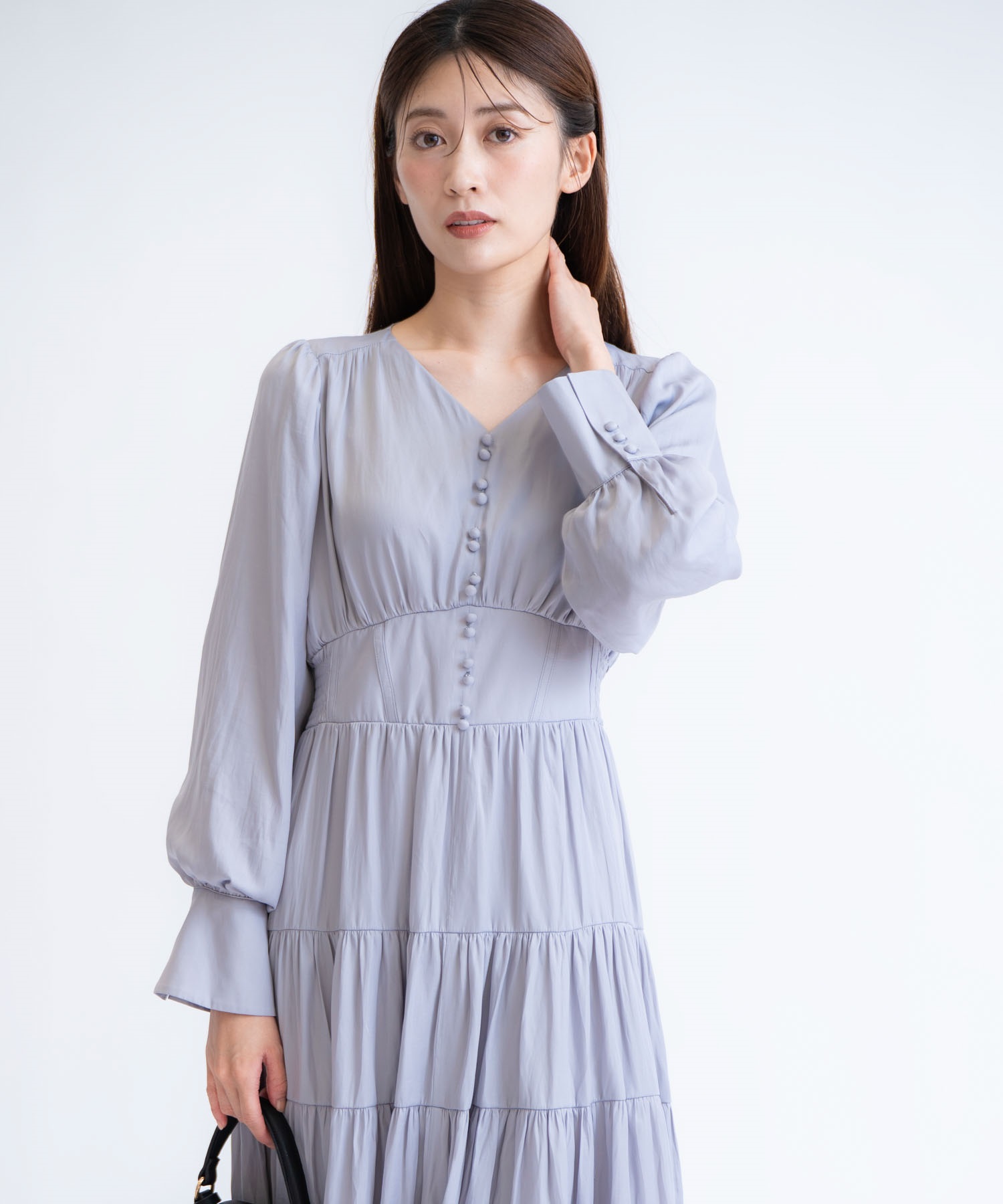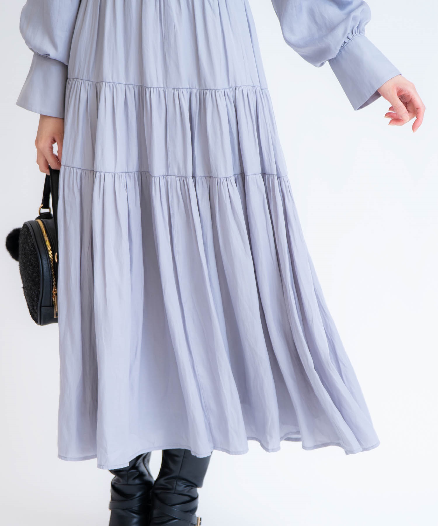 • 【予約】ティアードサテンワンピース(72サックス-S-11月下旬ごろのお届け)