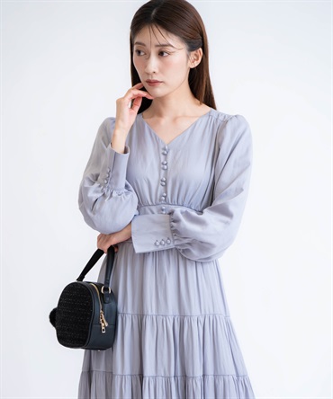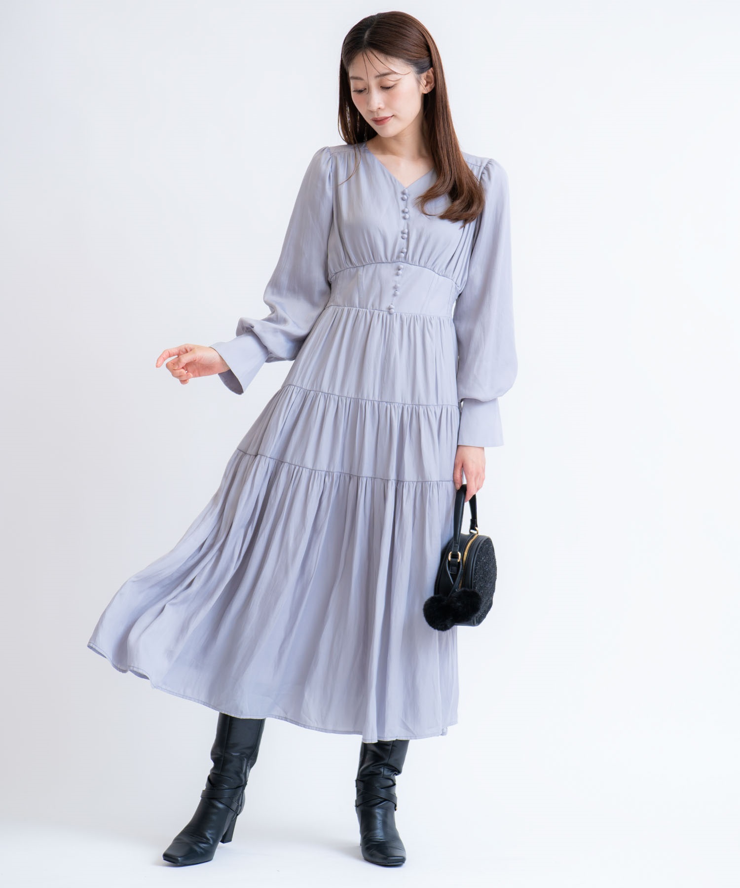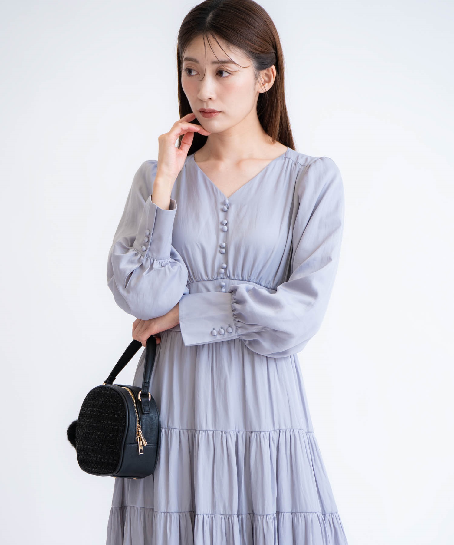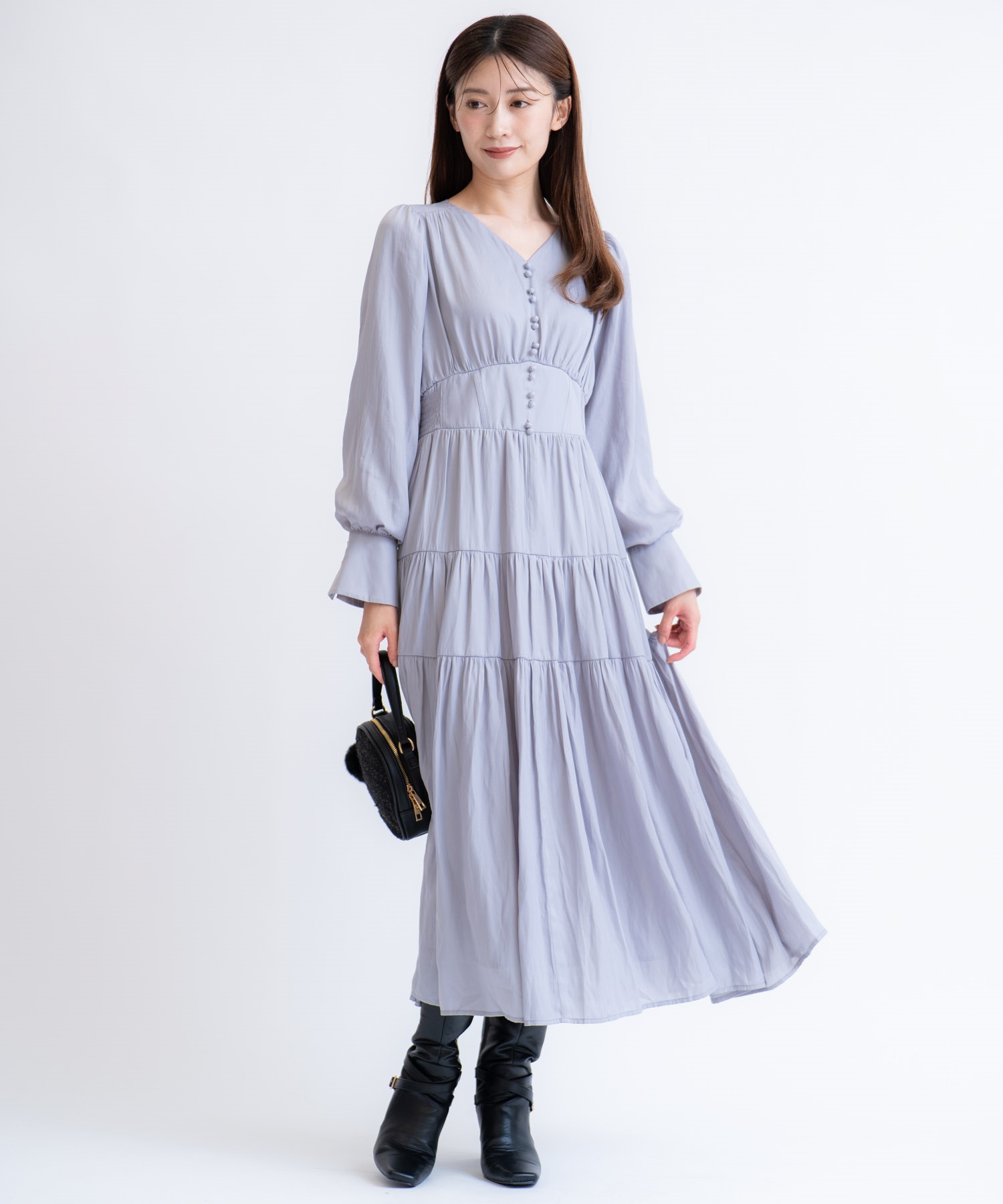 • 【予約】ティアードサテンワンピース(72サックス-S-11月下旬ごろのお届け)