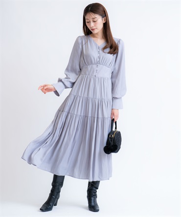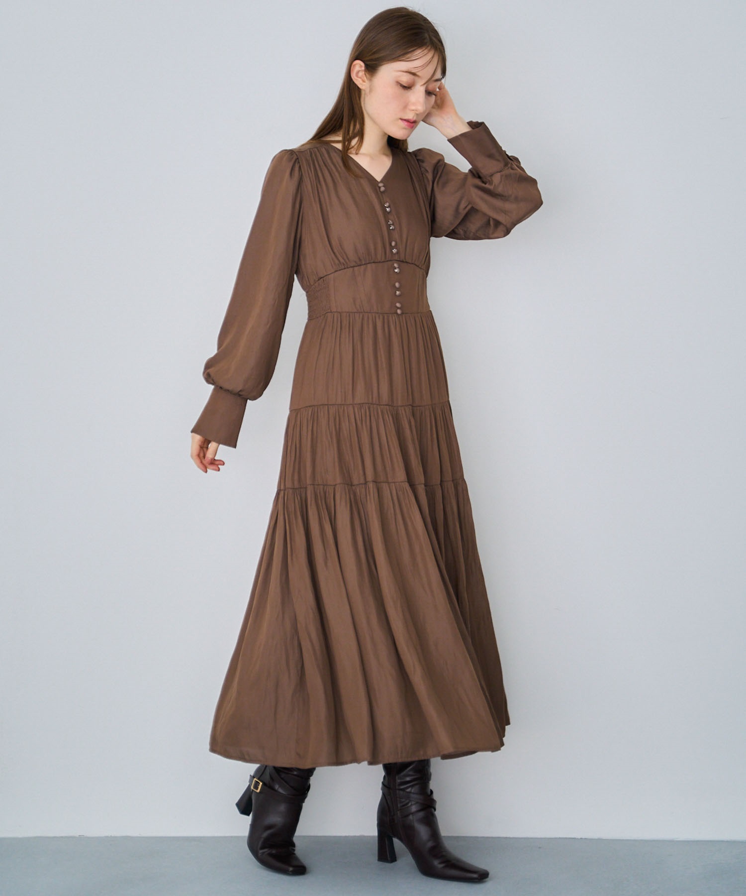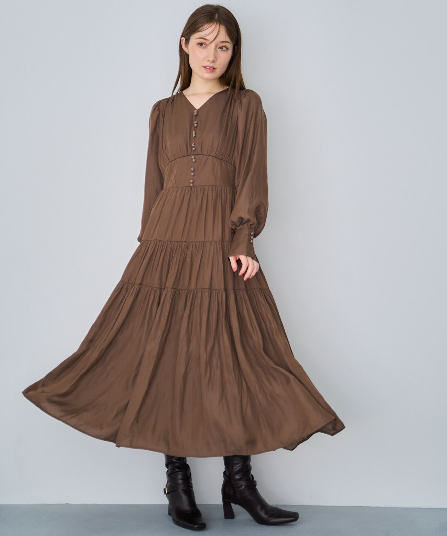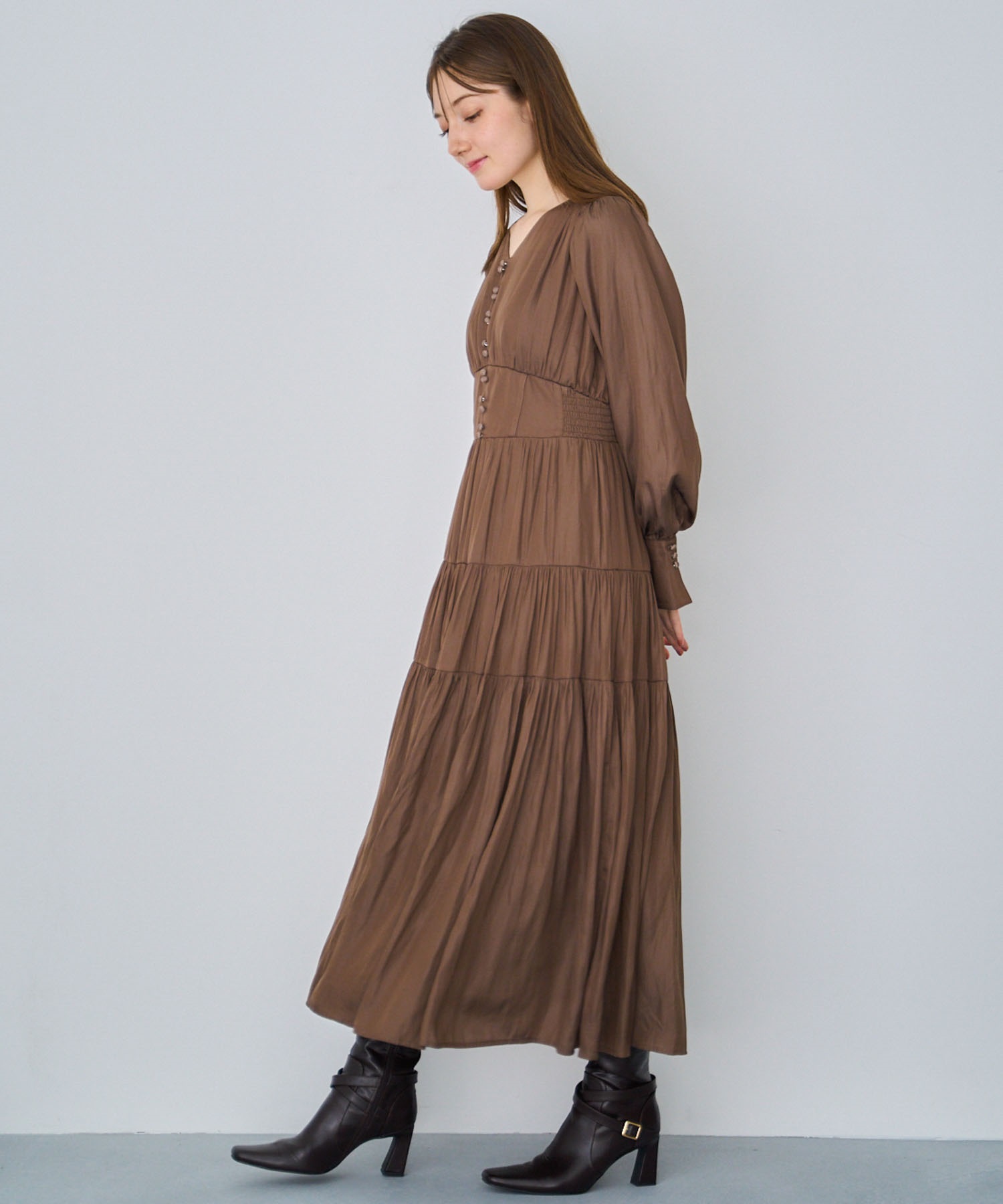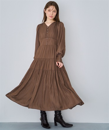 • 【予約】ティアードサテンワンピース(81チャ-S-11月下旬ごろのお届け)
