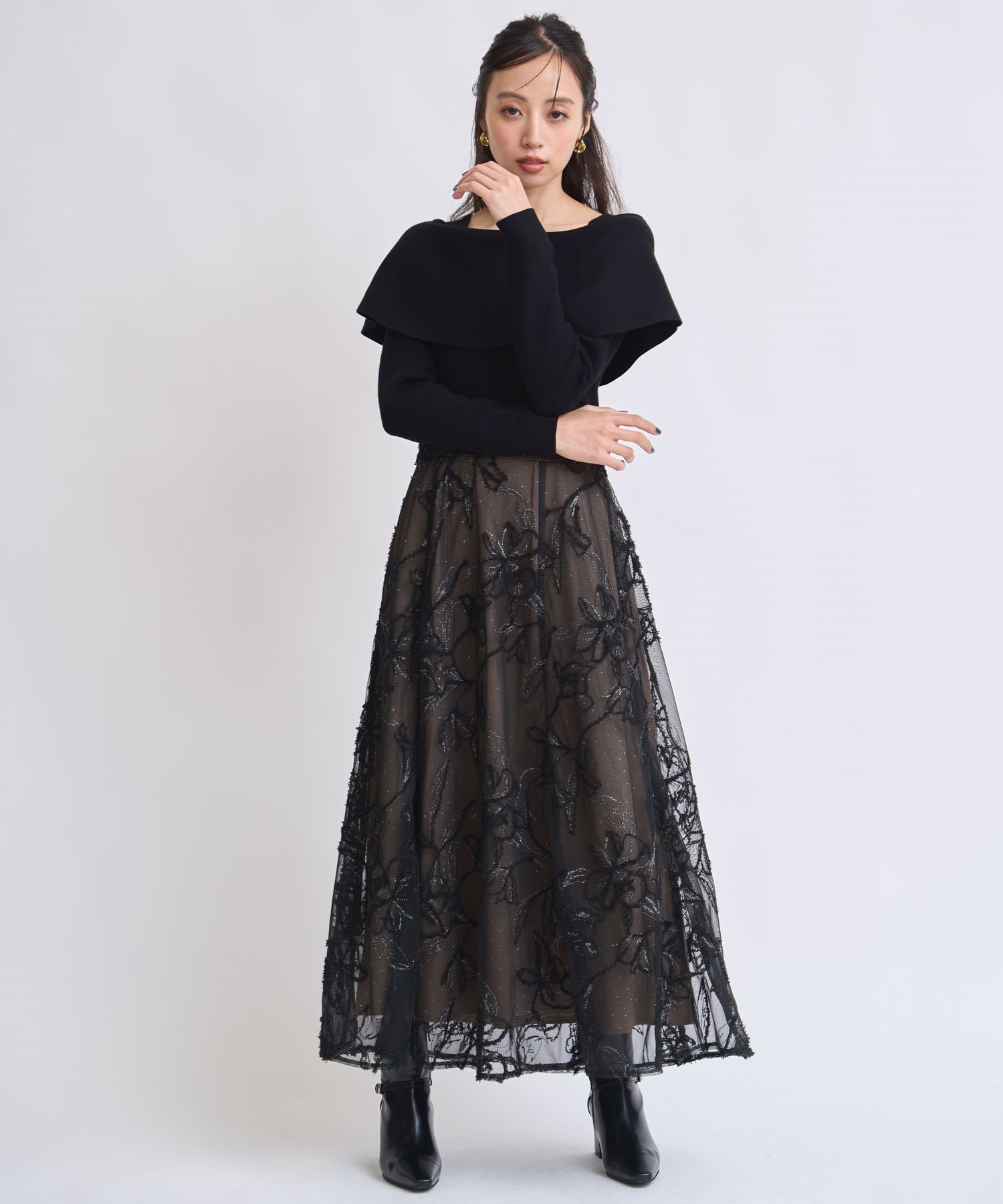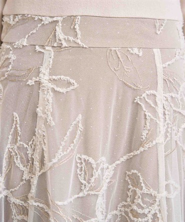 スカート部分には立体感のあるモール刺繍を施し、動くたびに華やかに揺れるデザイン。
