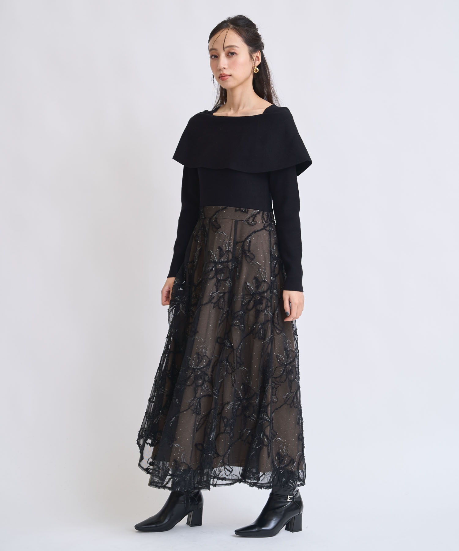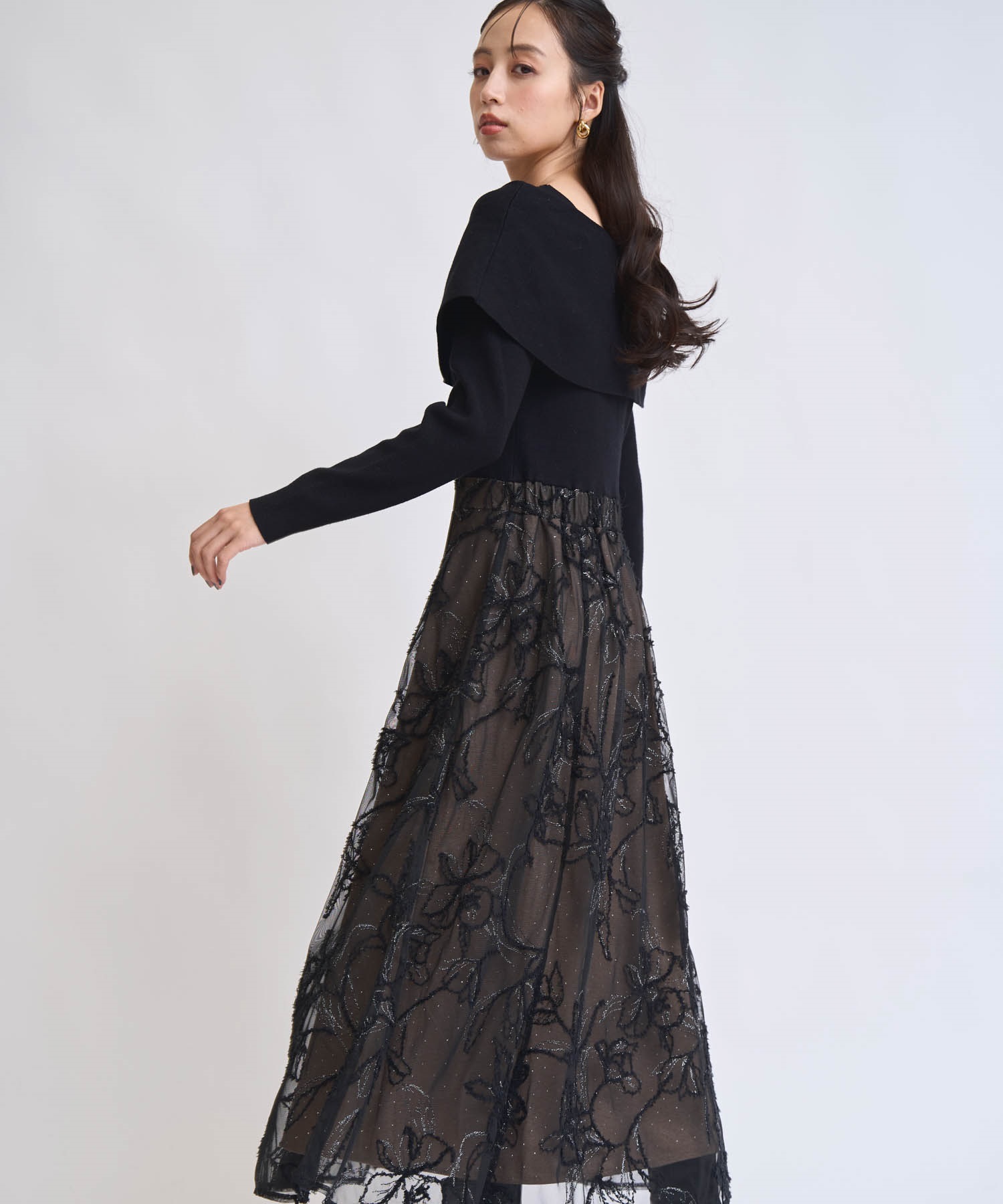 • 【予約】【15周年】モール刺繍ドッキングワンピース(00ブラック-フリー-11月下旬ごろのお届け)