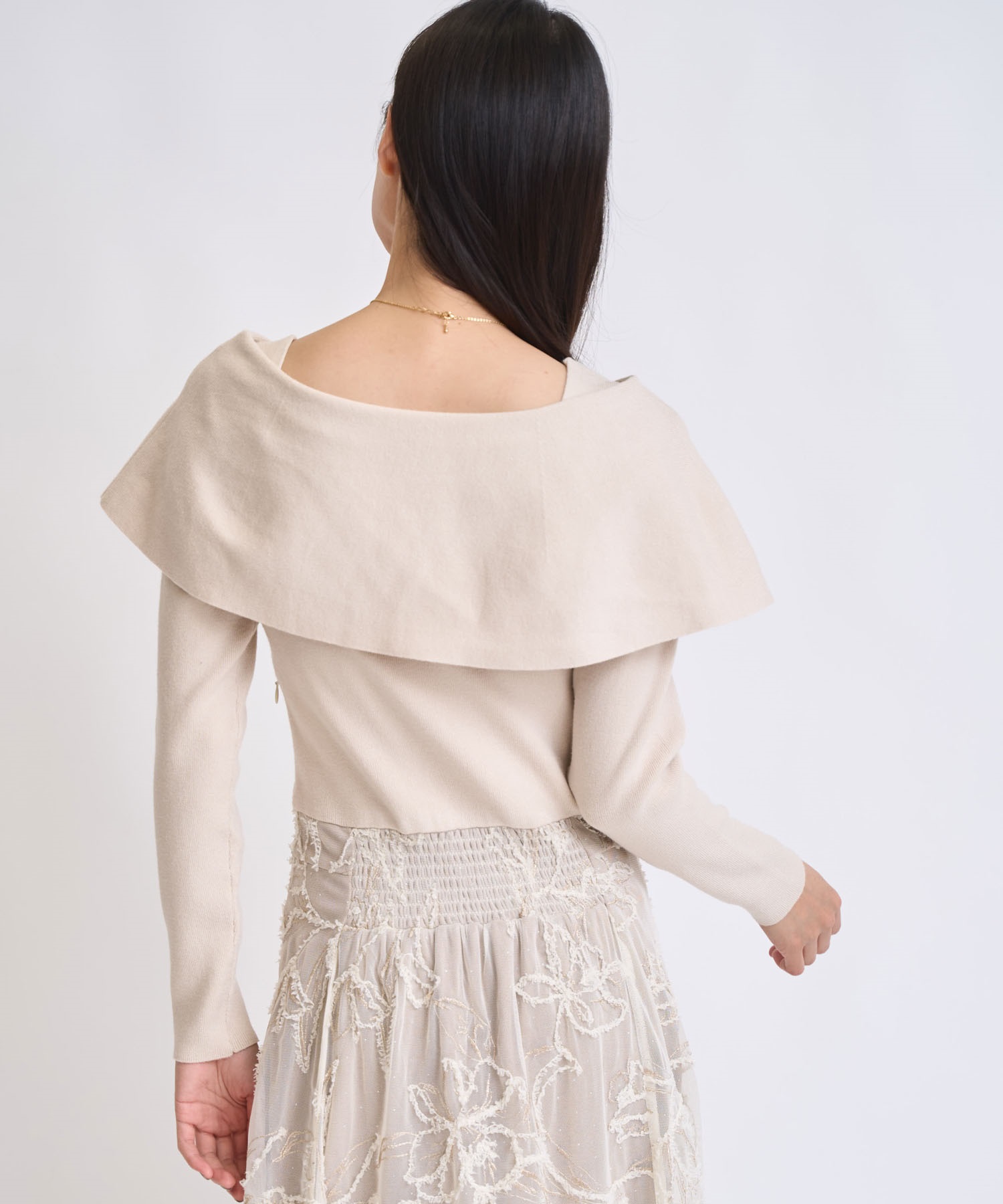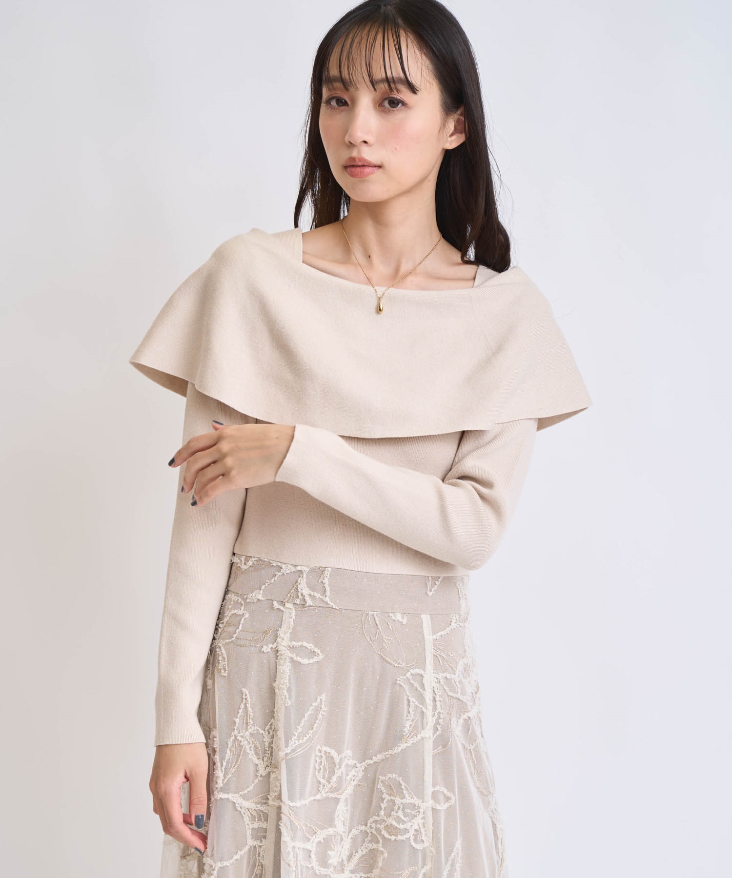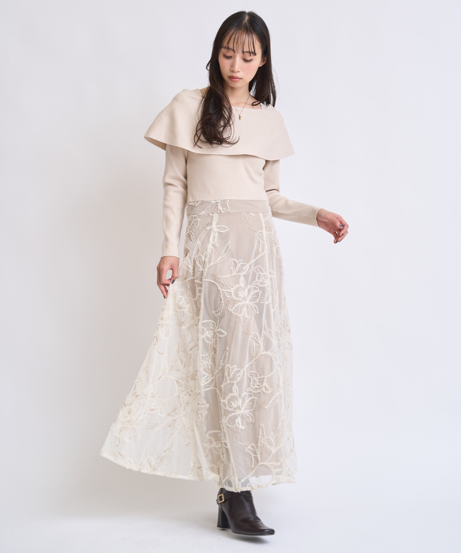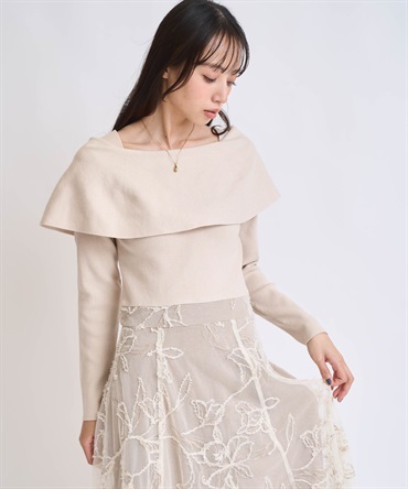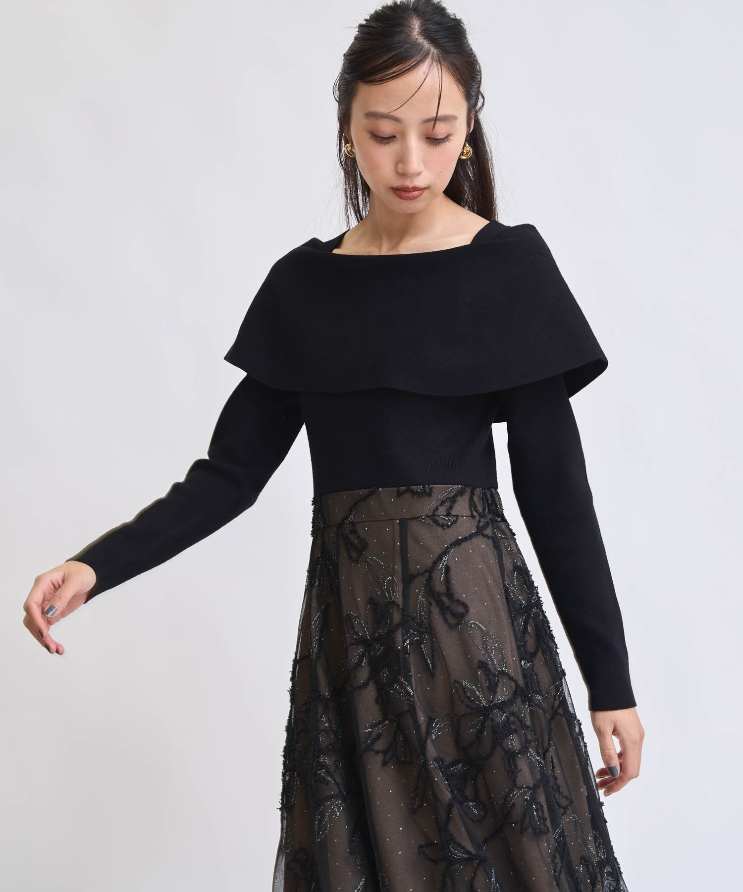 トップス部分は柔らかなニット素材で、優しく女性らしい印象を演出します。