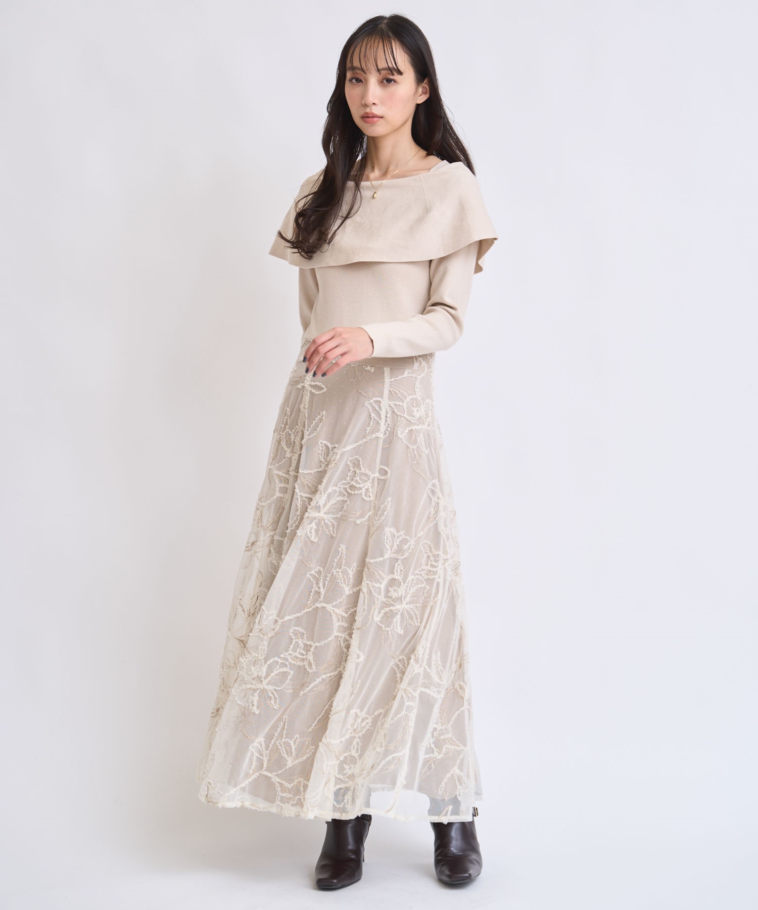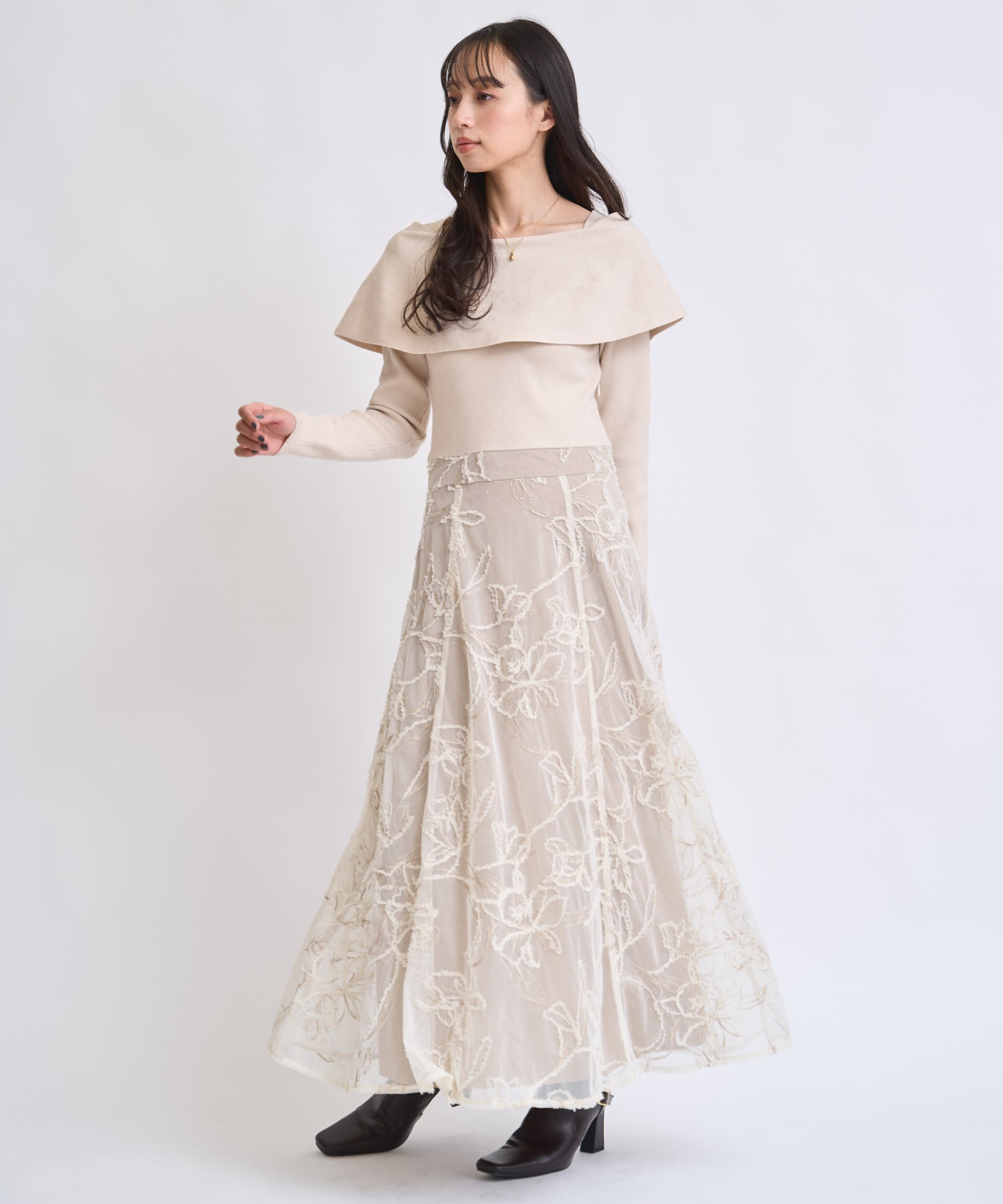 • 【予約】【15周年】モール刺繍ドッキングワンピース(82ベージュ-フリー-11月下旬ごろのお届け)