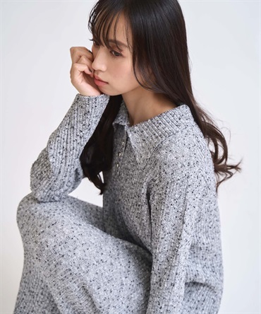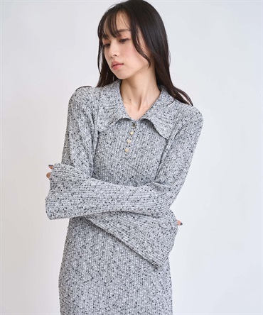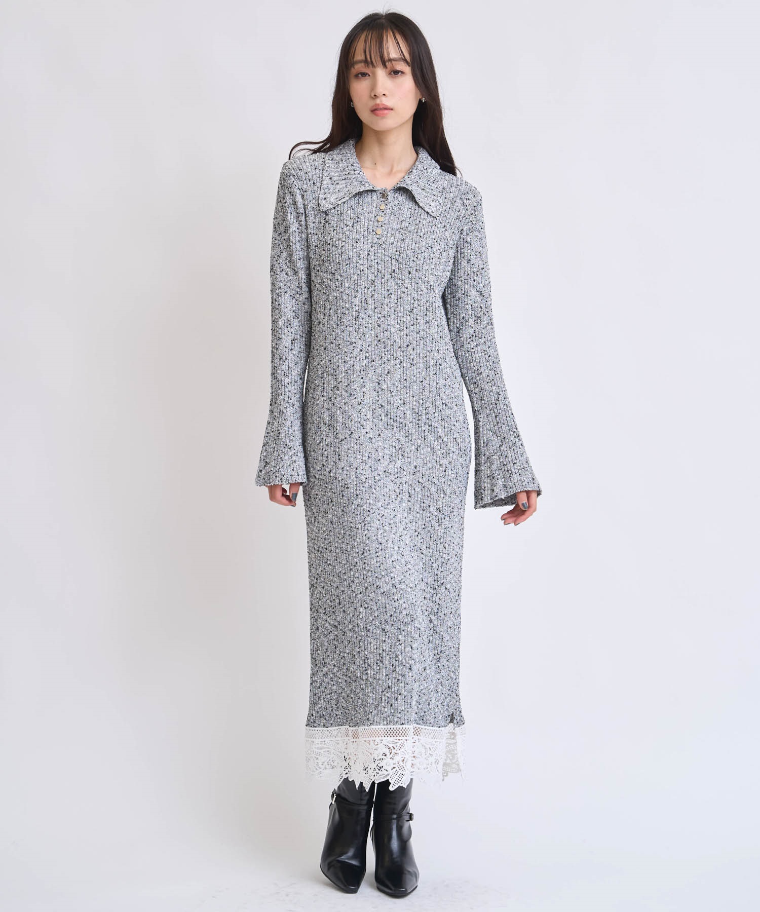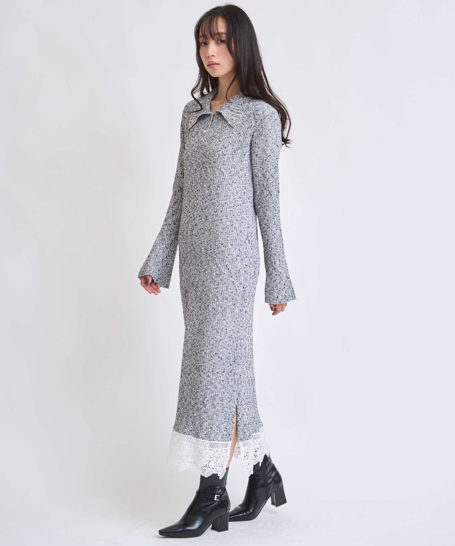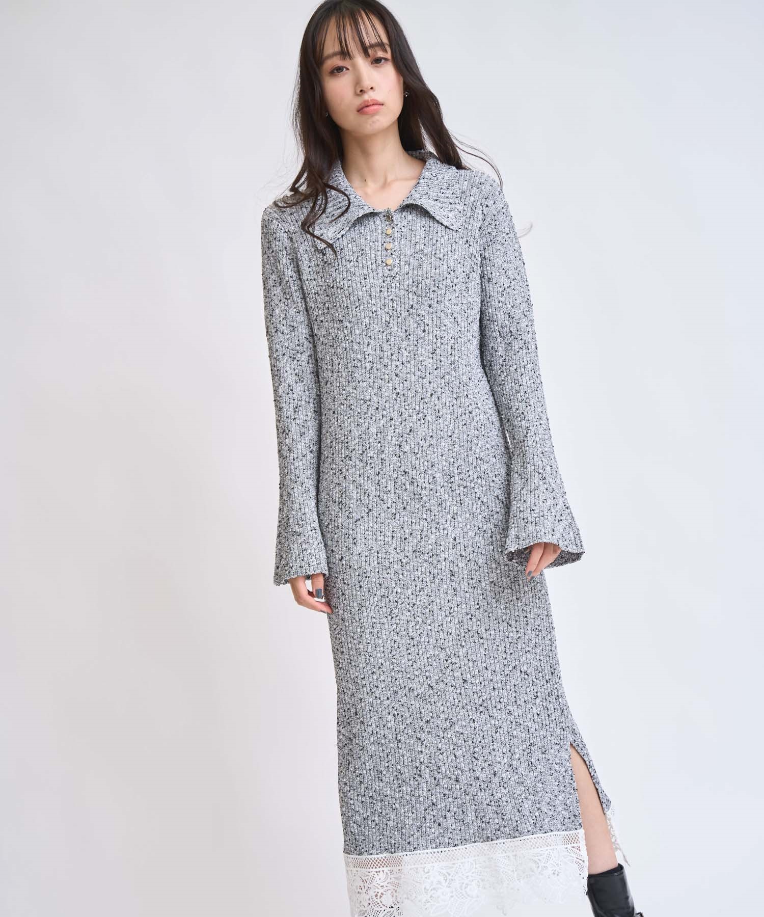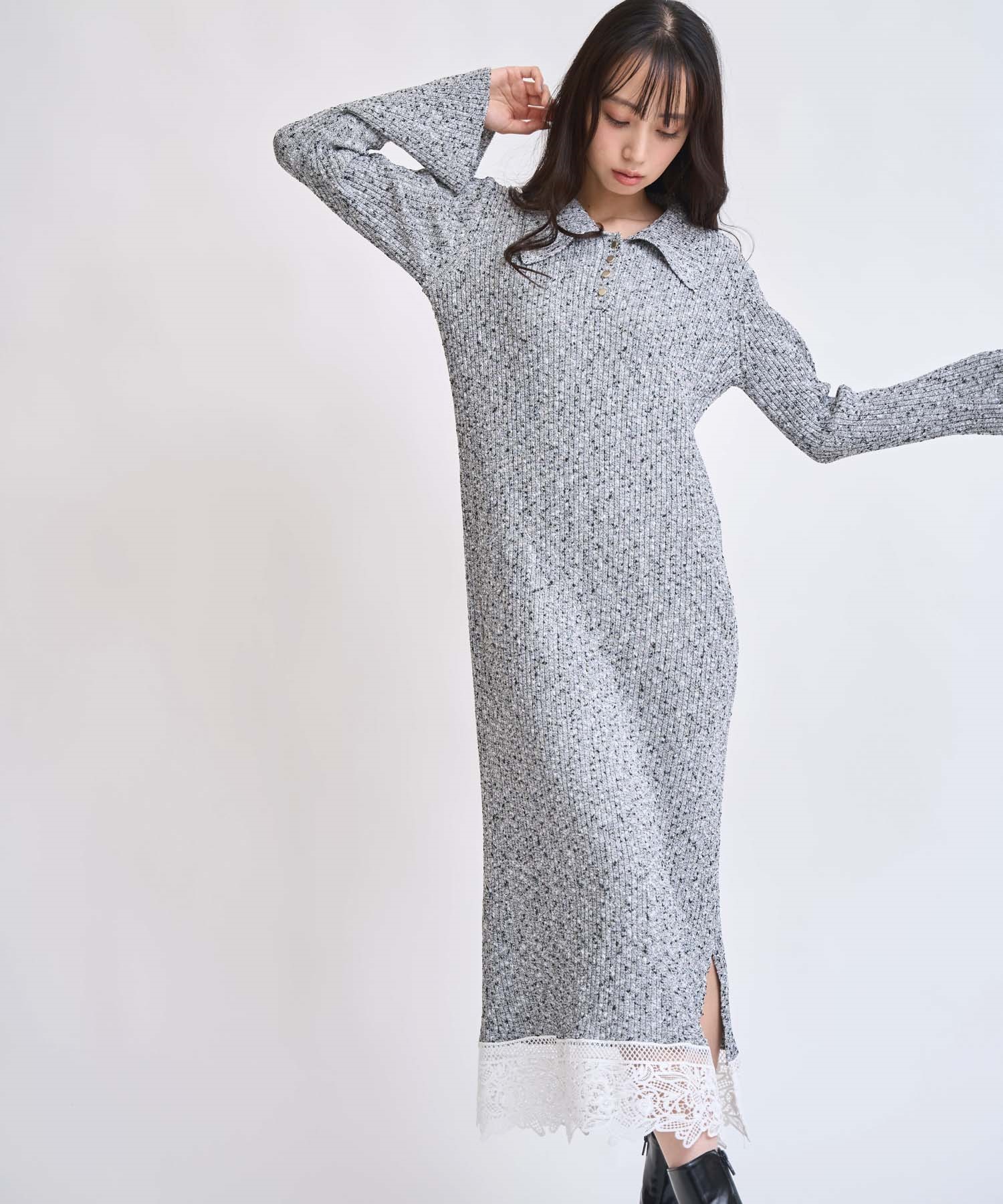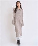 • 【予約】レーストリムポロニットワンピース(11グレー-フリー-11月下旬ごろのお届け)