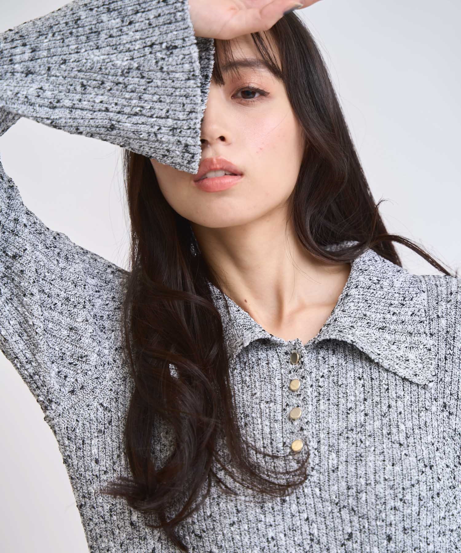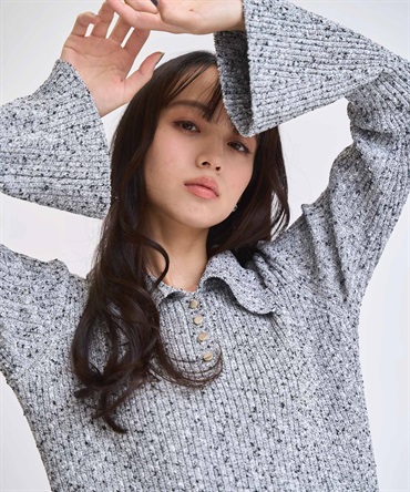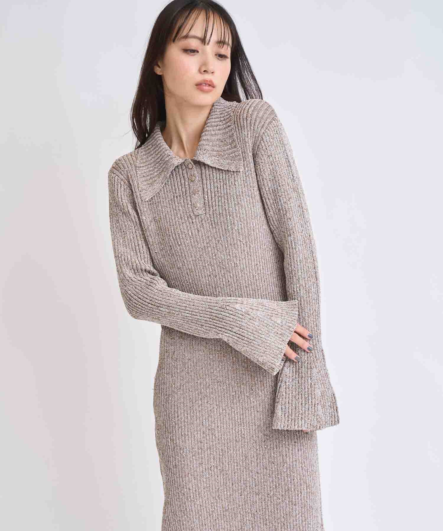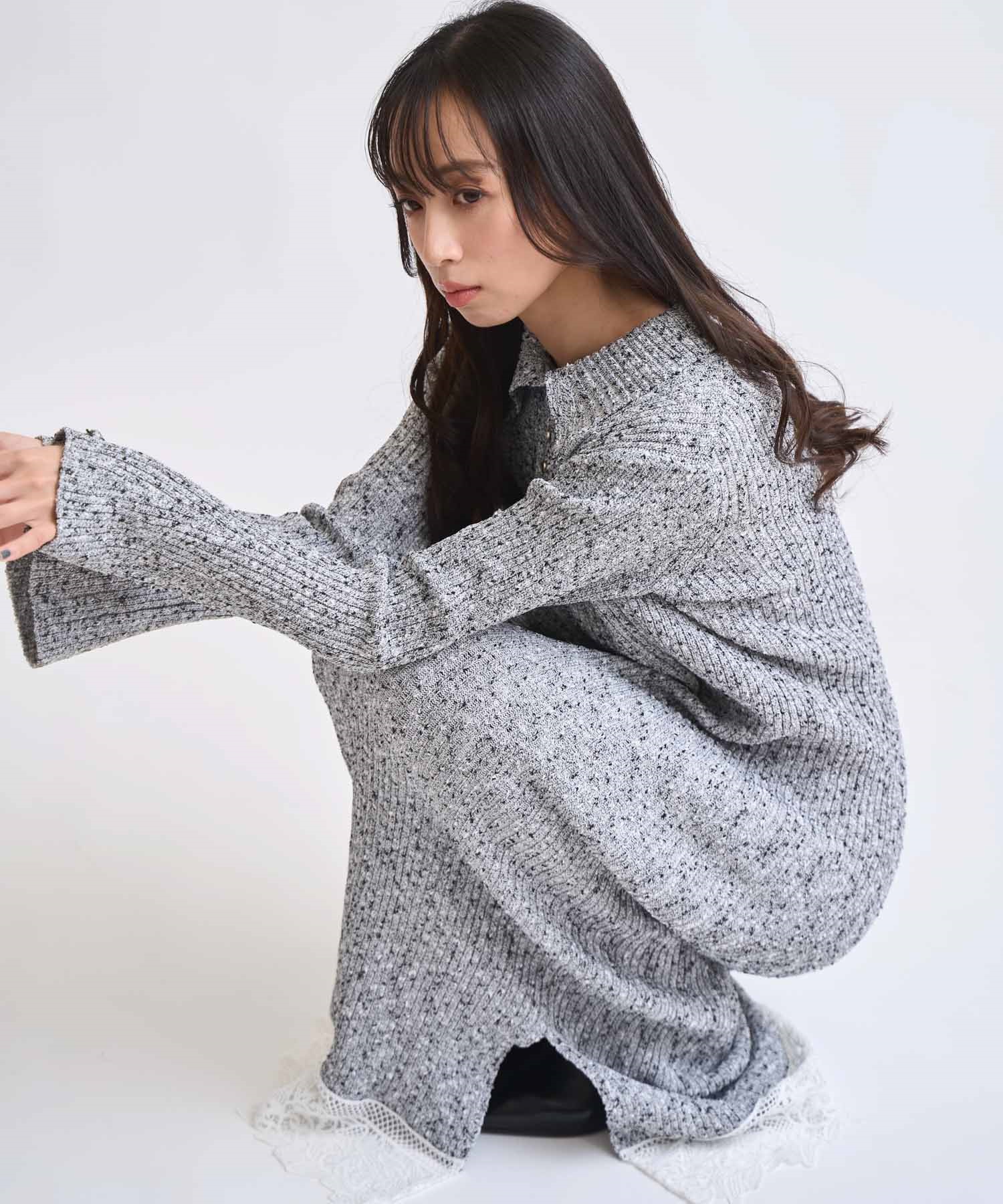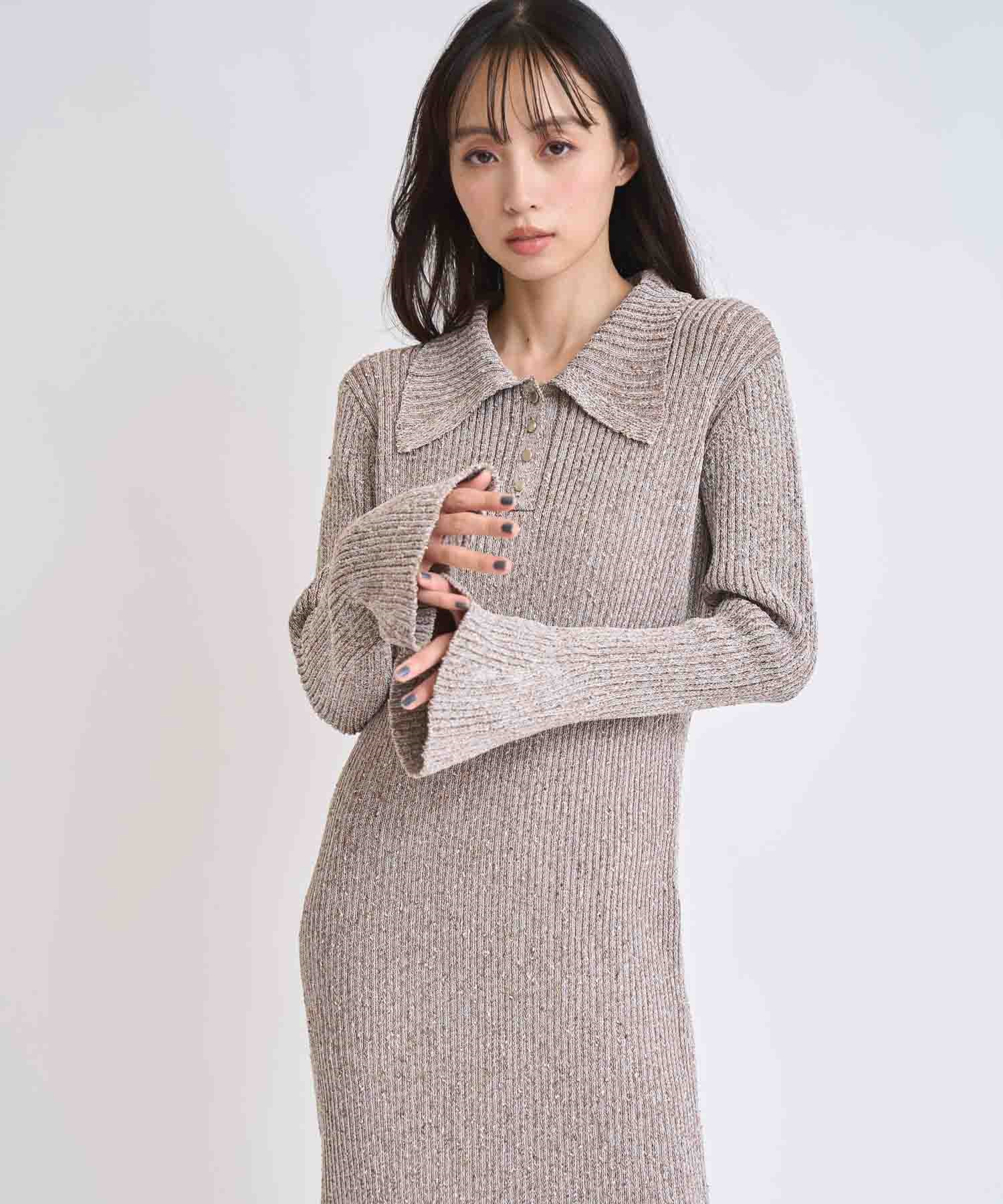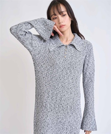 • 【予約】レーストリムポロニットワンピース(11グレー-フリー-11月下旬ごろのお届け)