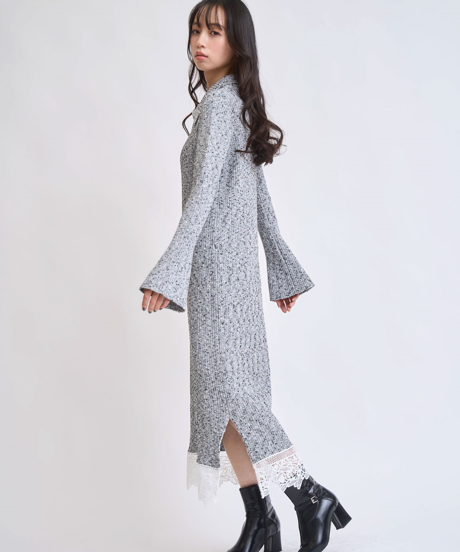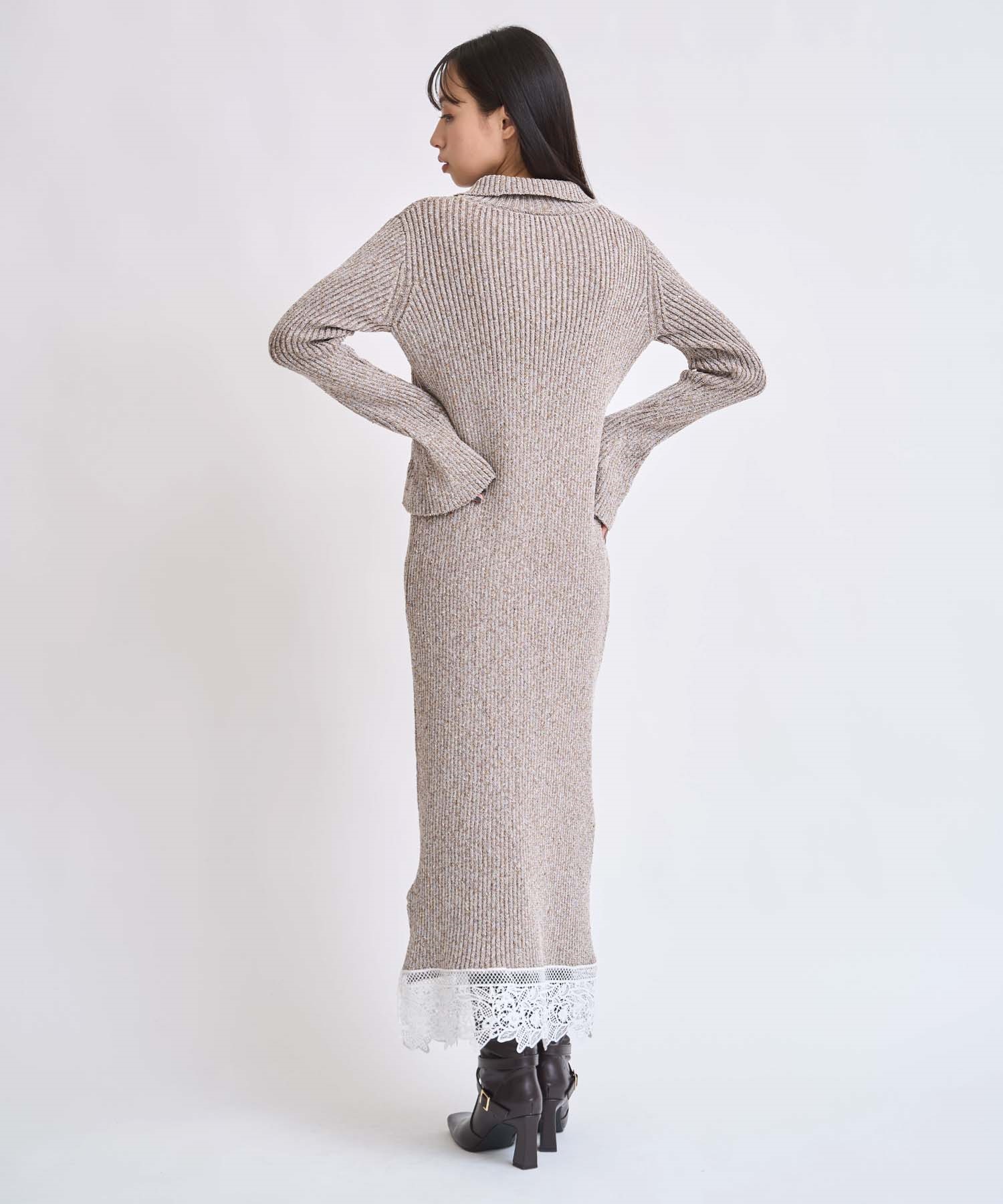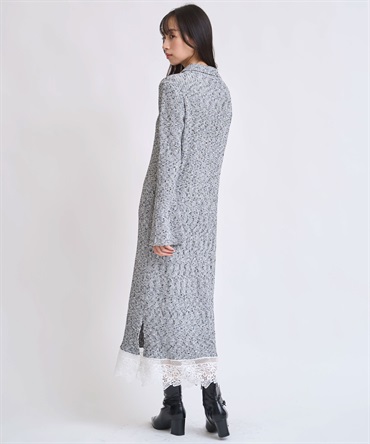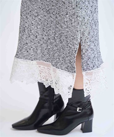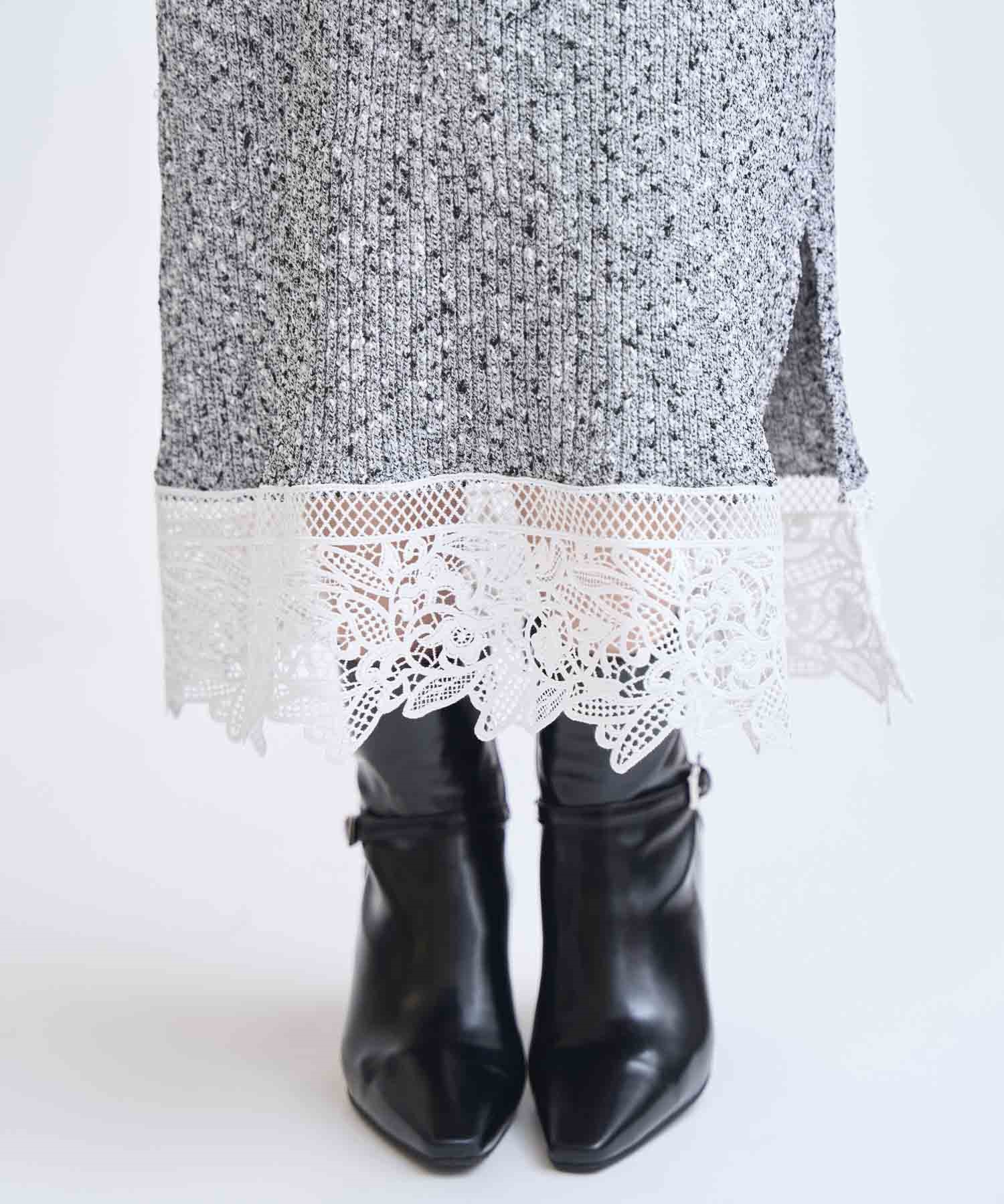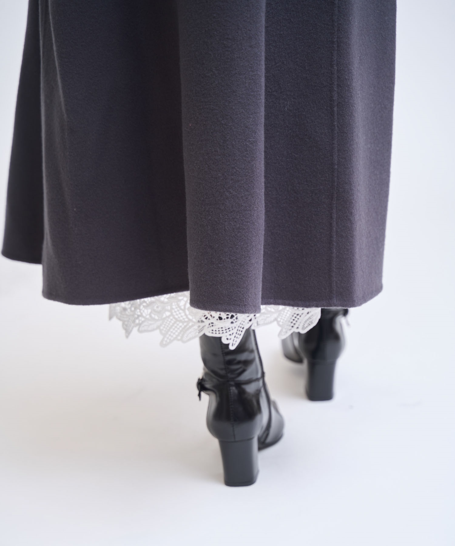 裾にあしらった上品なレースは、アウターを羽織った際にもさりげなく覗く華やかなアクセントに。