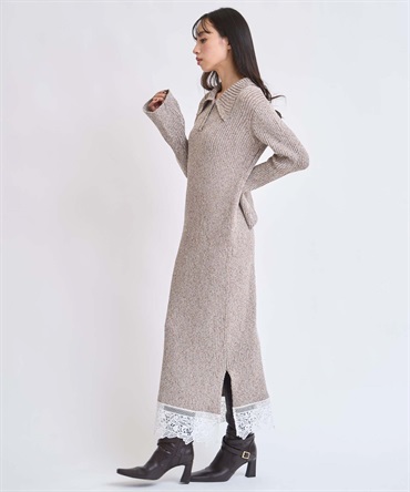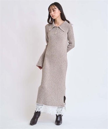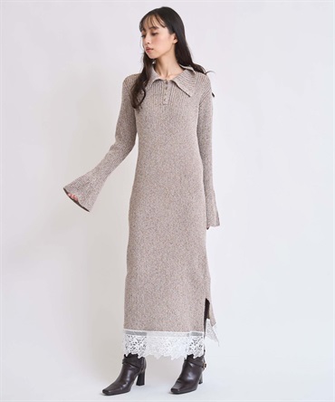 • 【予約】レーストリムポロニットワンピース(85モカ-フリー-11月下旬ごろのお届け)