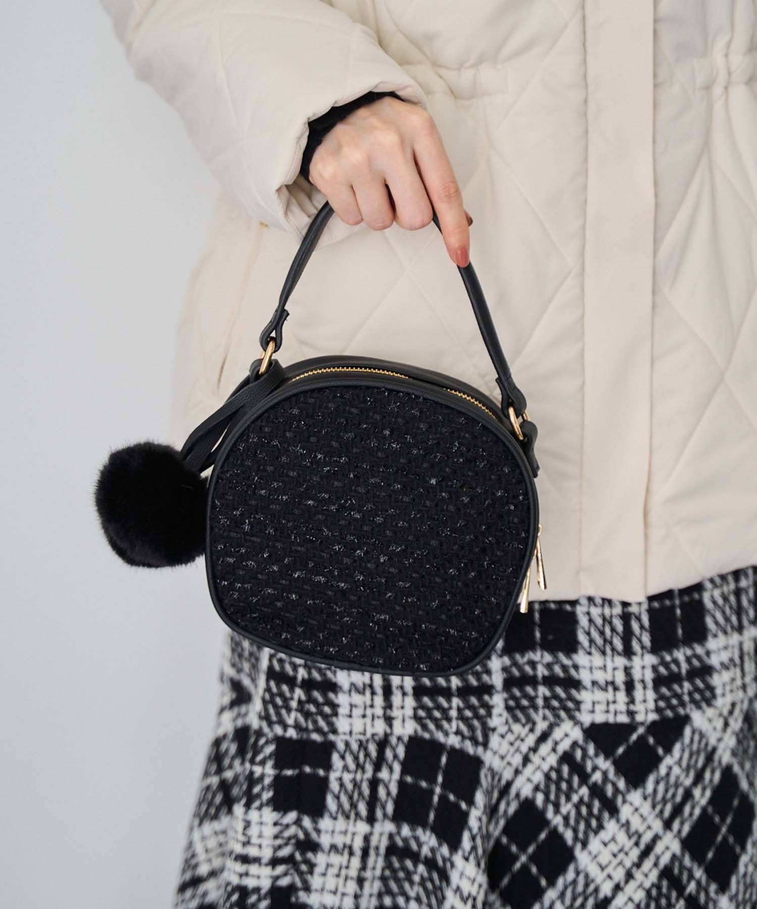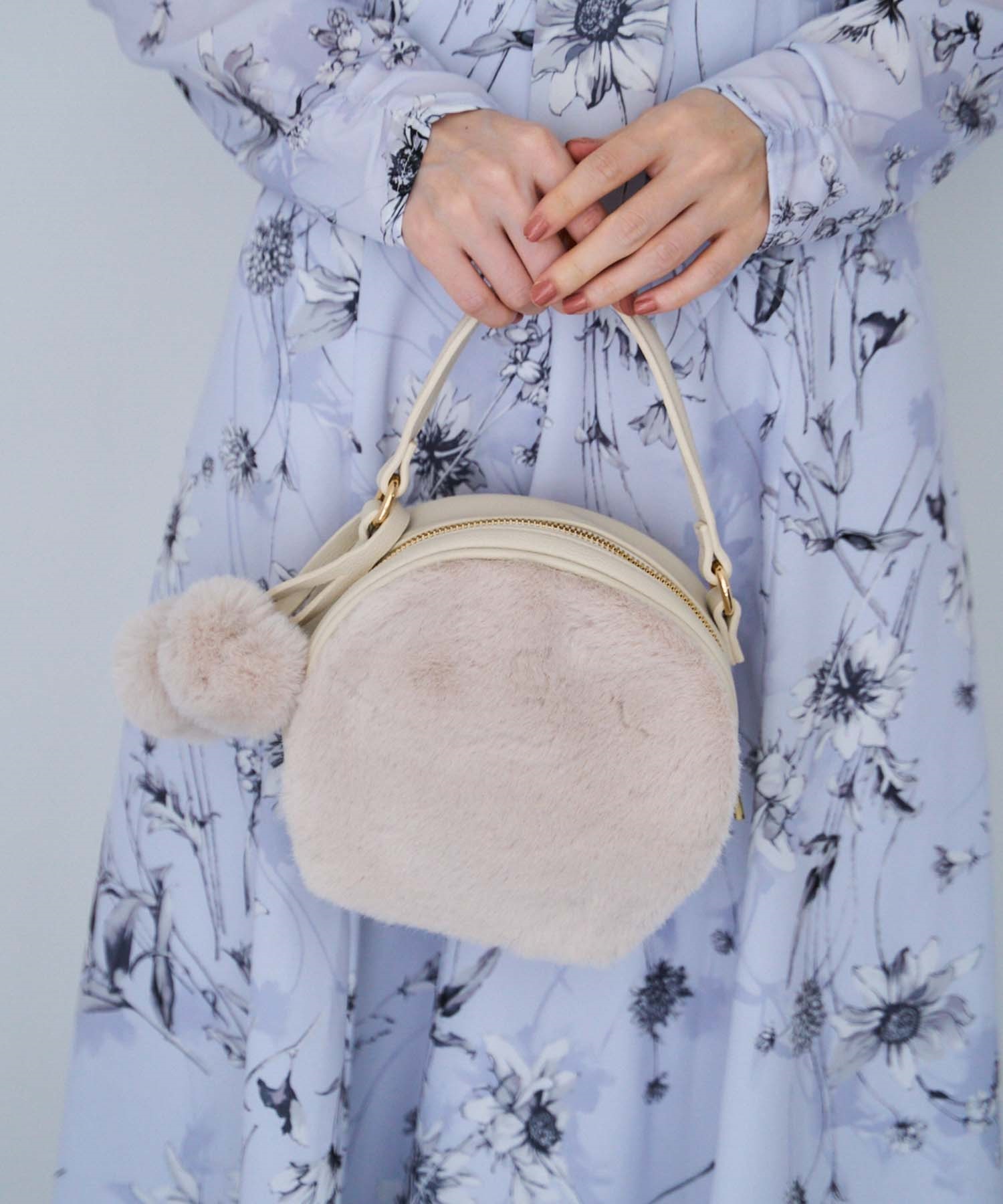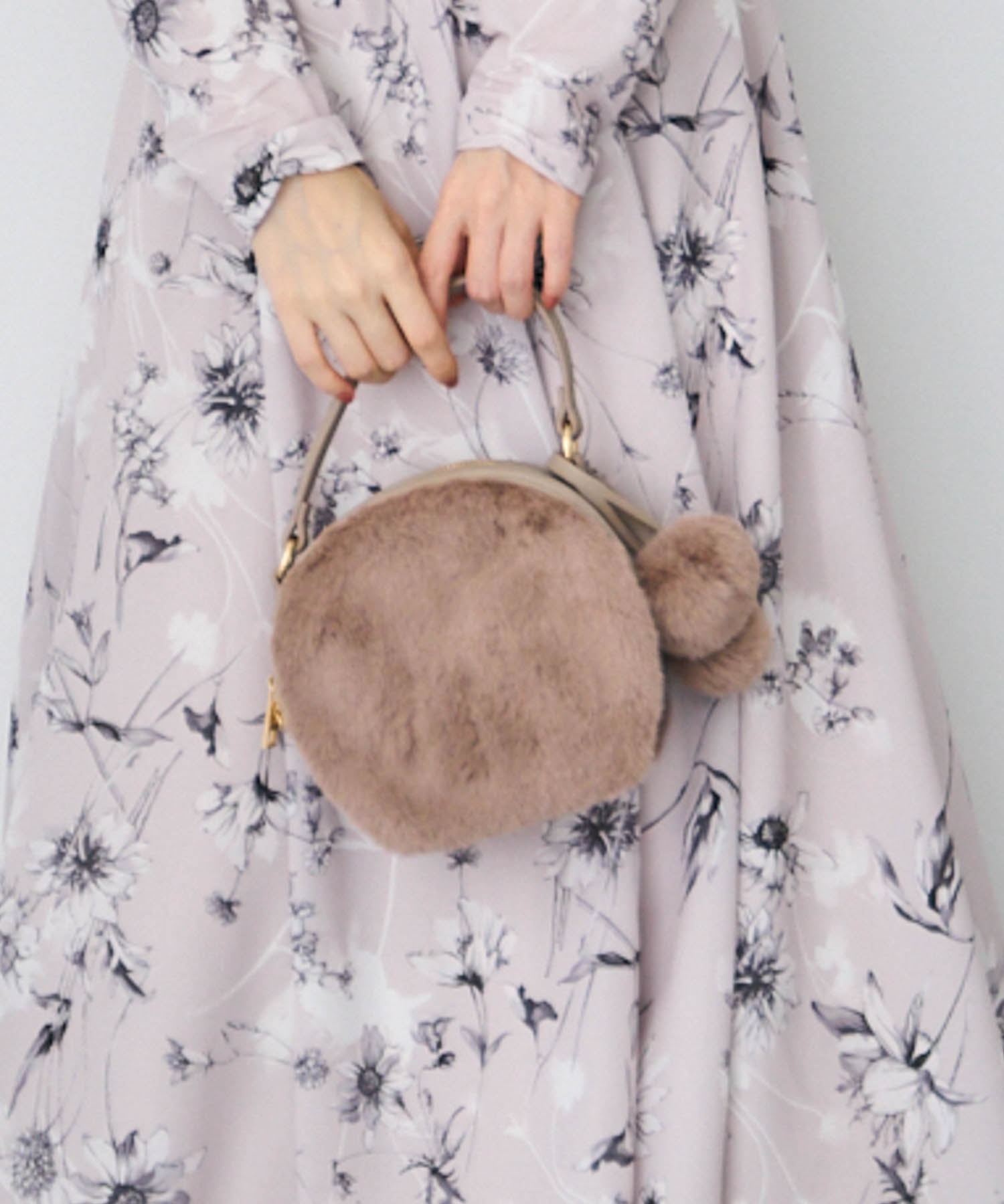 ファーバッグには取り外し可能なポンポンチャームがアクセントに。