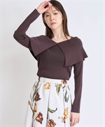 肩から腕に沿うケープ襟が華奢見えを叶え、身頃は細リブですっきりとした印象に。