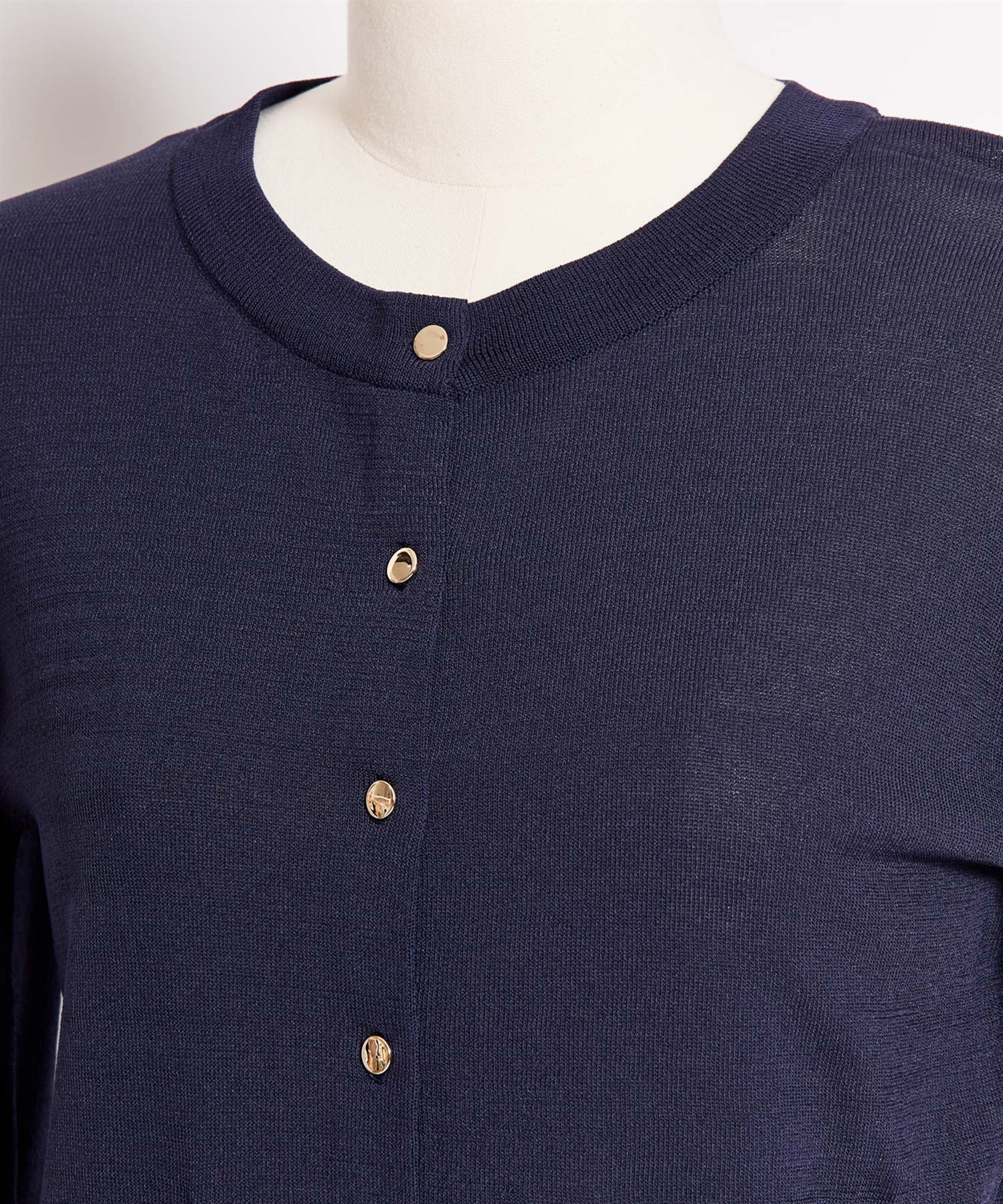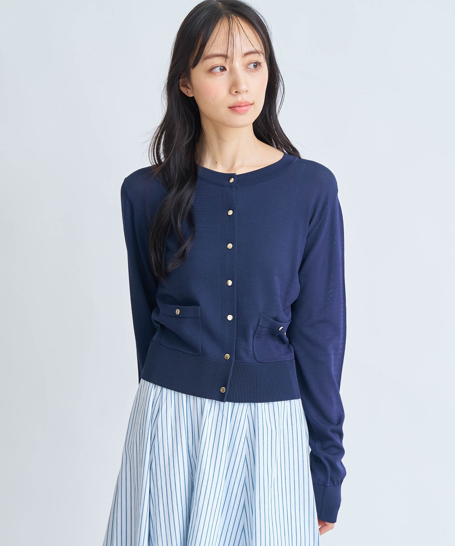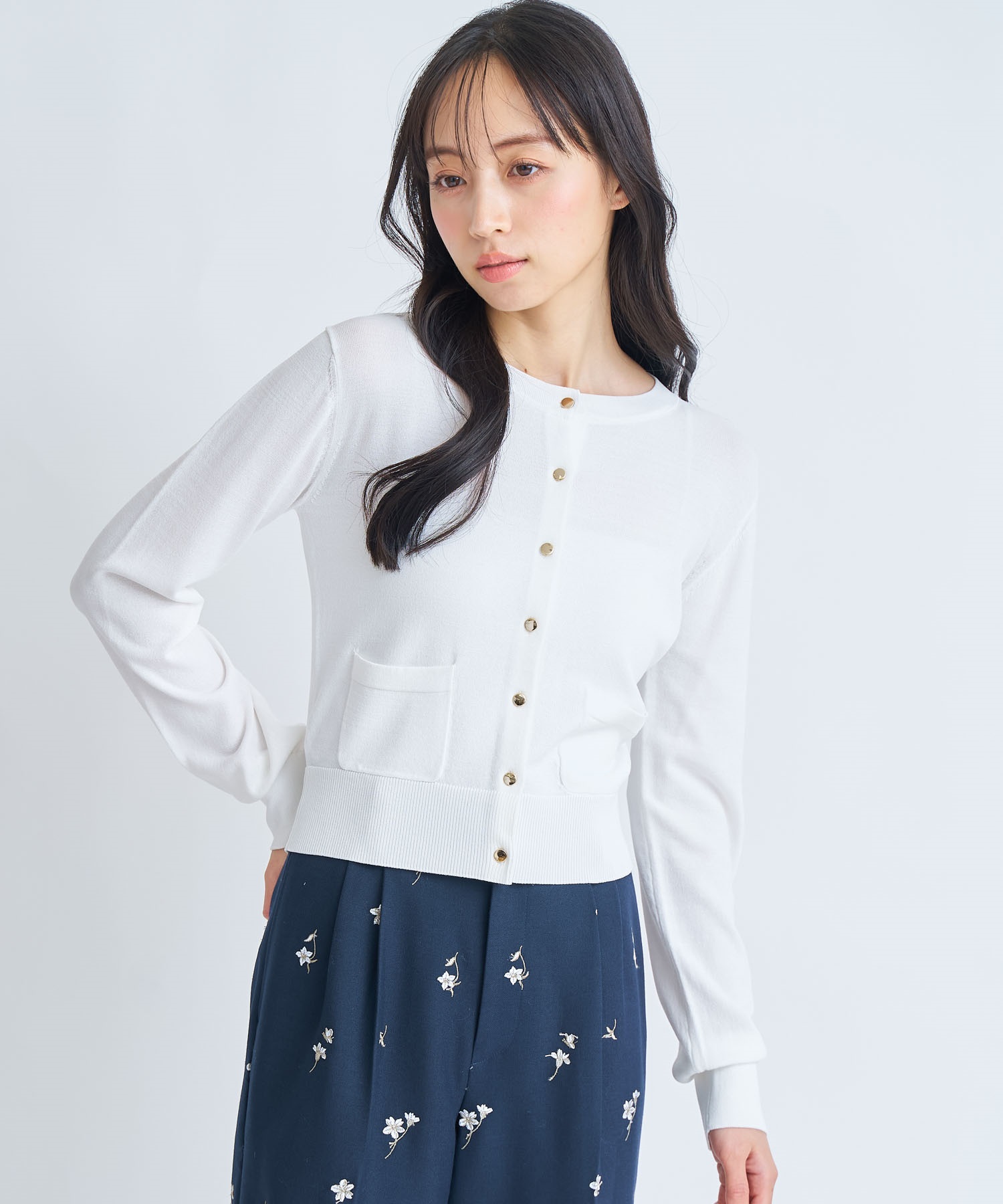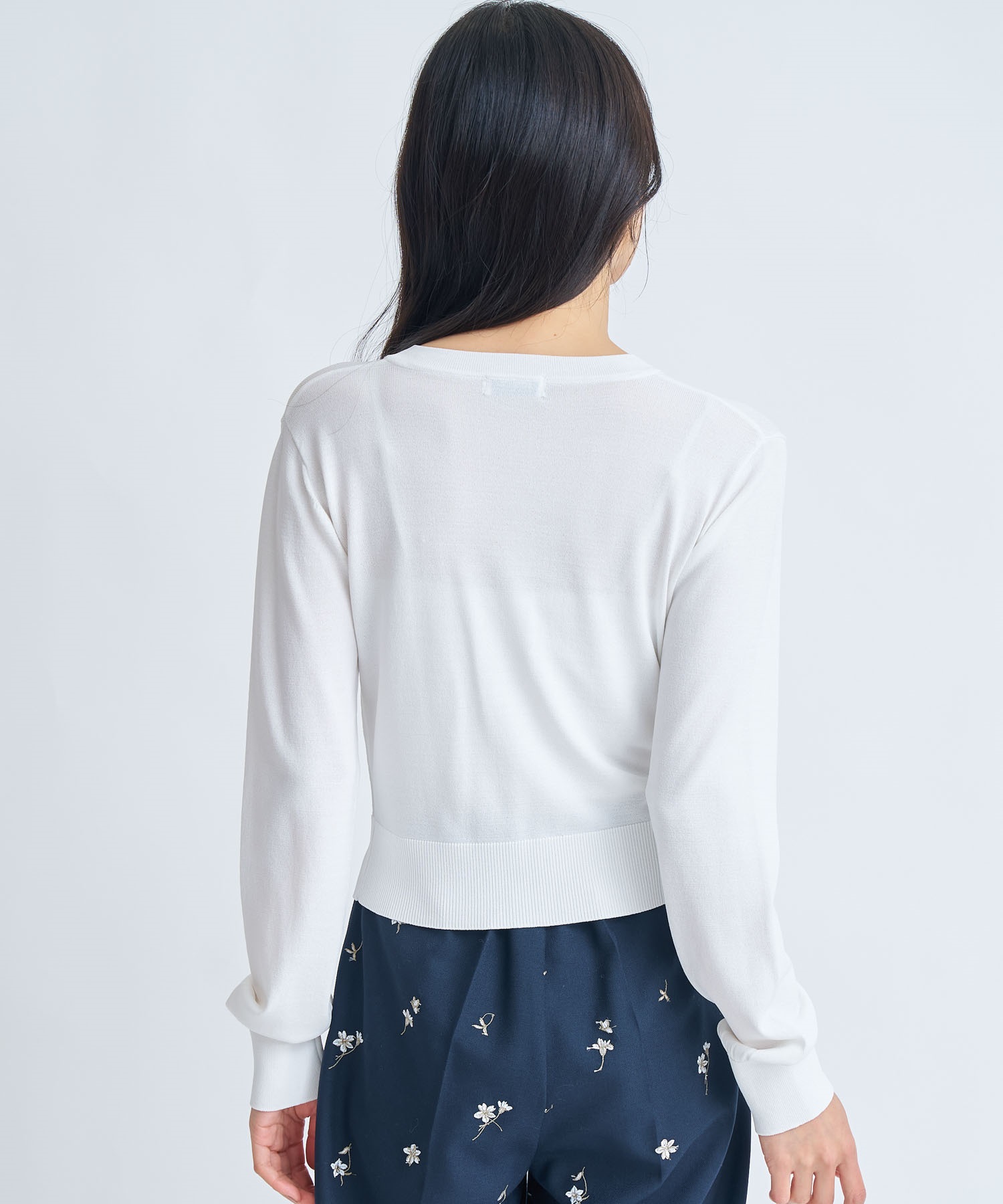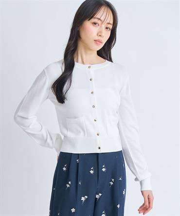 ほんのり透け感のあるシアー素材を使用したニットカーディガン。