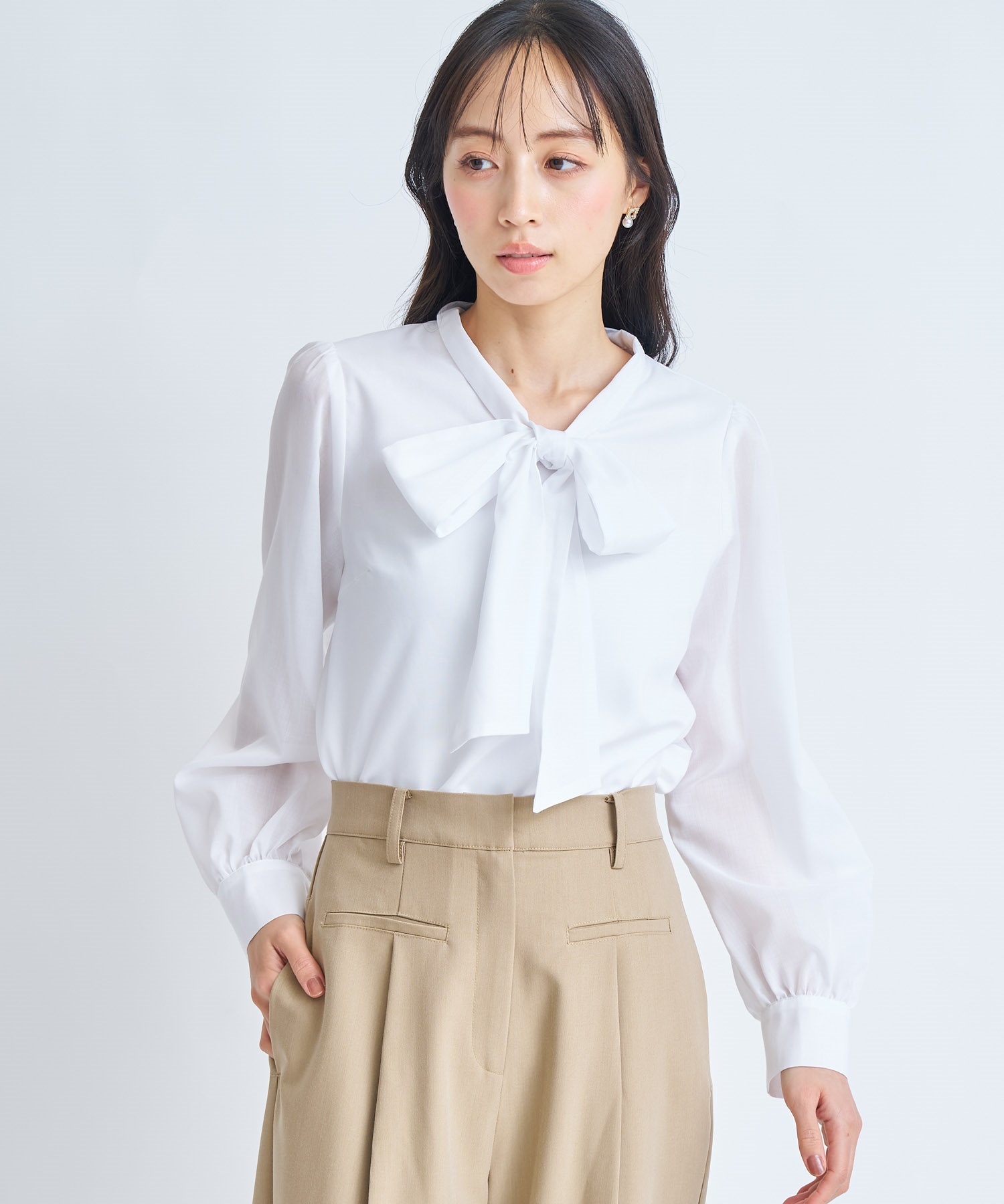 • 【予約】ビッグボウタイブラウス(01オフホワイト-フリー-3月下旬ごろのお届け)