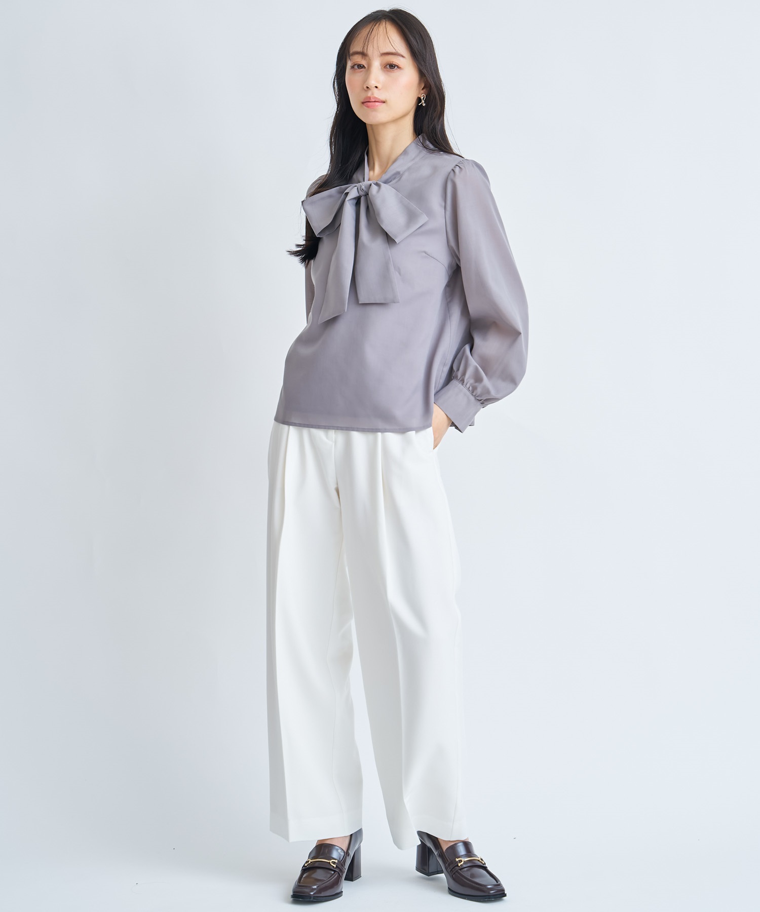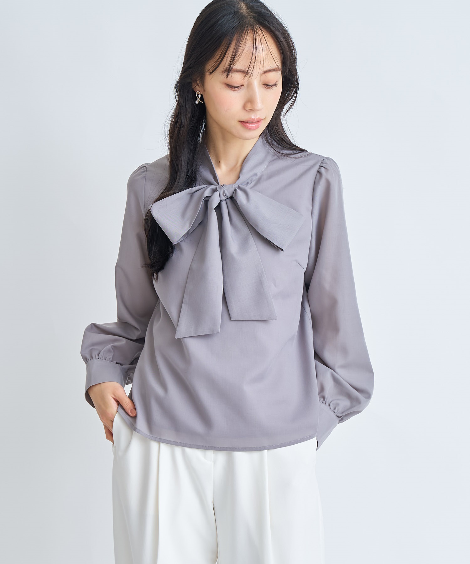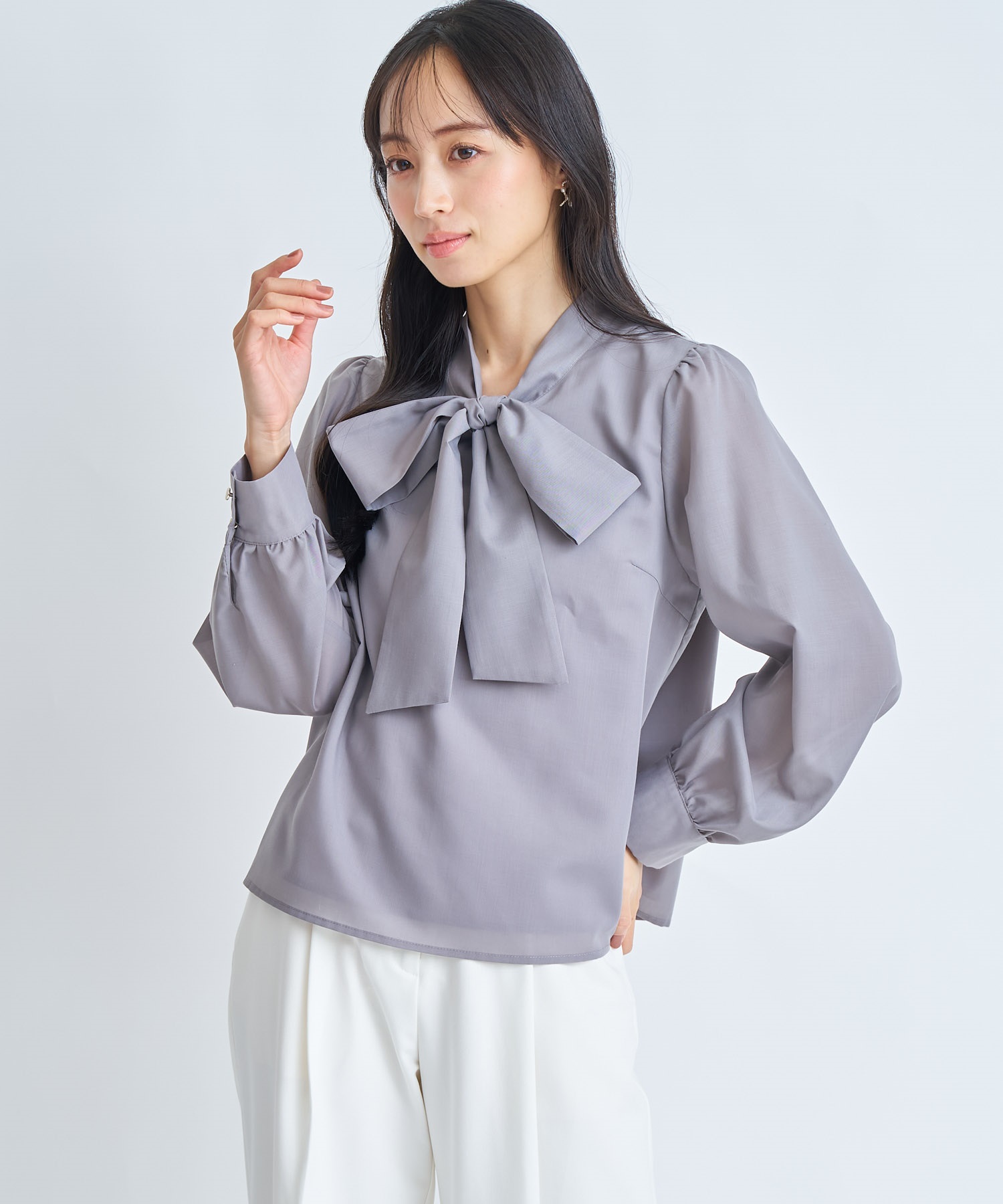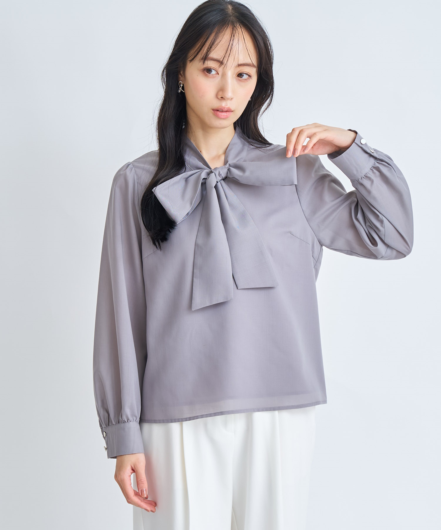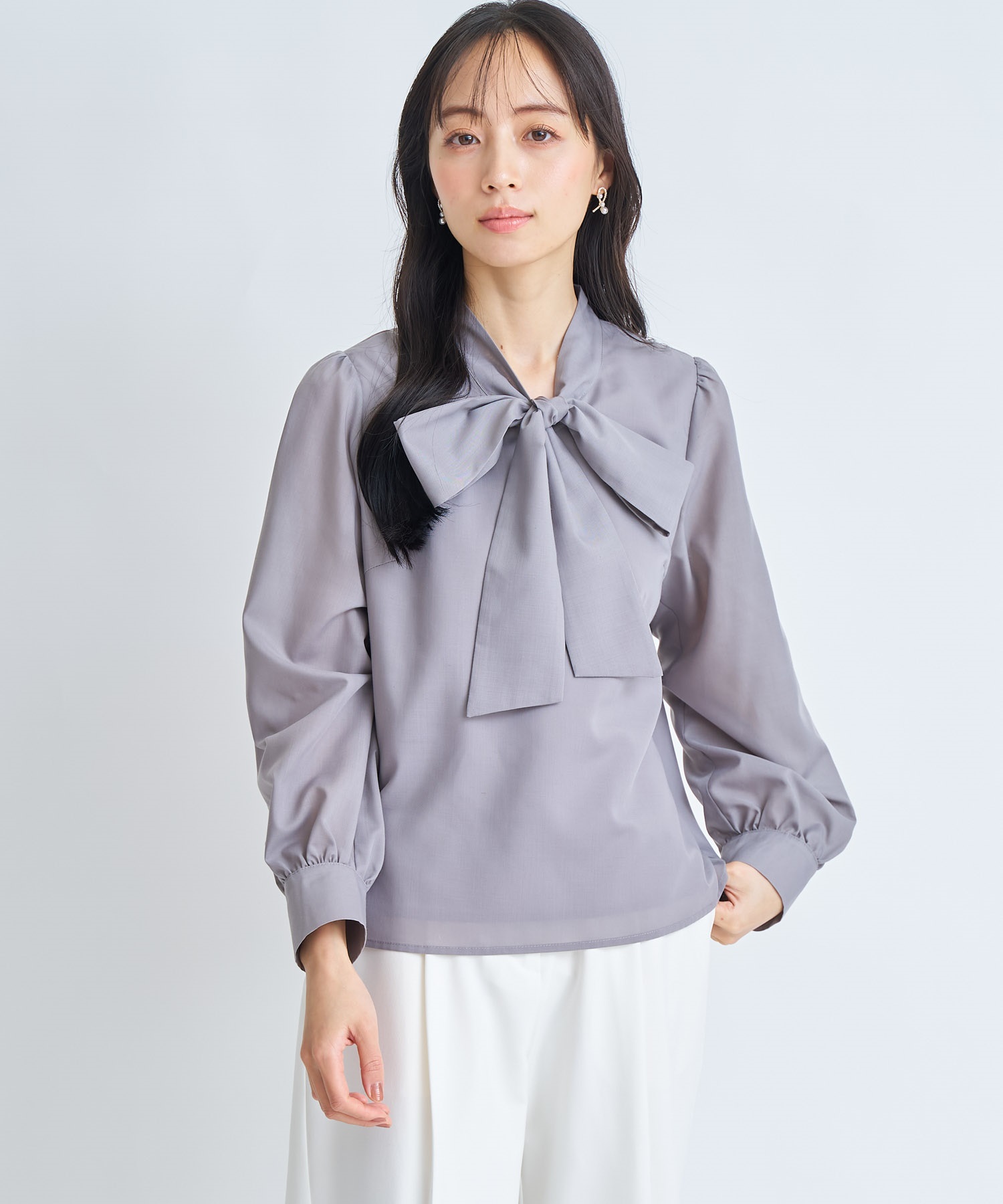 • 【予約】ビッグボウタイブラウス(11グレー-フリー-3月下旬ごろのお届け)