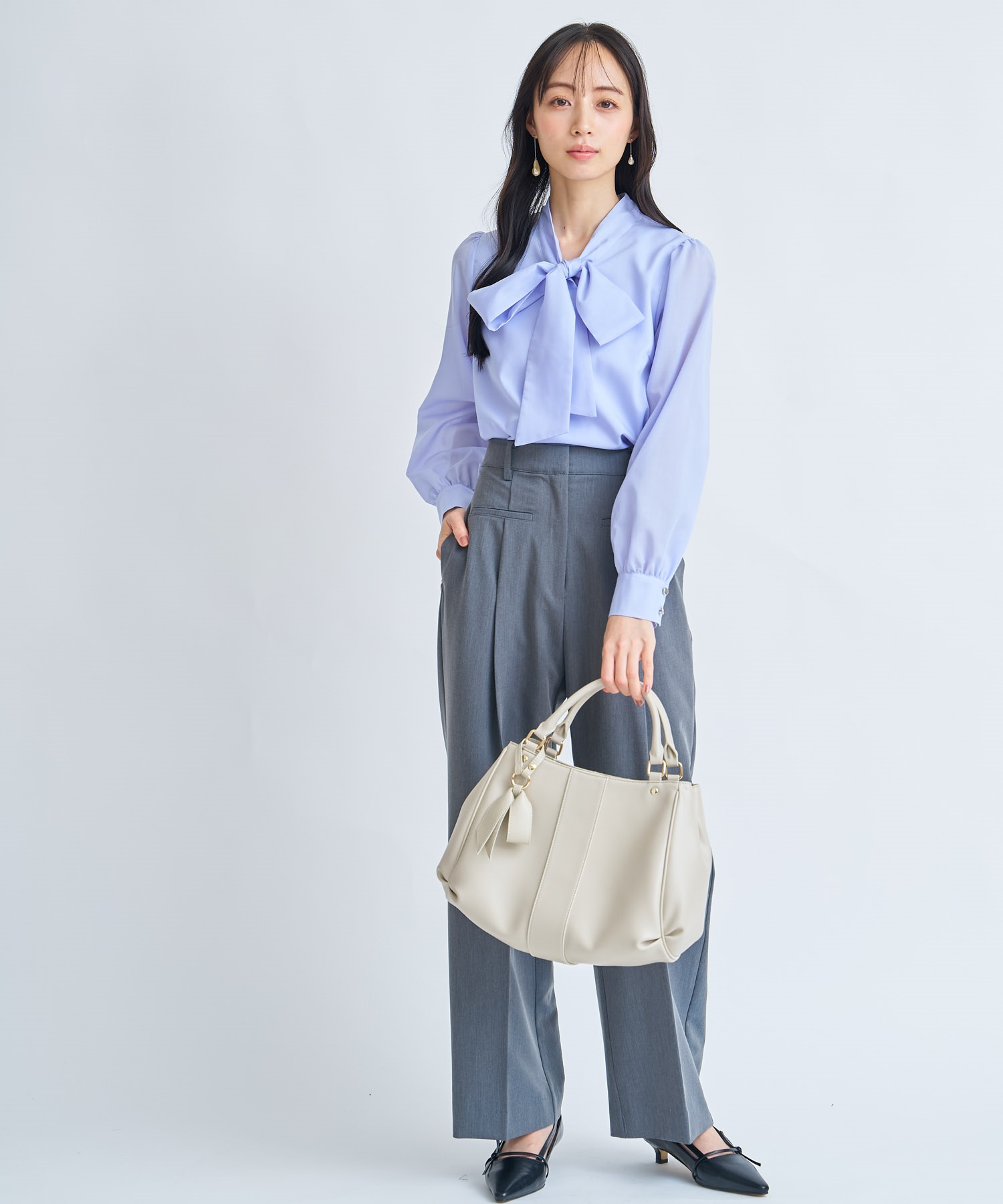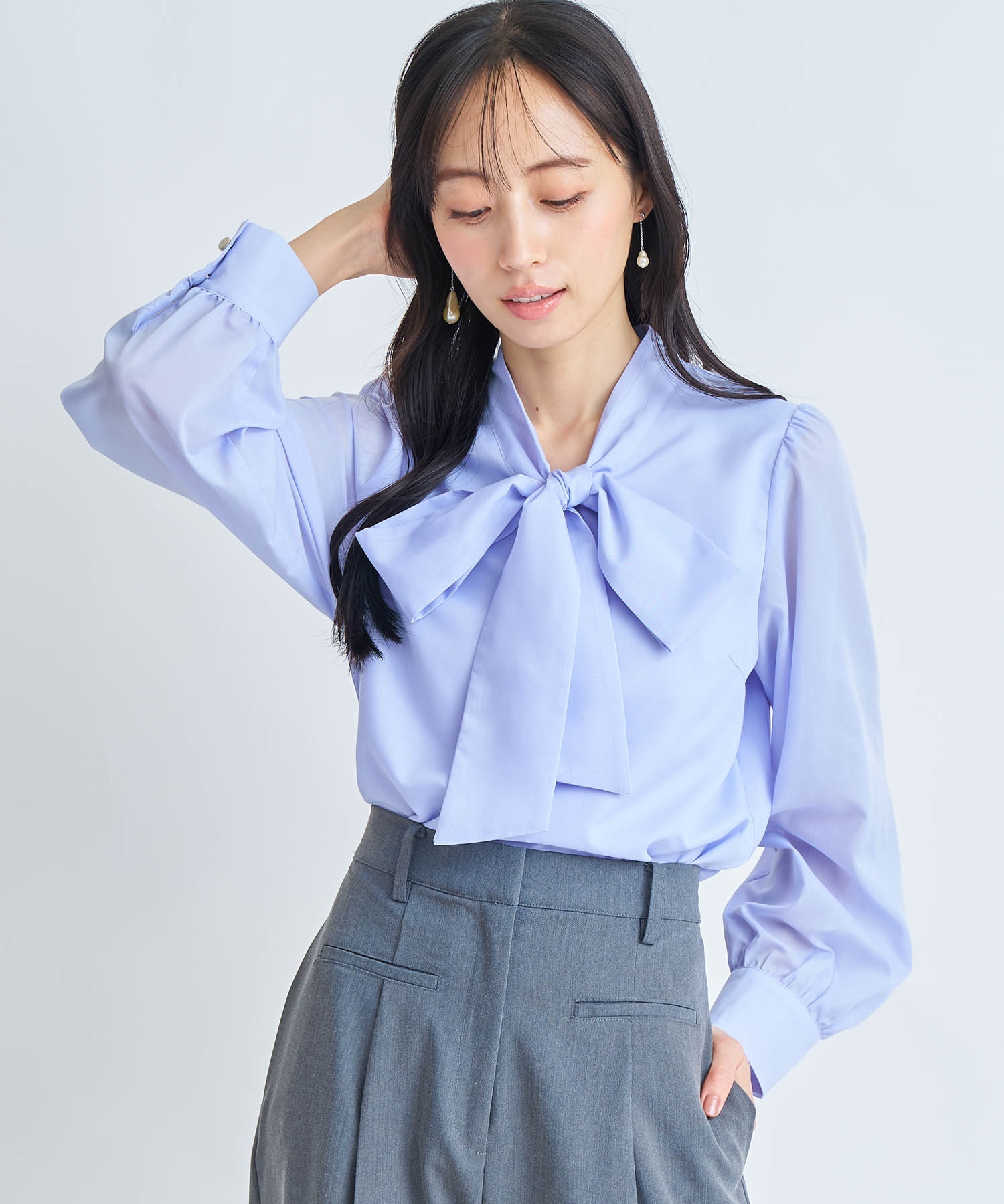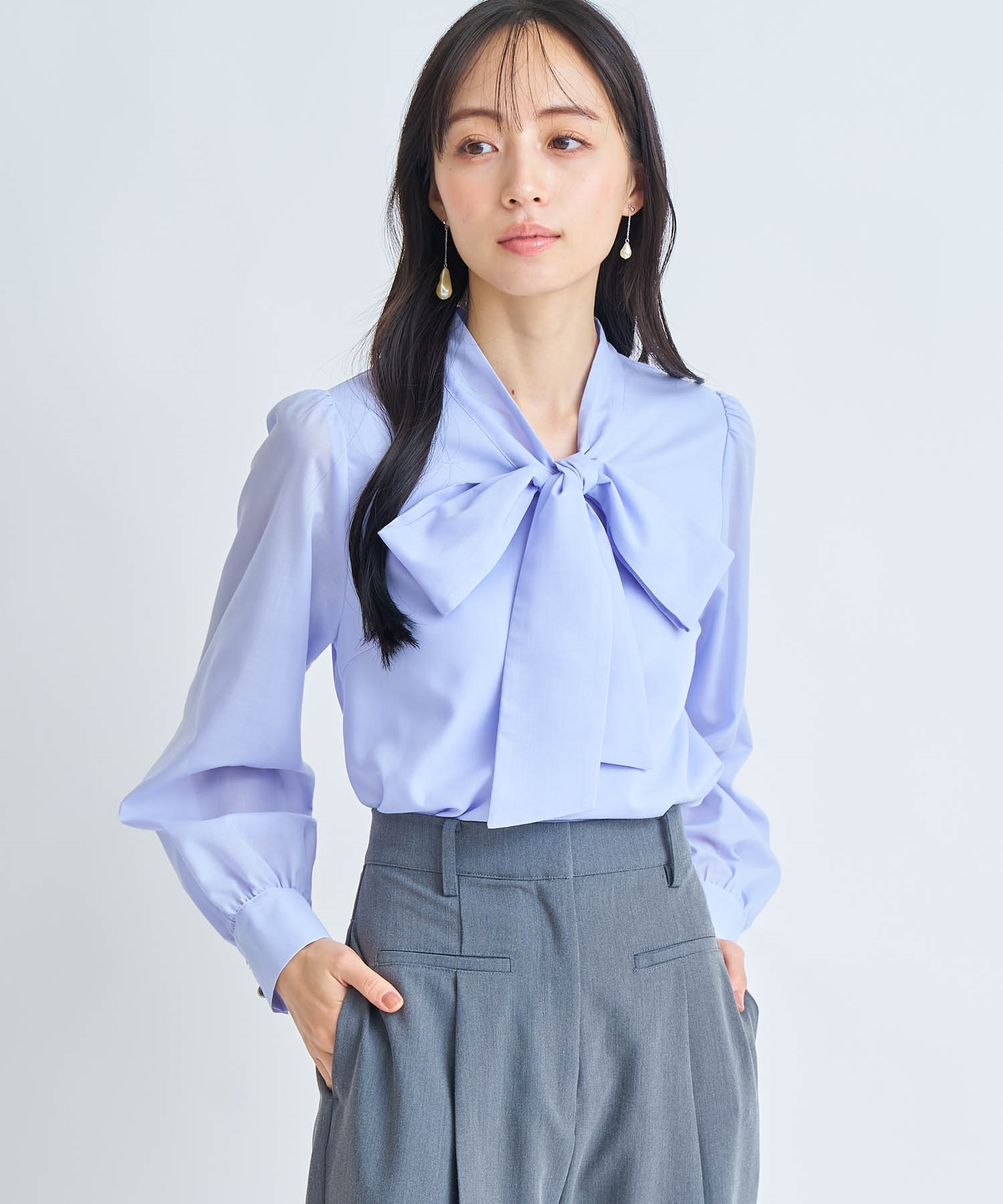 • 【予約】ビッグボウタイブラウス(72サックス-フリー-3月下旬ごろのお届け)
