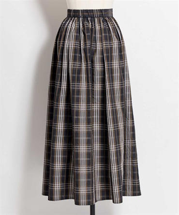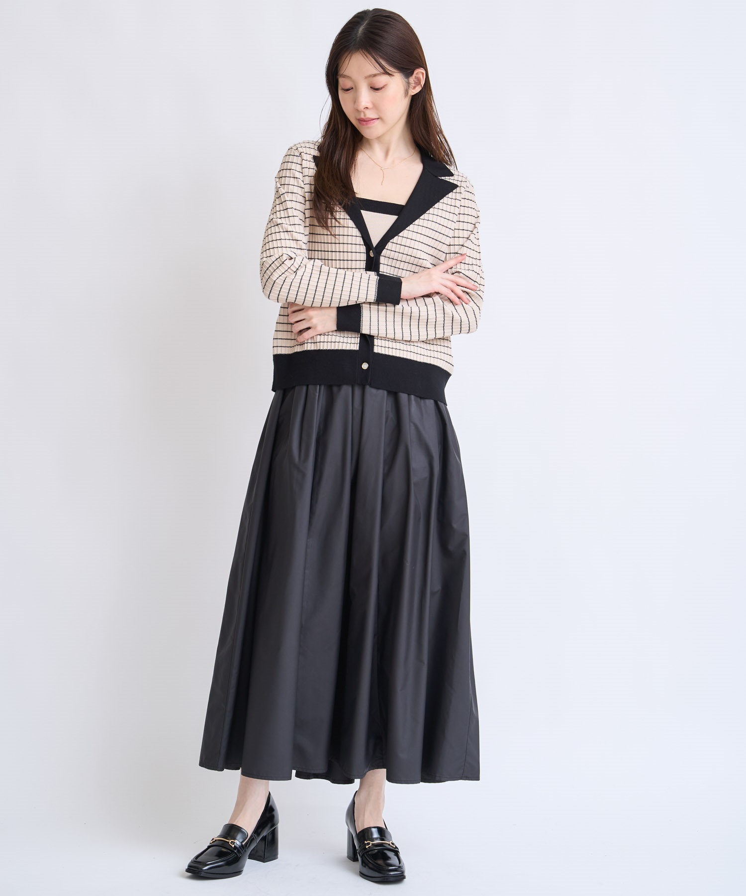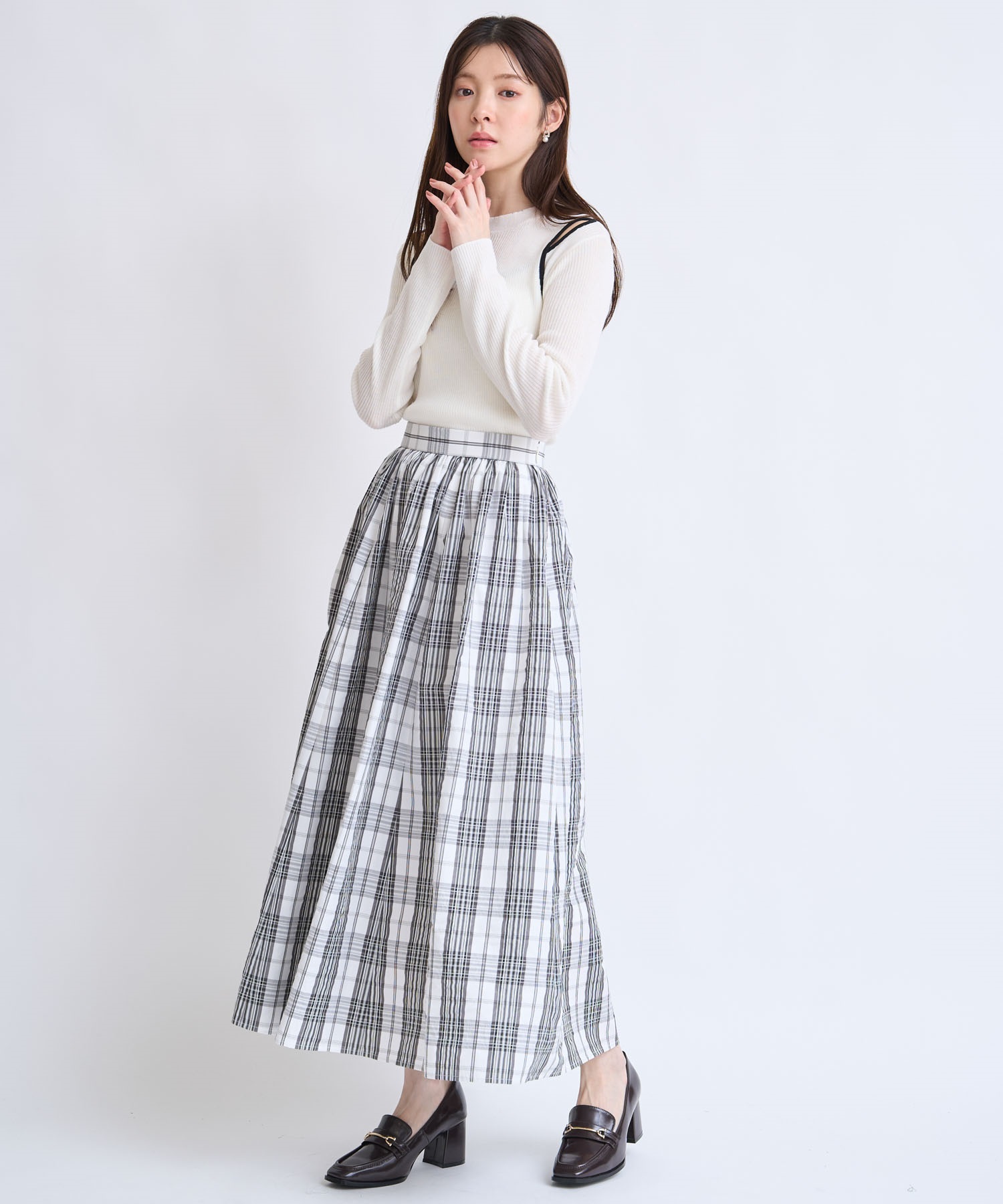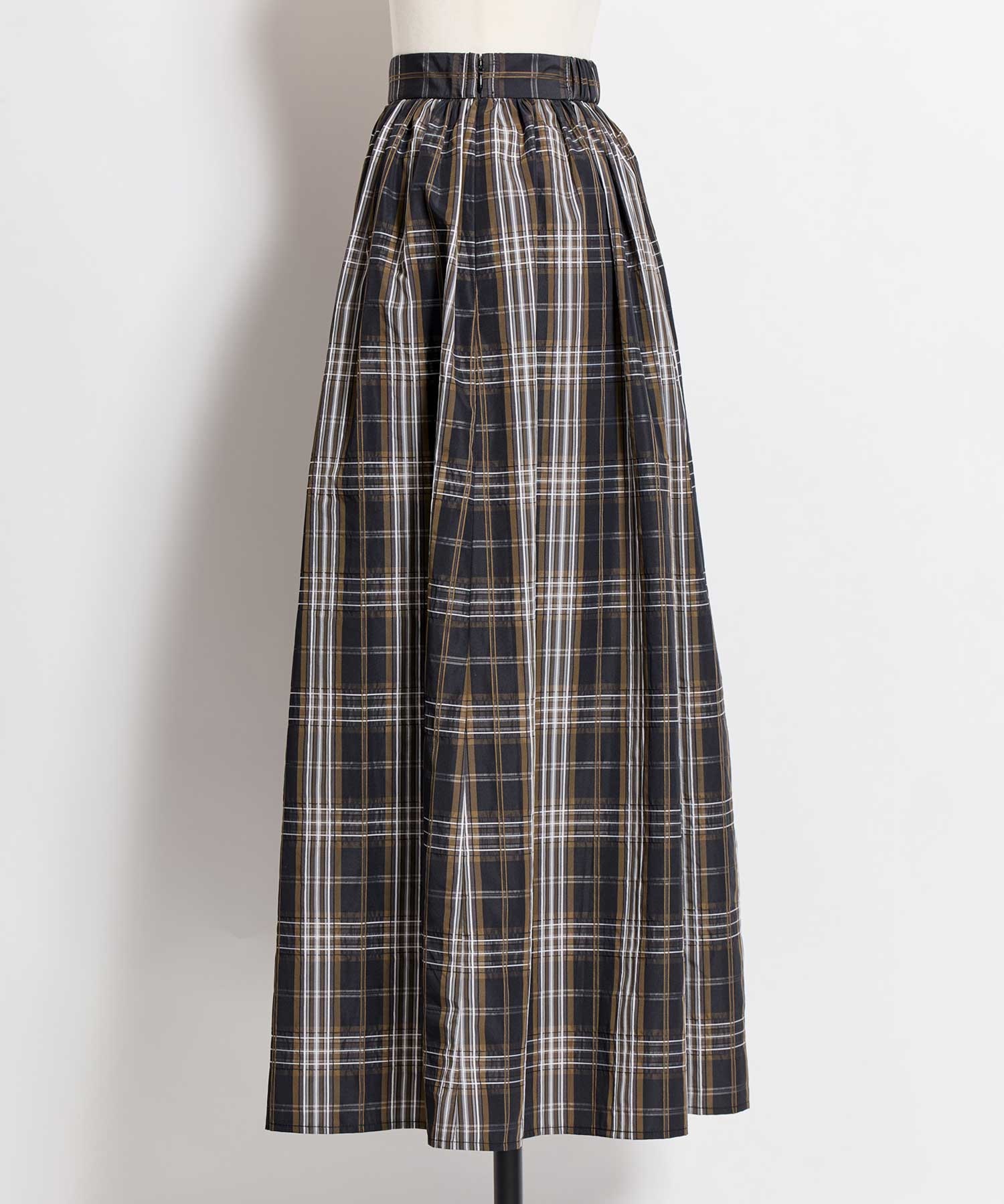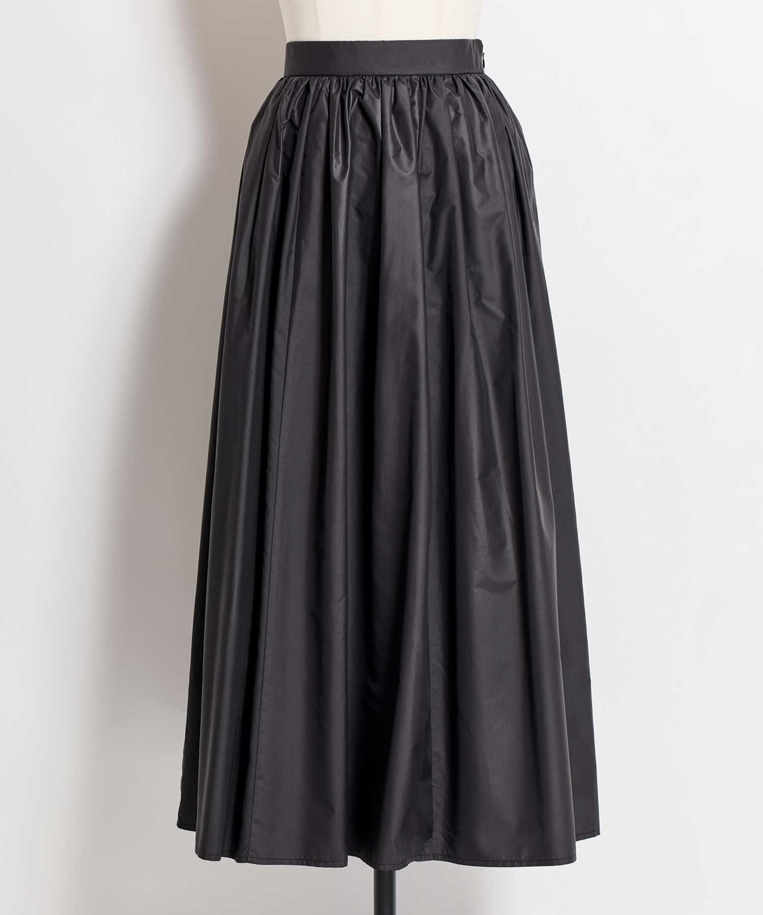 軽やかなタフタ素材を使用したギャザーフレアスカート。