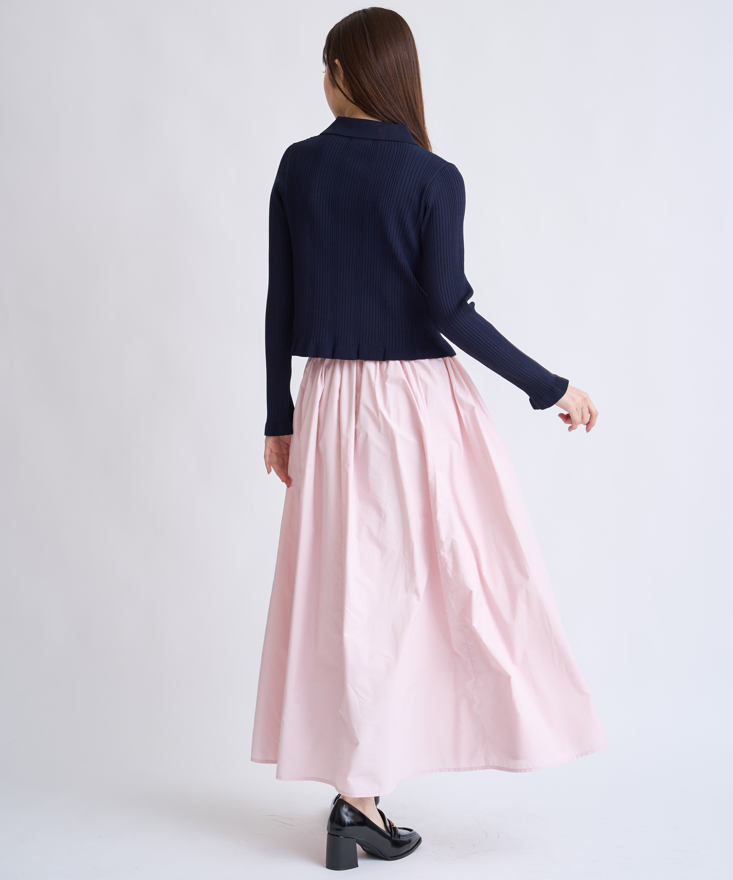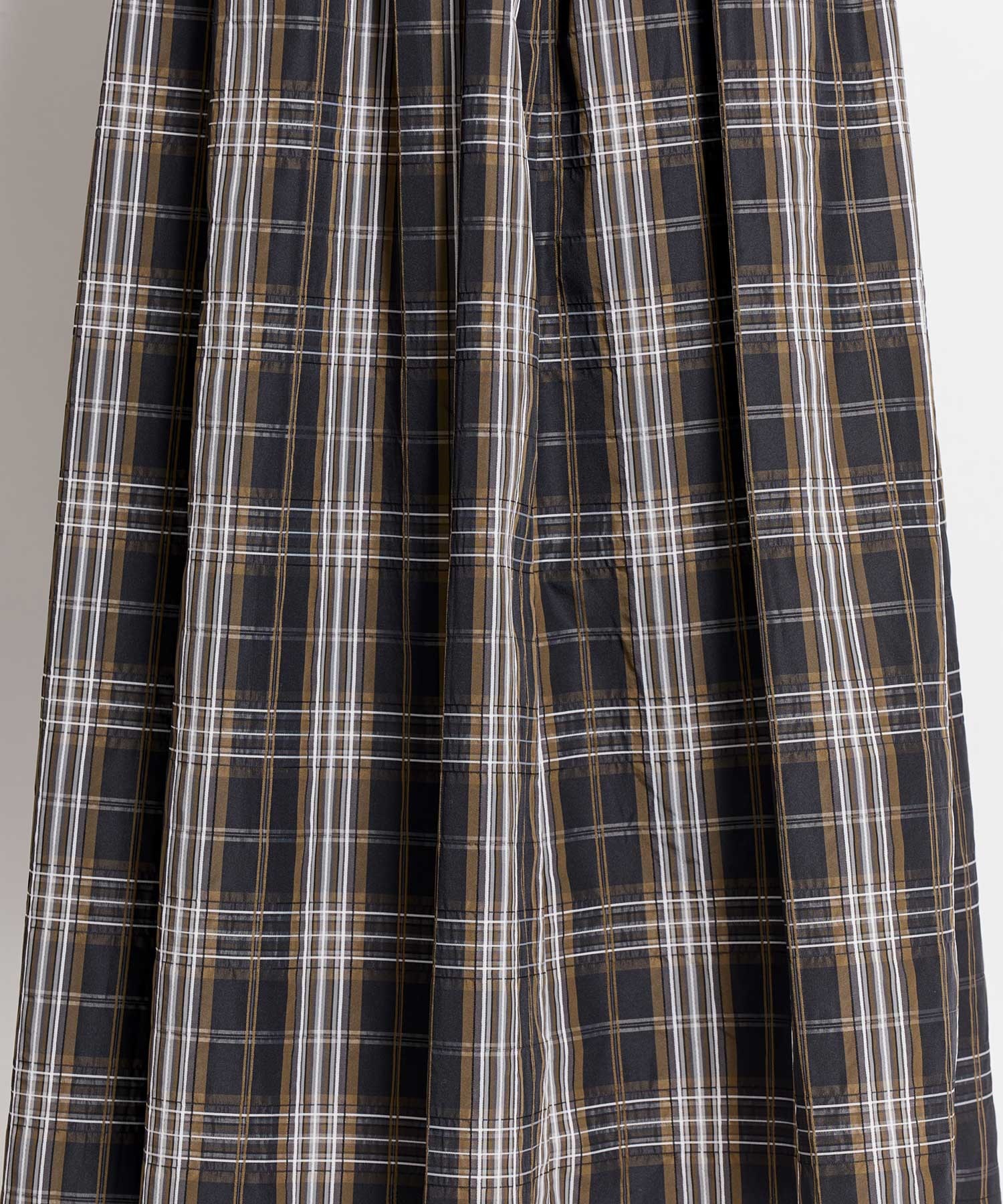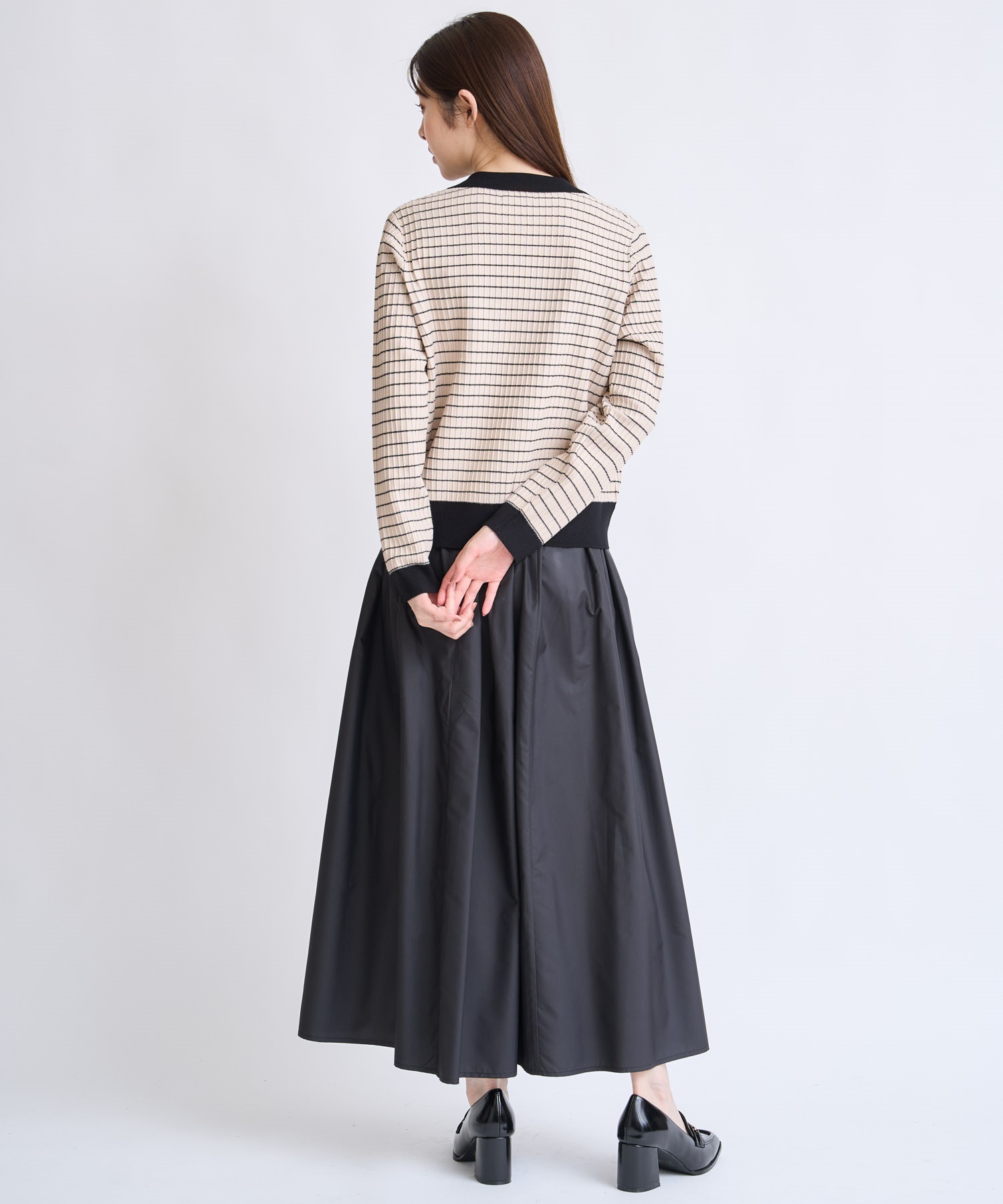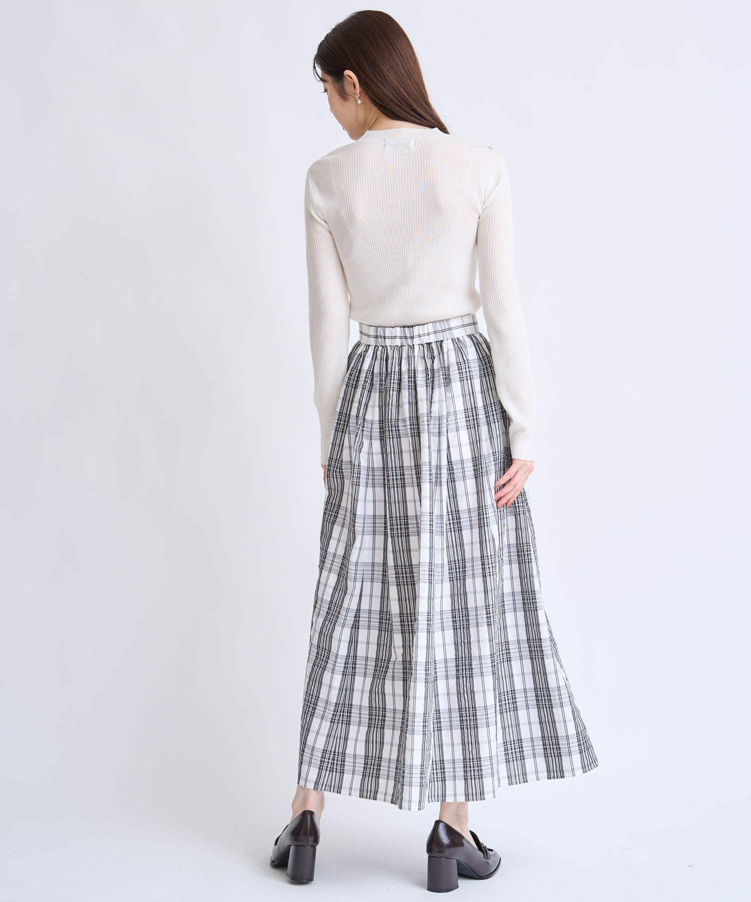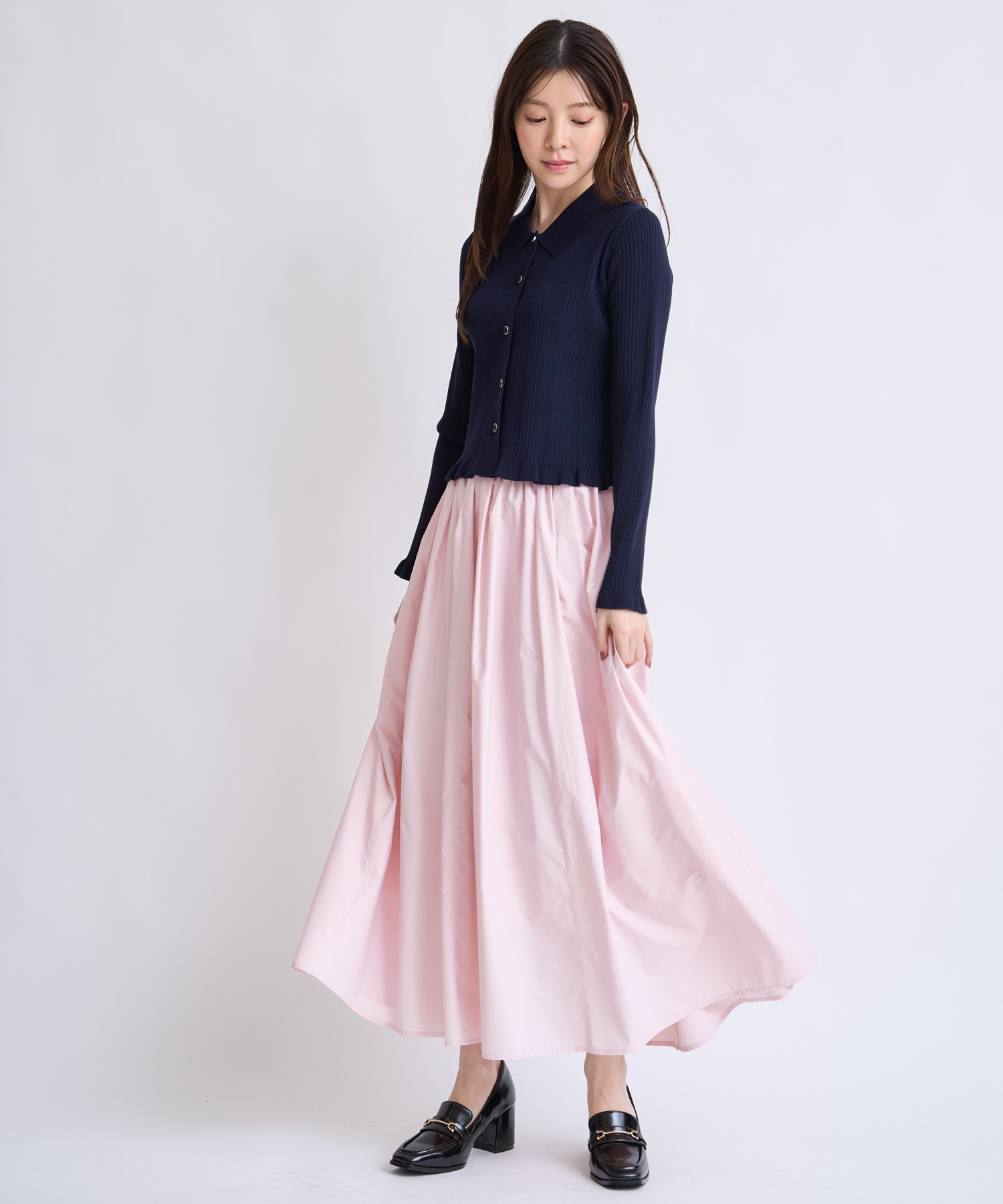 軽やかなタフタ素材を使用したギャザーフレアスカート。