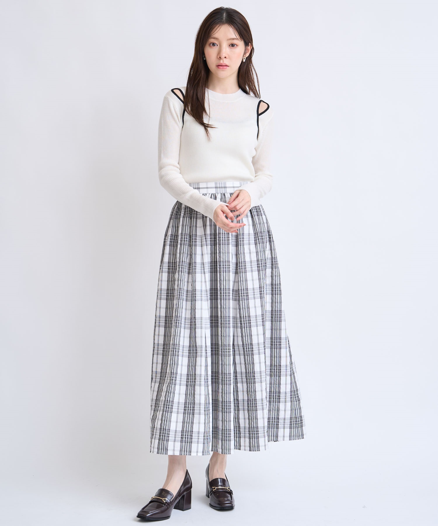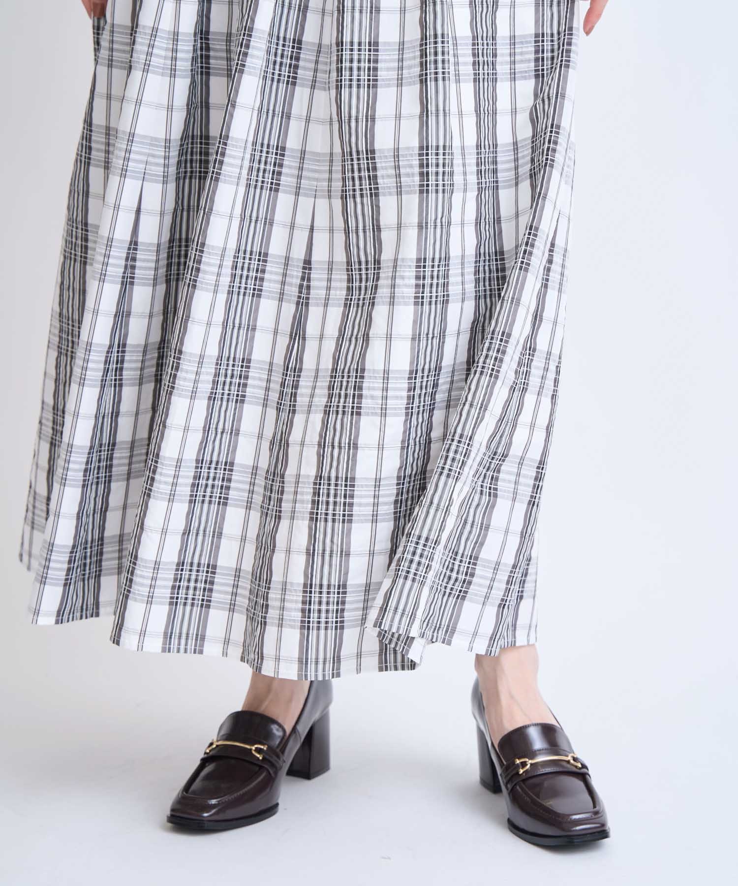 無地とチェックの2種類で、トップスを選ばずきれいめにもカジュアルにも活躍。