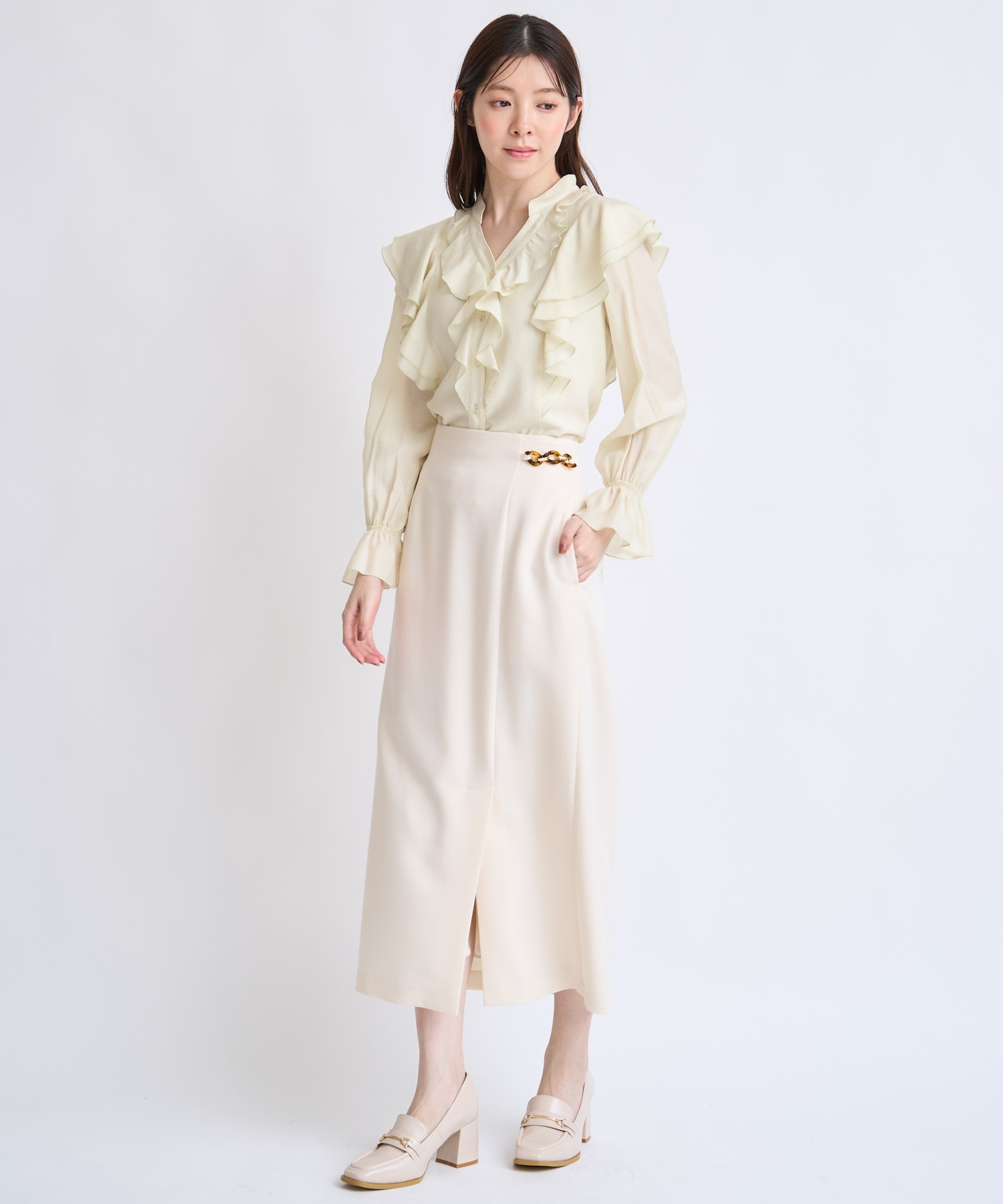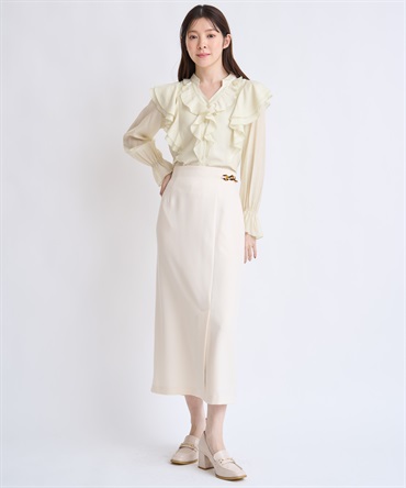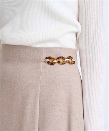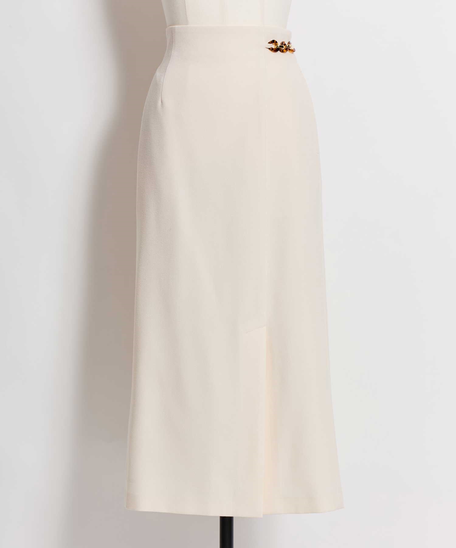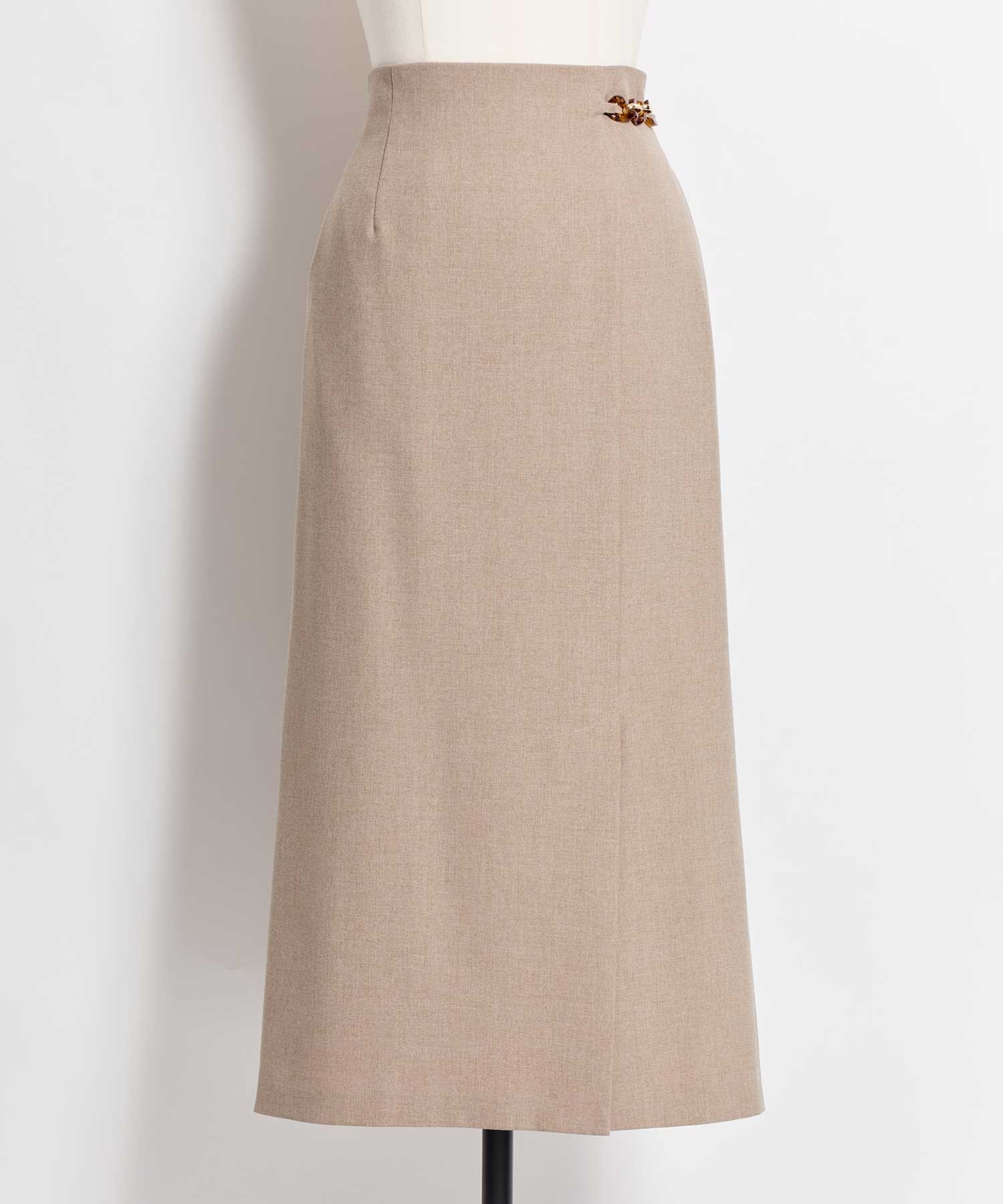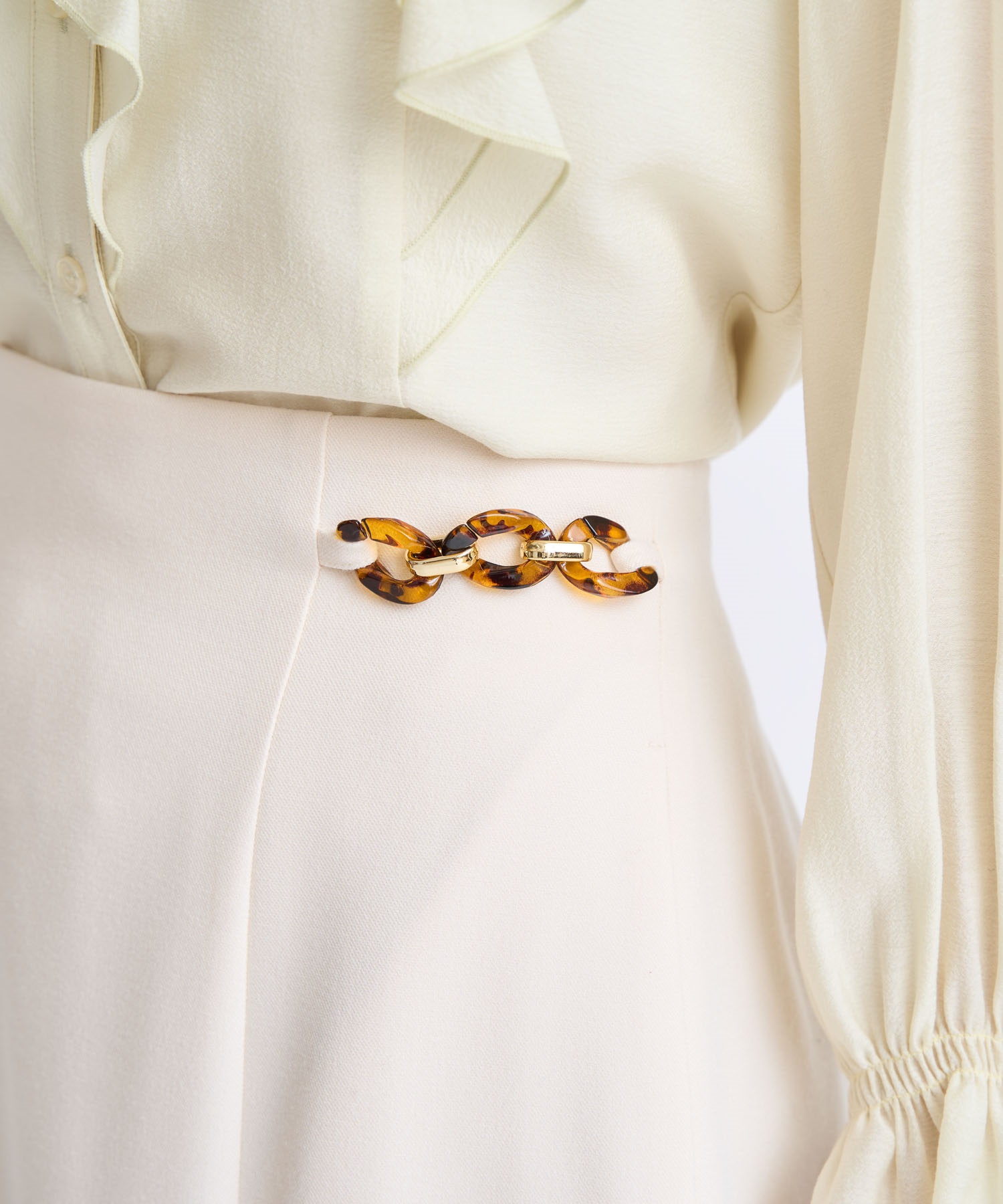 べっ甲調のチェーンモチーフがアクセントになったペンシルスカート。