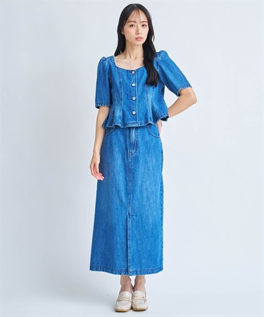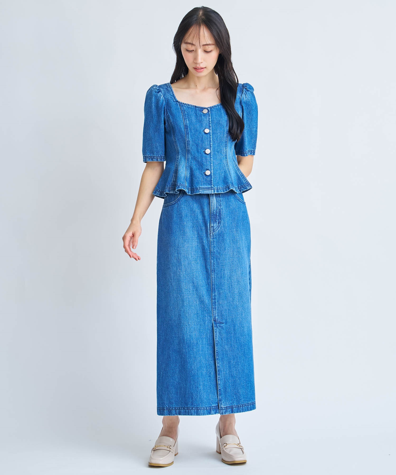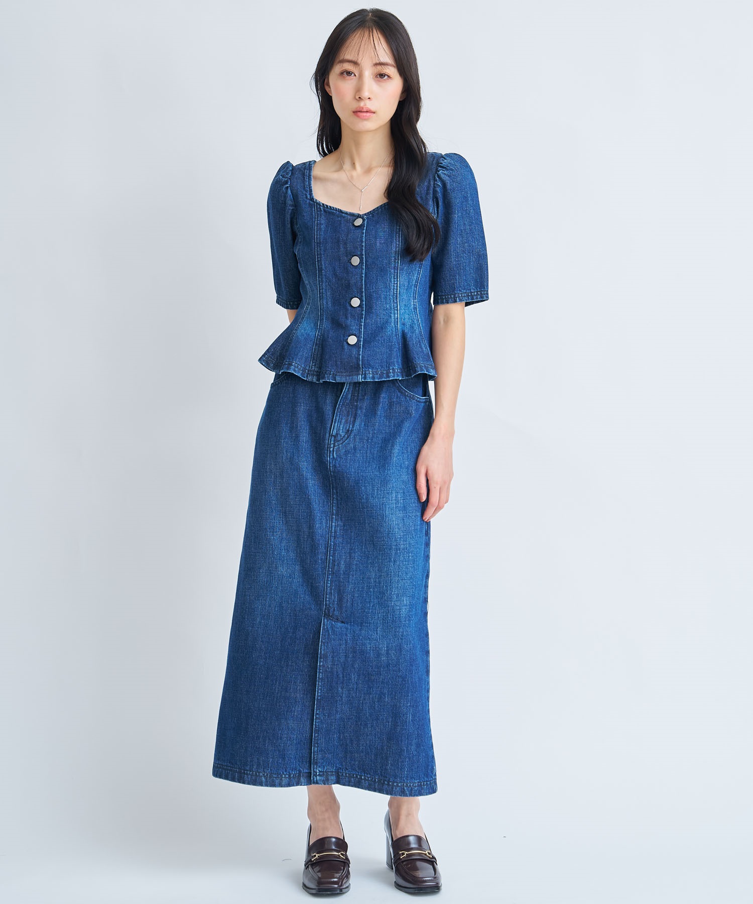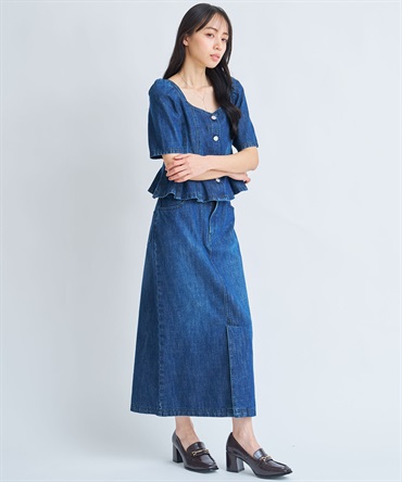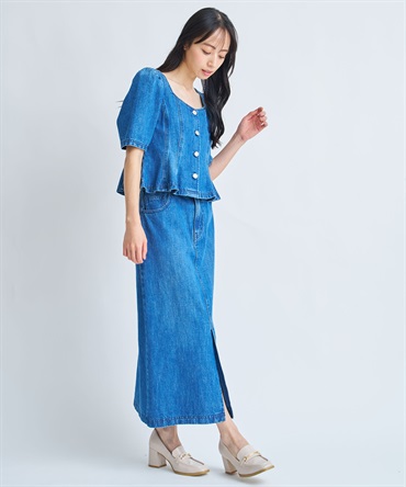 • 【予約】デニムペンシルスカート(74インディゴブルー-S-3月下旬ごろのお届け)