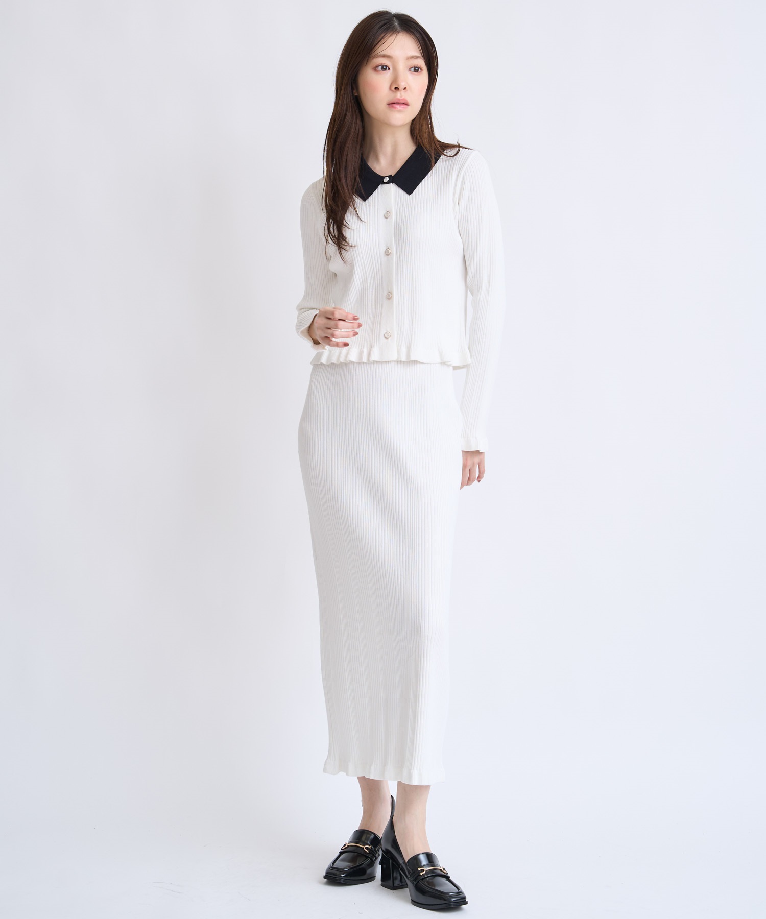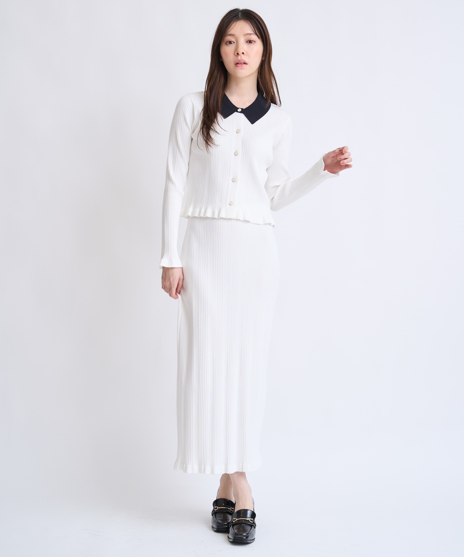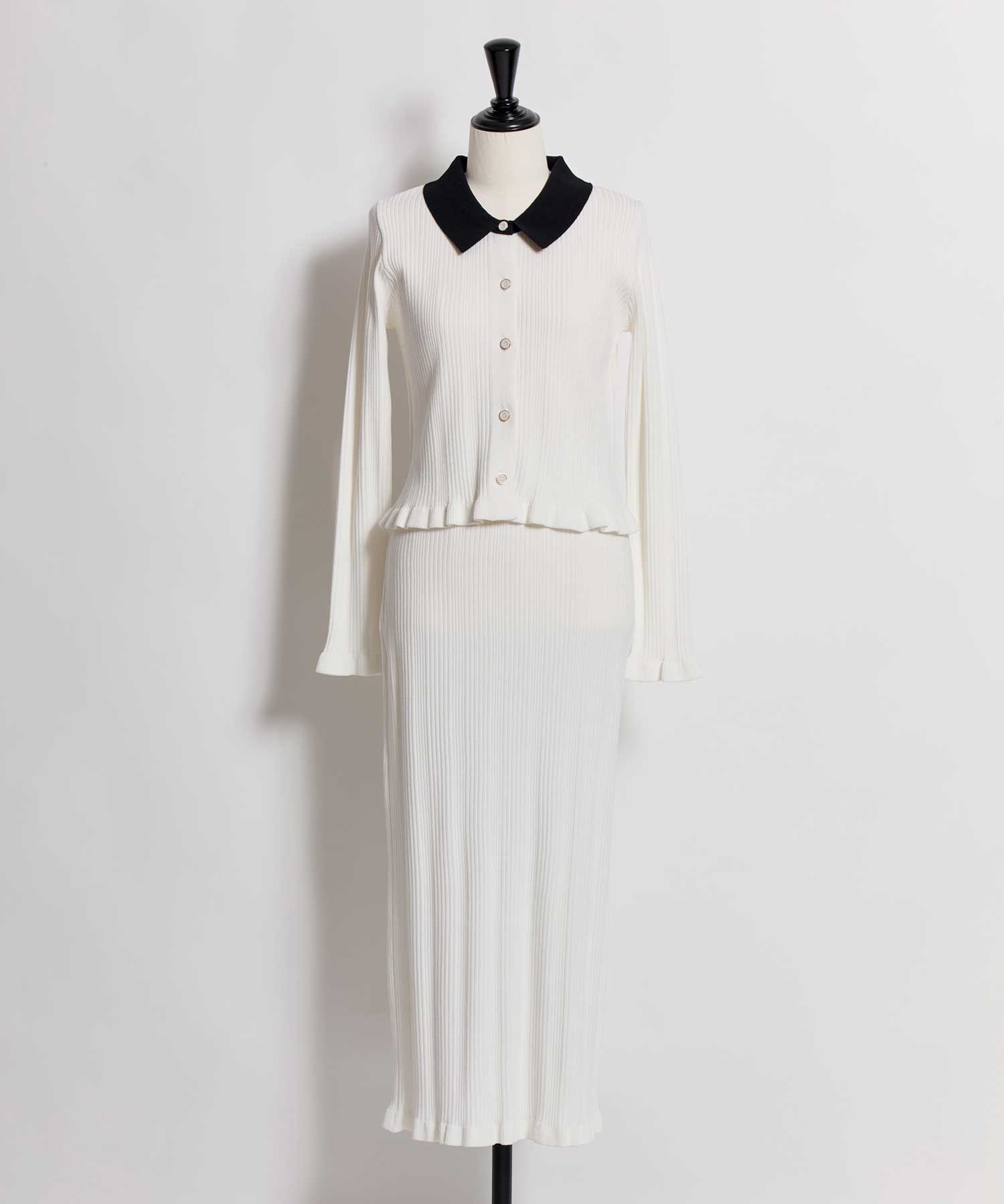 • 【予約】襟付きニットセットアップ(01オフホワイト-フリー-2月下旬ごろのお届け)