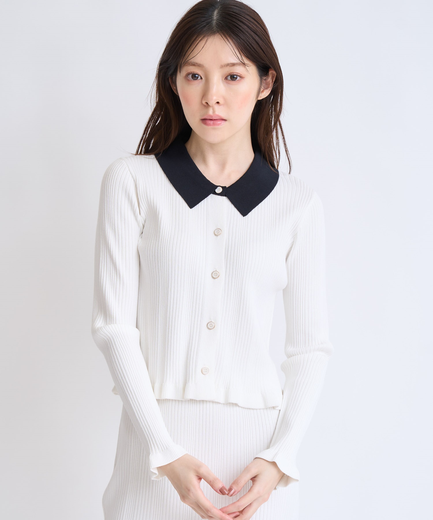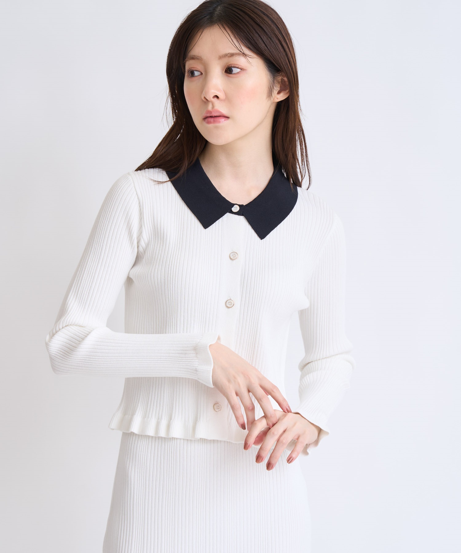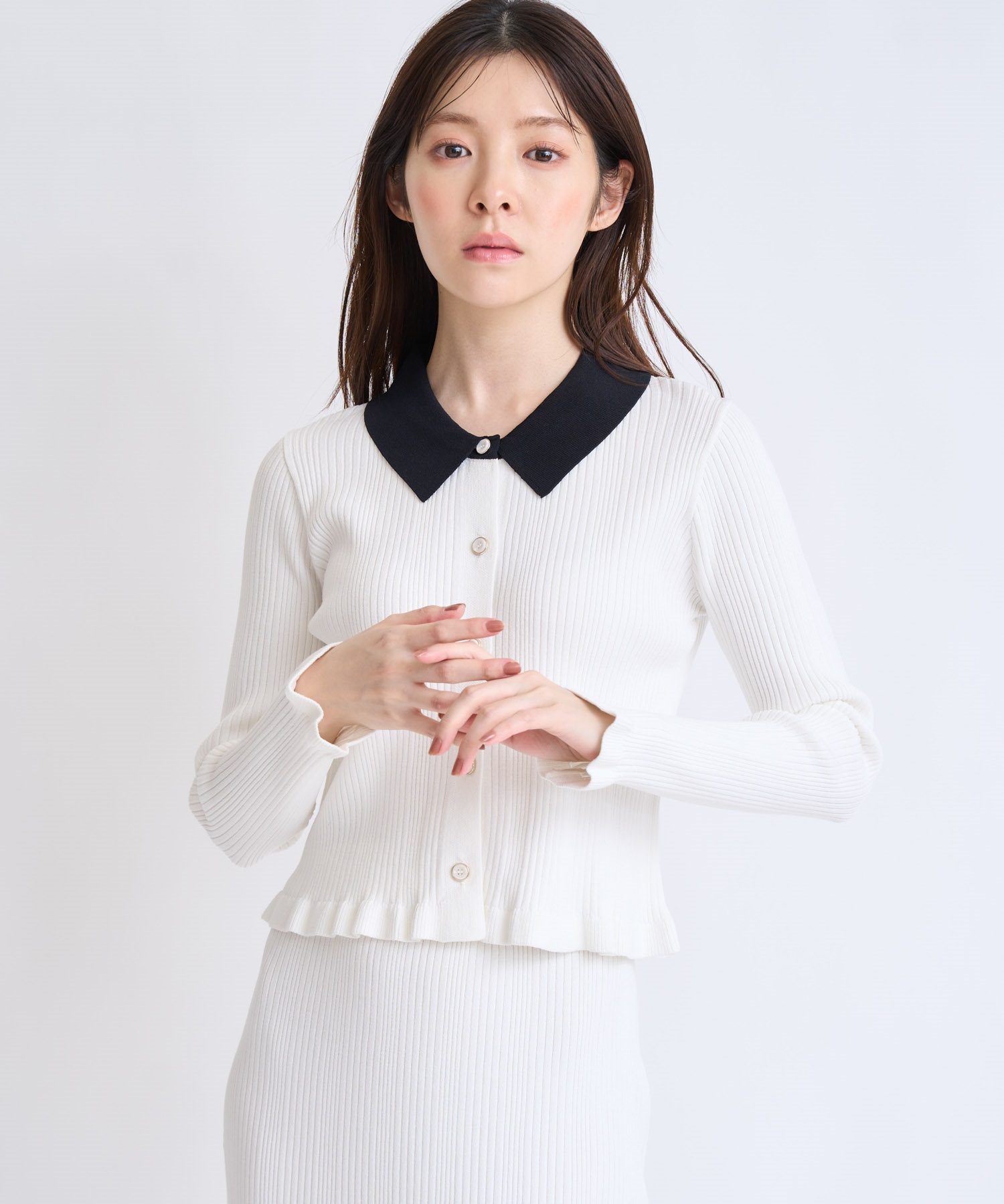 • 【予約】襟付きニットセットアップ(01オフホワイト-フリー-2月下旬ごろのお届け)