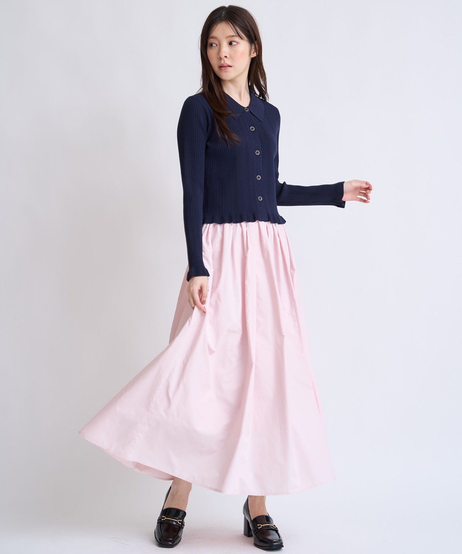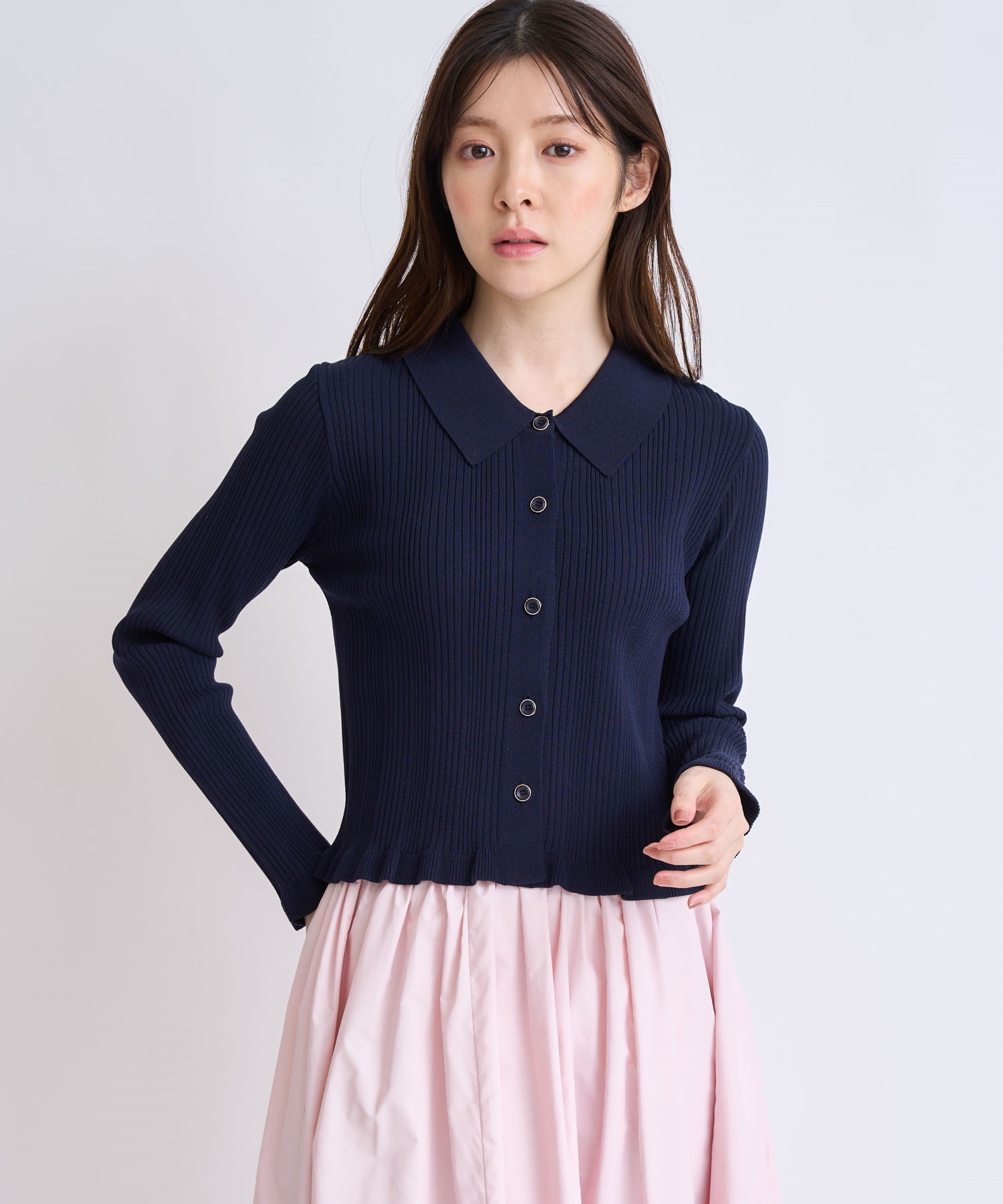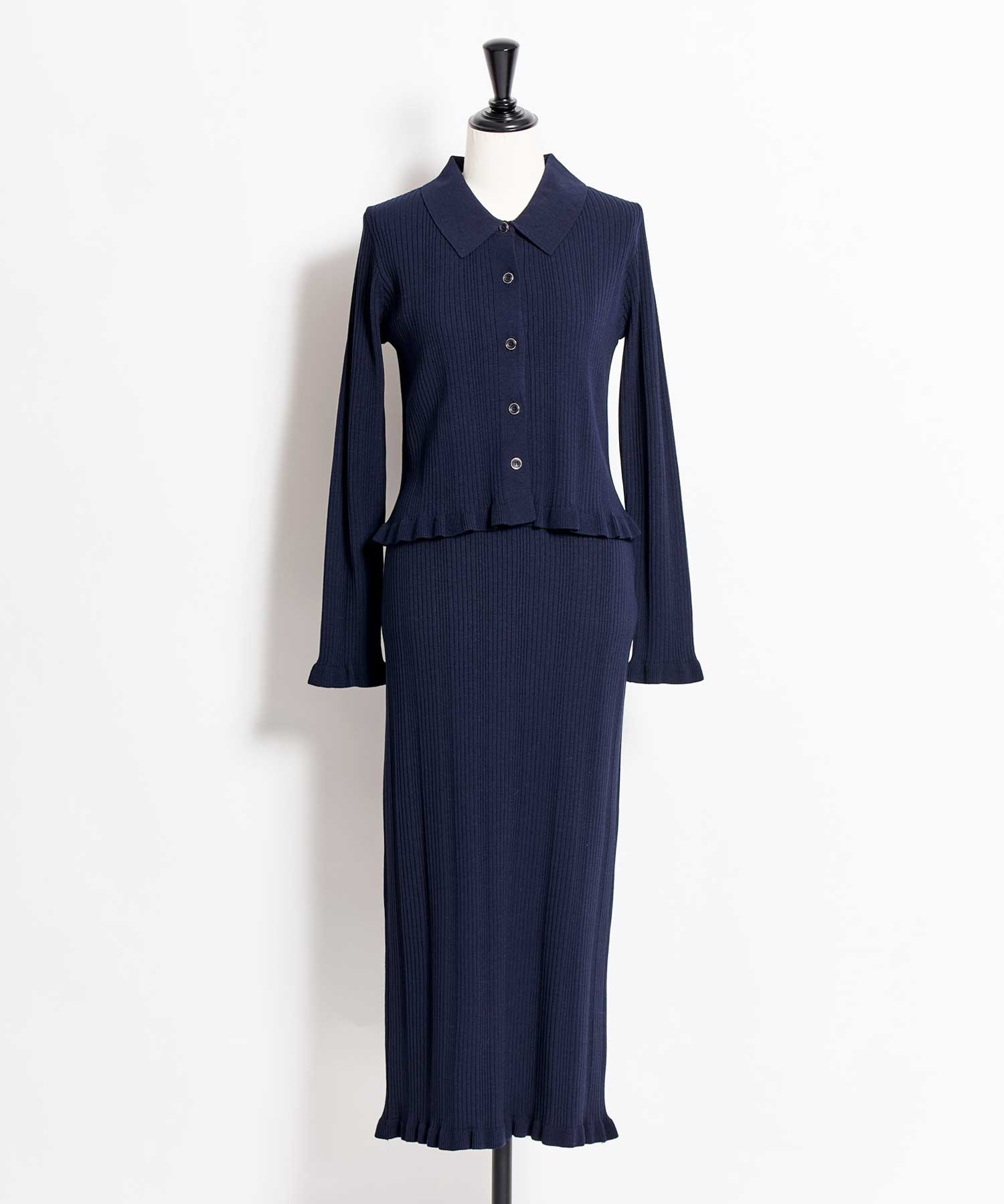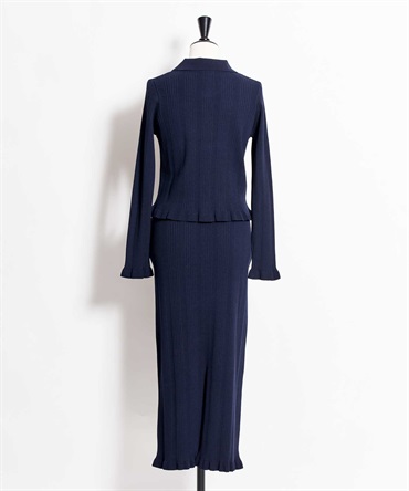 • 【予約】襟付きニットセットアップ(70ネイビー-フリー-2月下旬ごろのお届け)