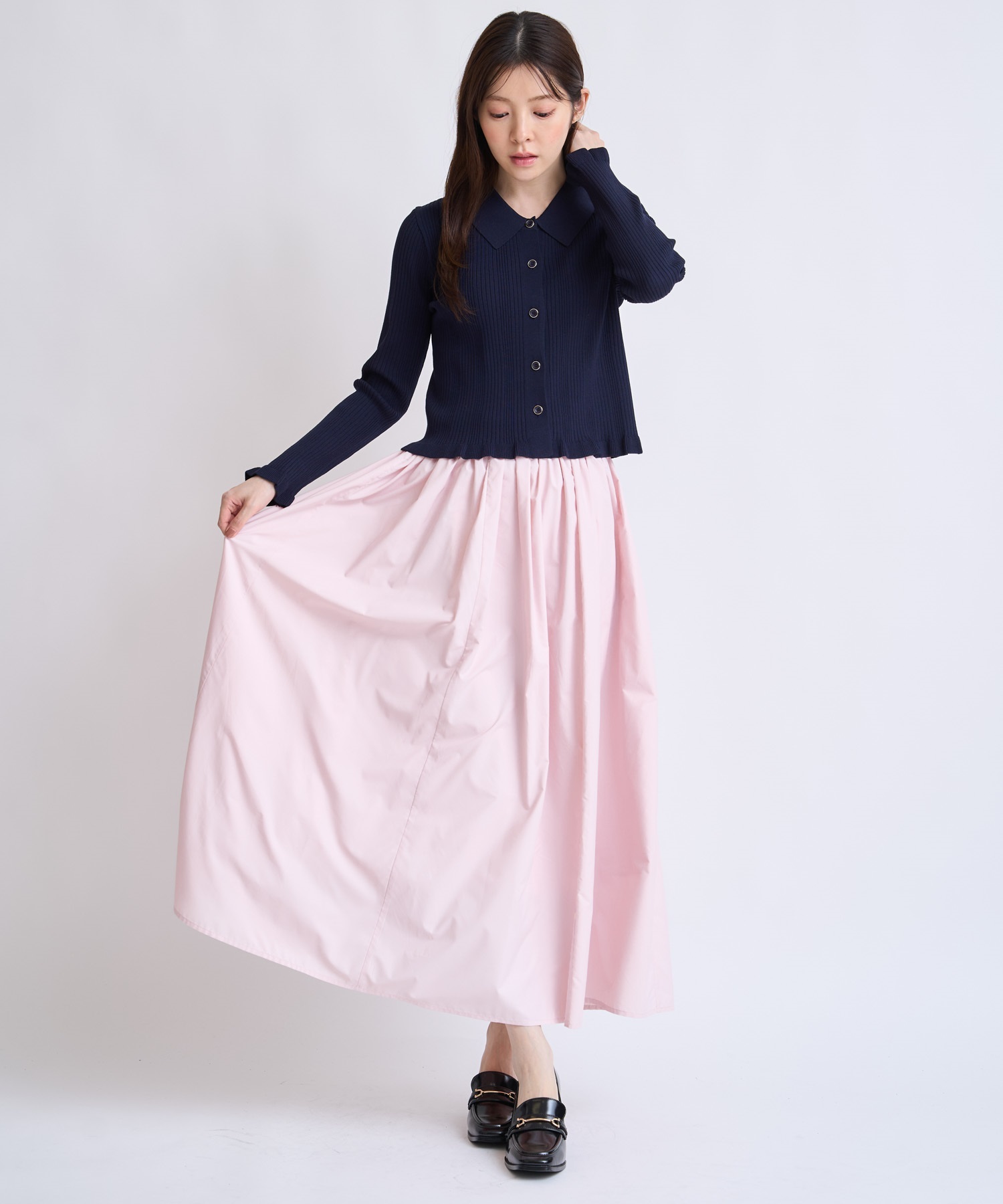 トップスはコンパクトな形でフレアスカートやワイドパンツとの相性が良く、スカートはウエストゴム仕様で快適な穿き心地。
