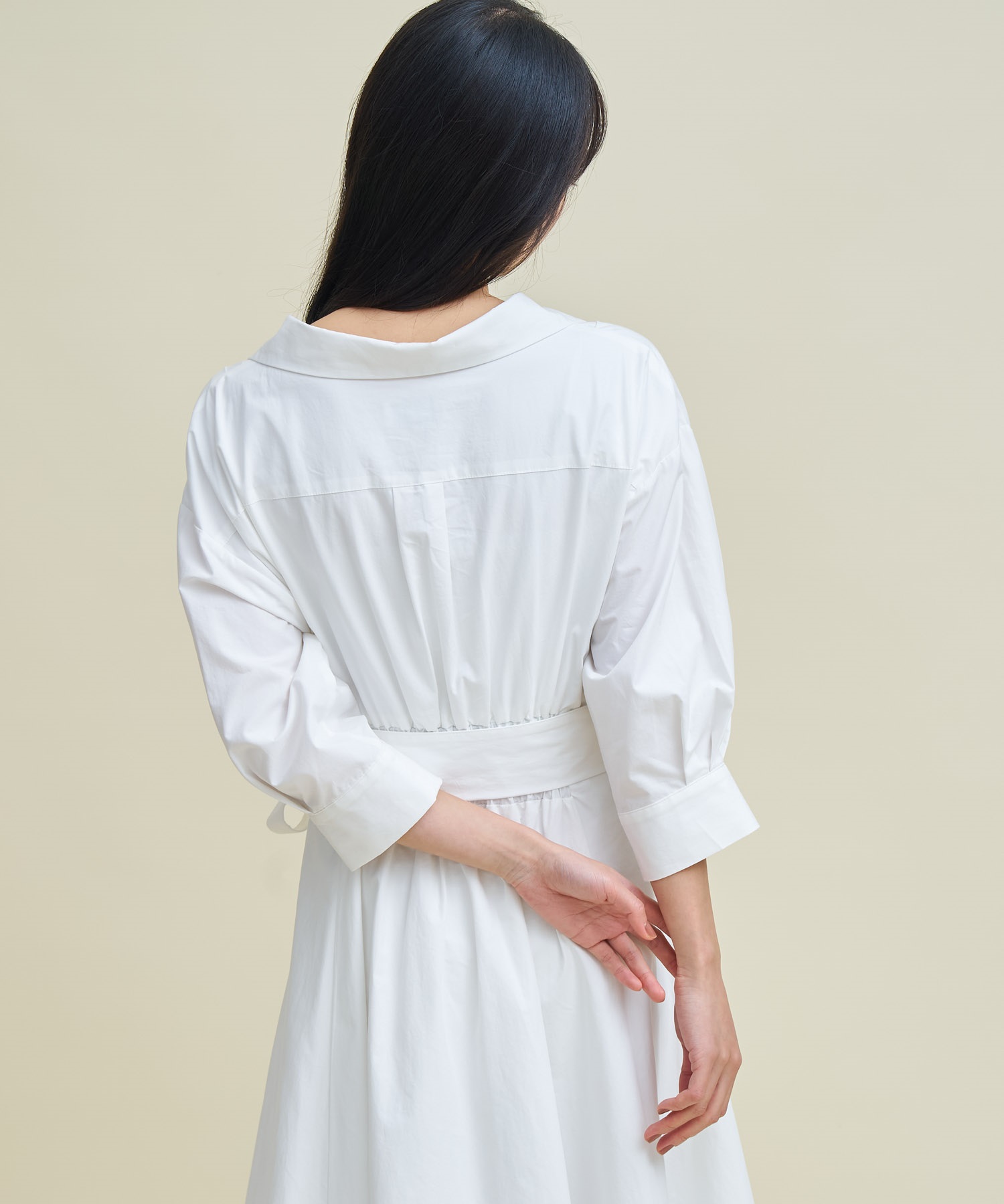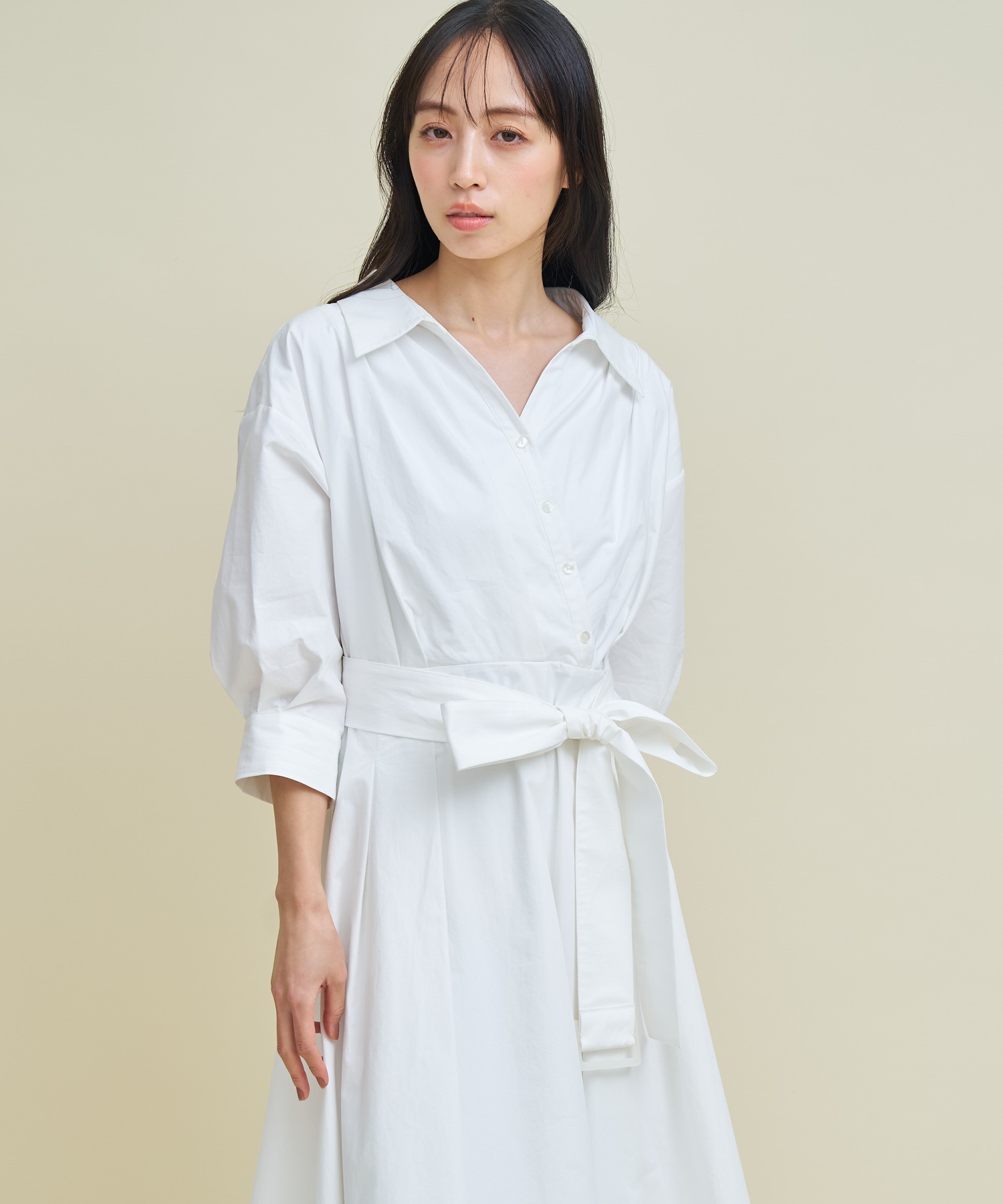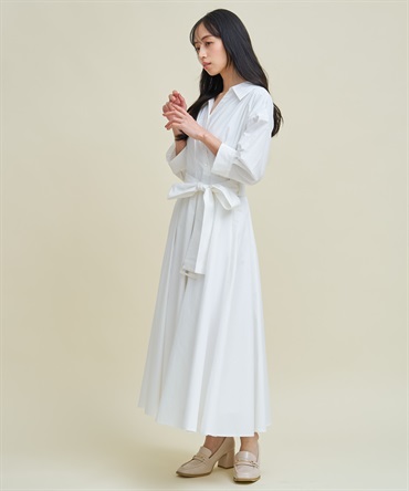 • 【予約】【SSサイズあり】カシュクールウエストリボンワンピース(01オフホワイト-SS-3月下旬ごろのお届け)