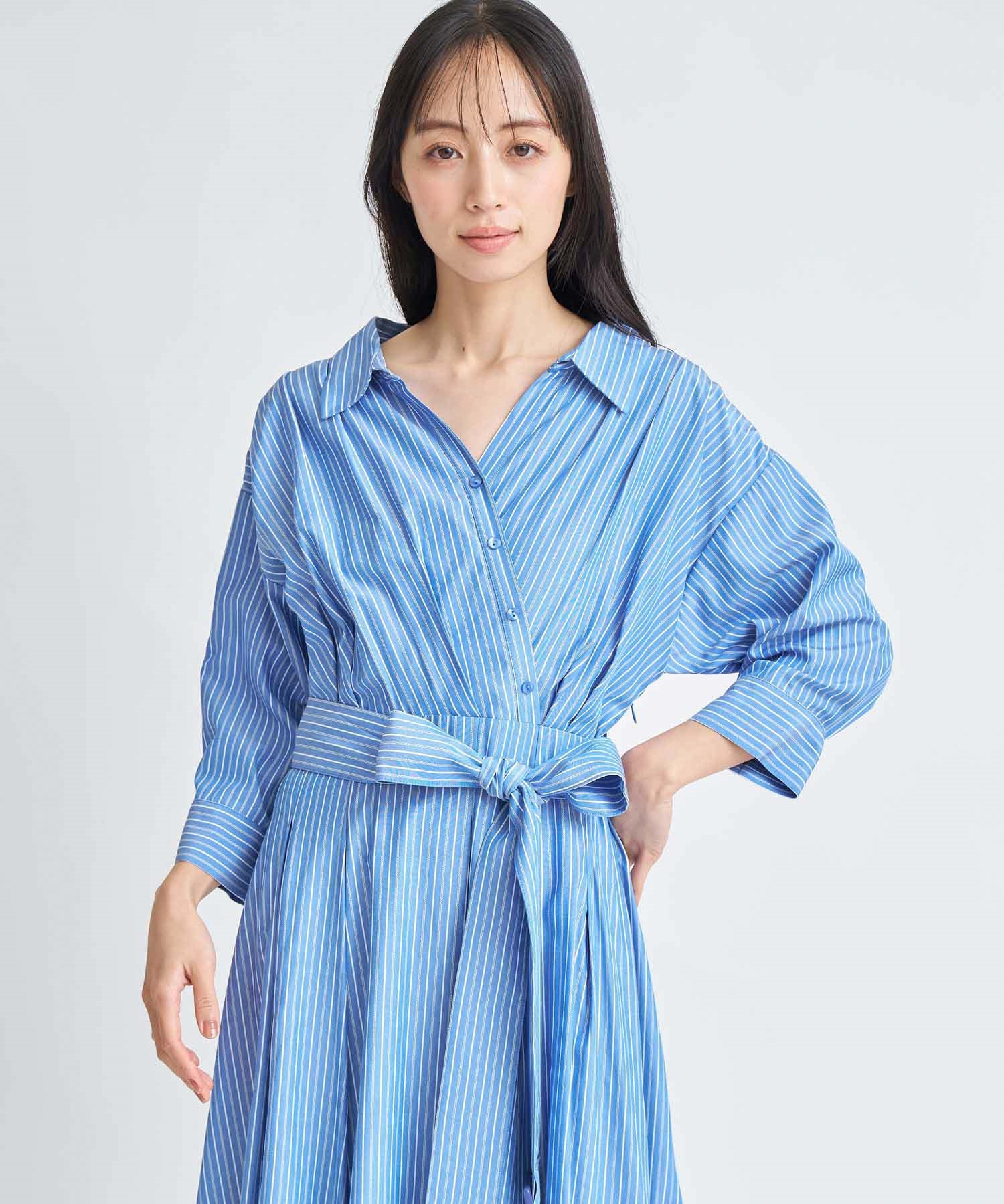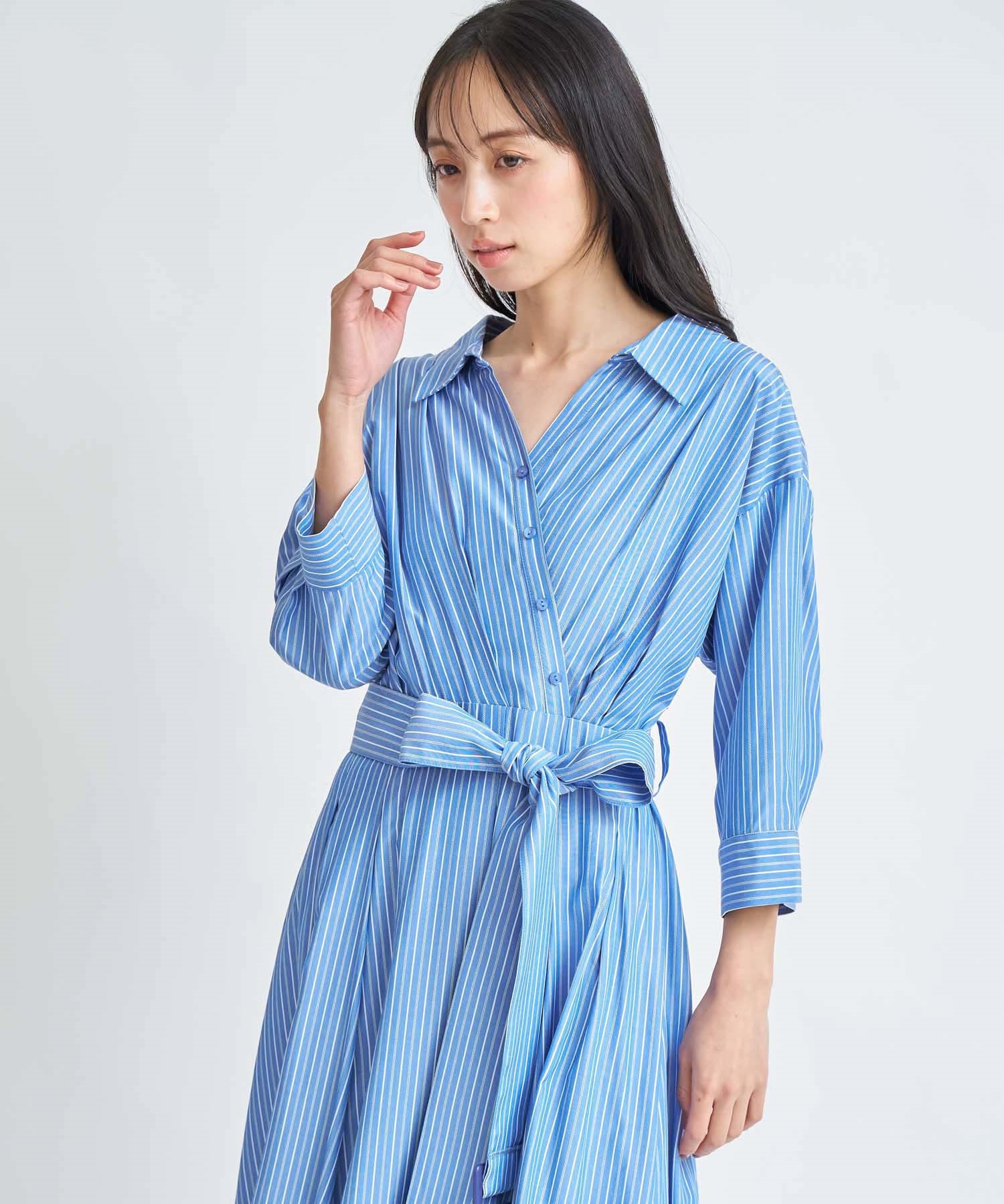 • 【予約】【SSサイズあり】カシュクールウエストリボンワンピース(71ブルー-SS-3月下旬ごろのお届け)