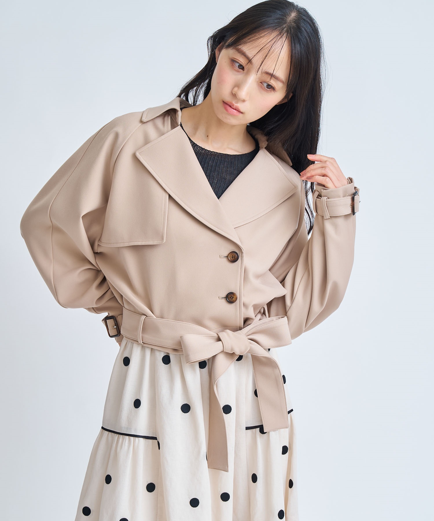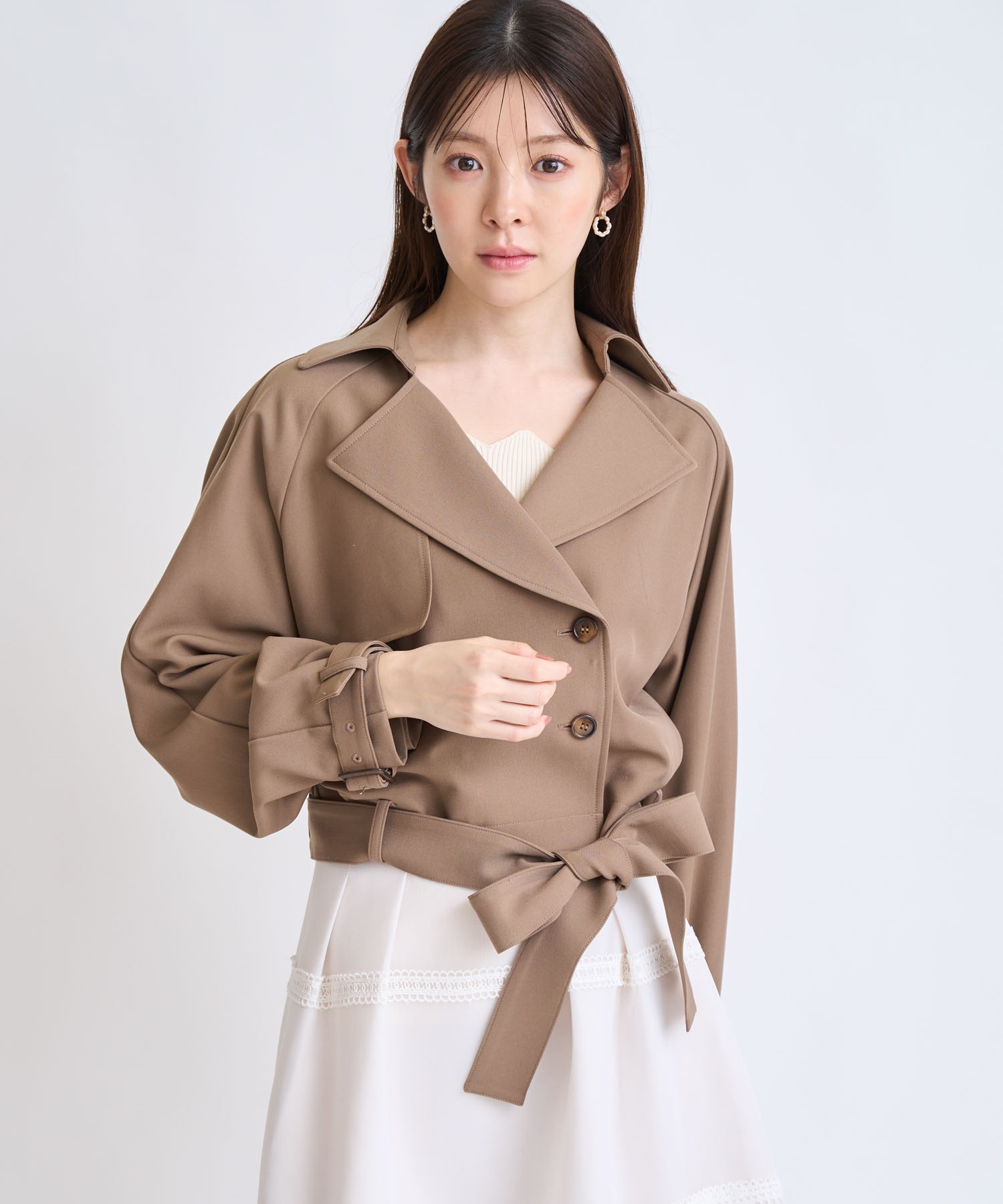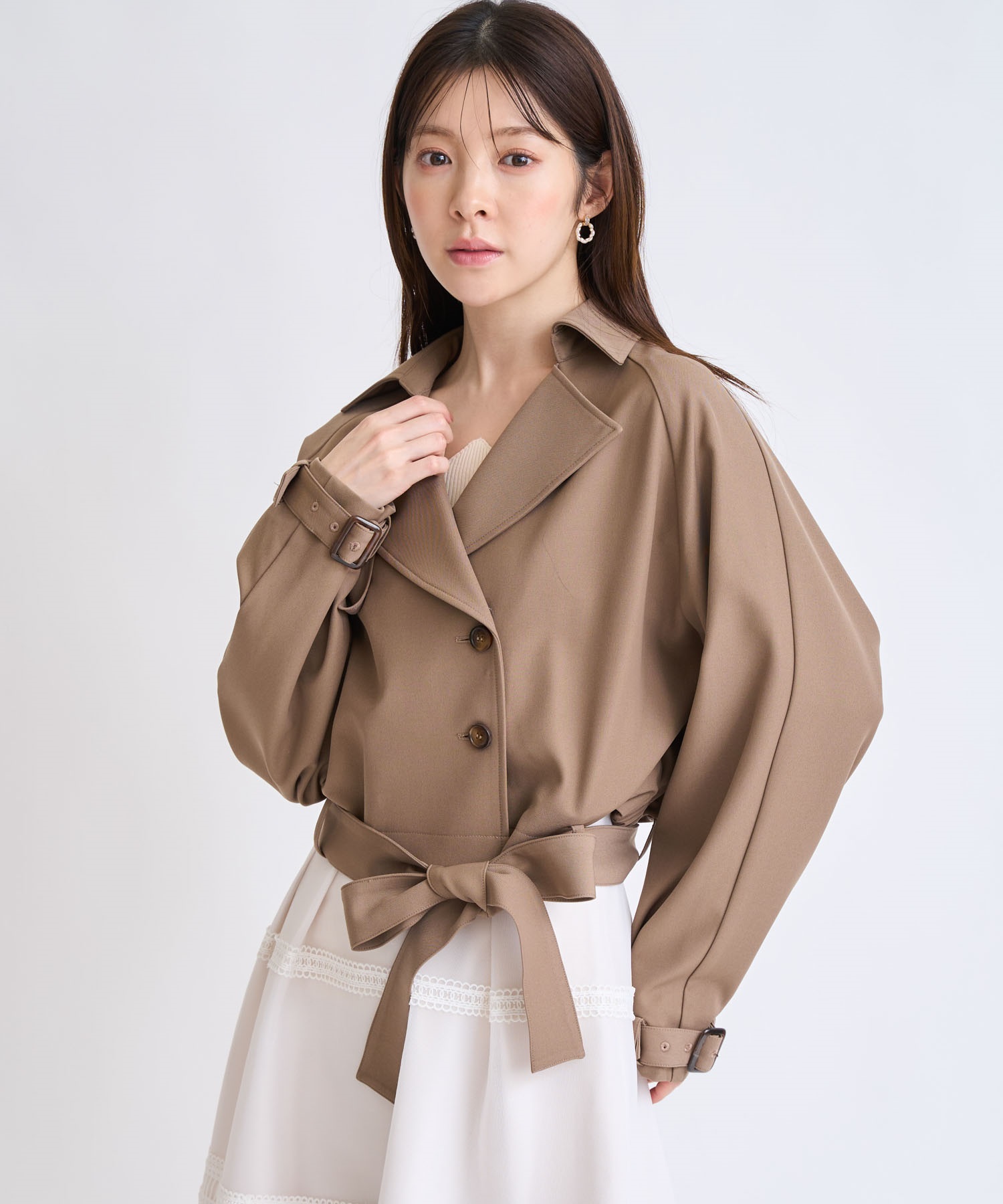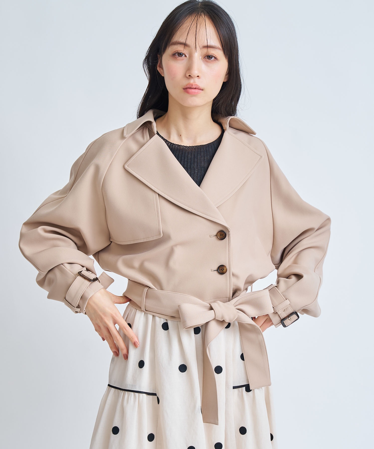 コンパクトな丈感でスタイルアップが叶う、今季主役のショートトレンチコート。