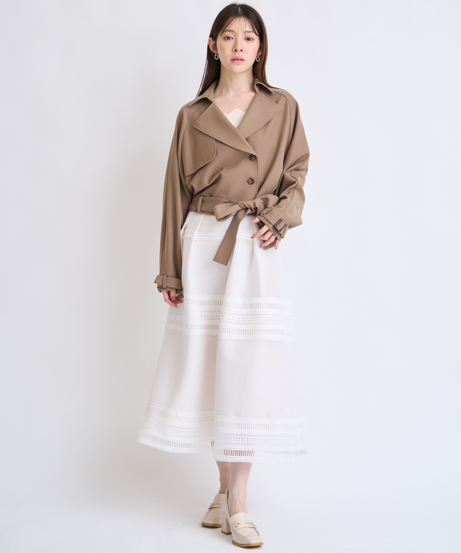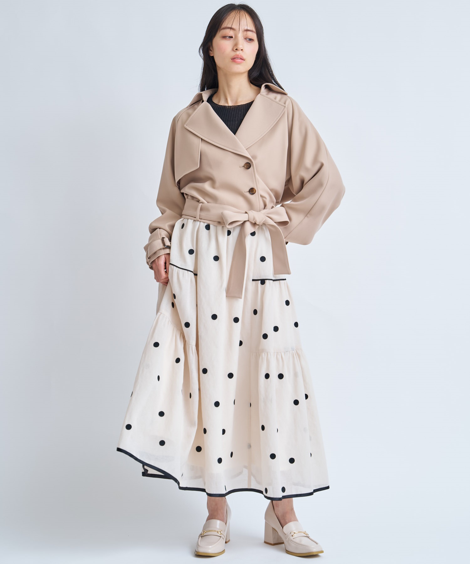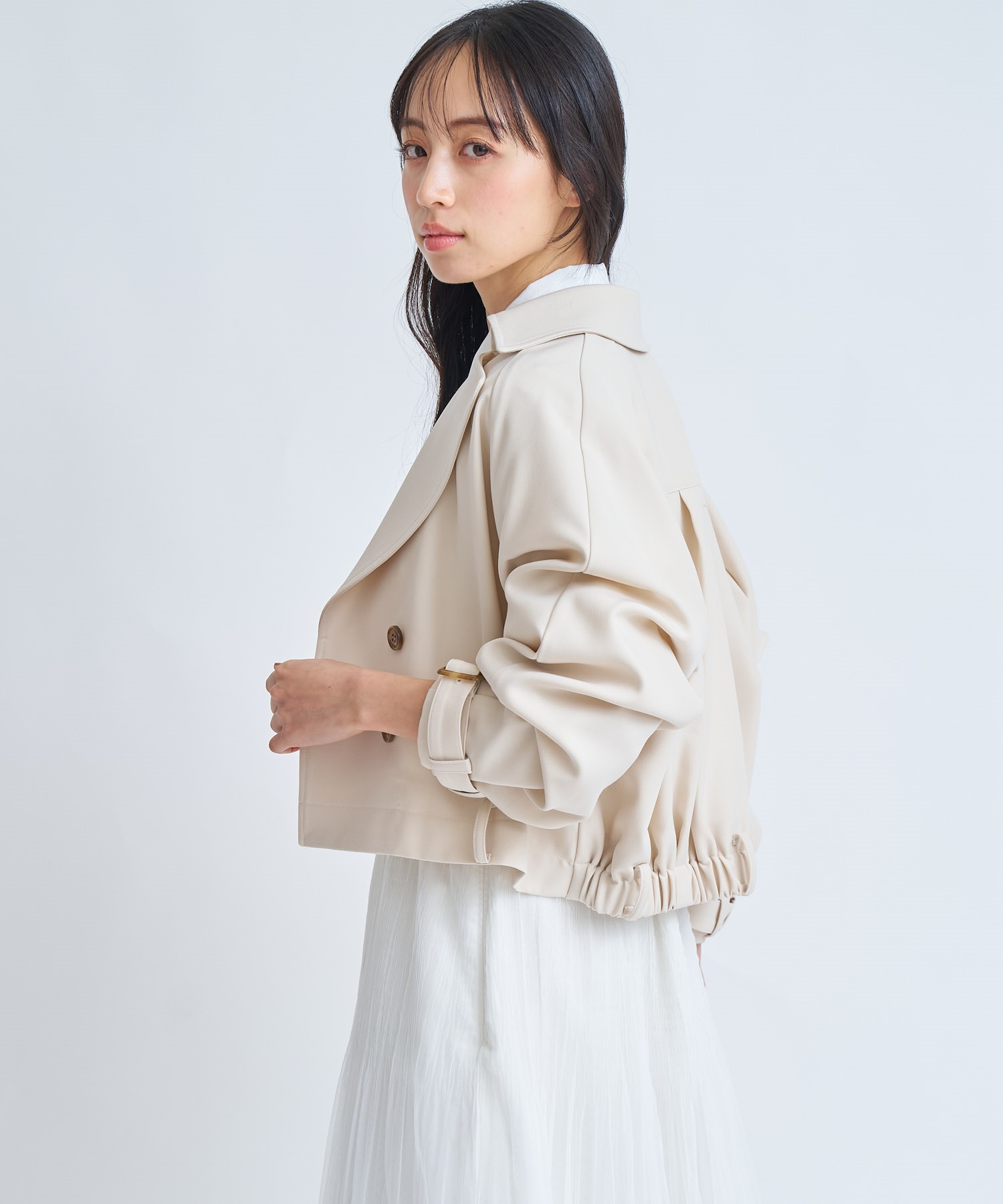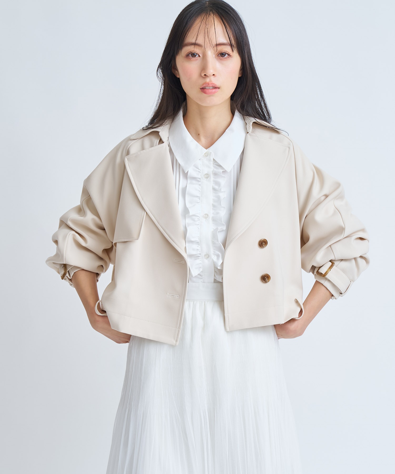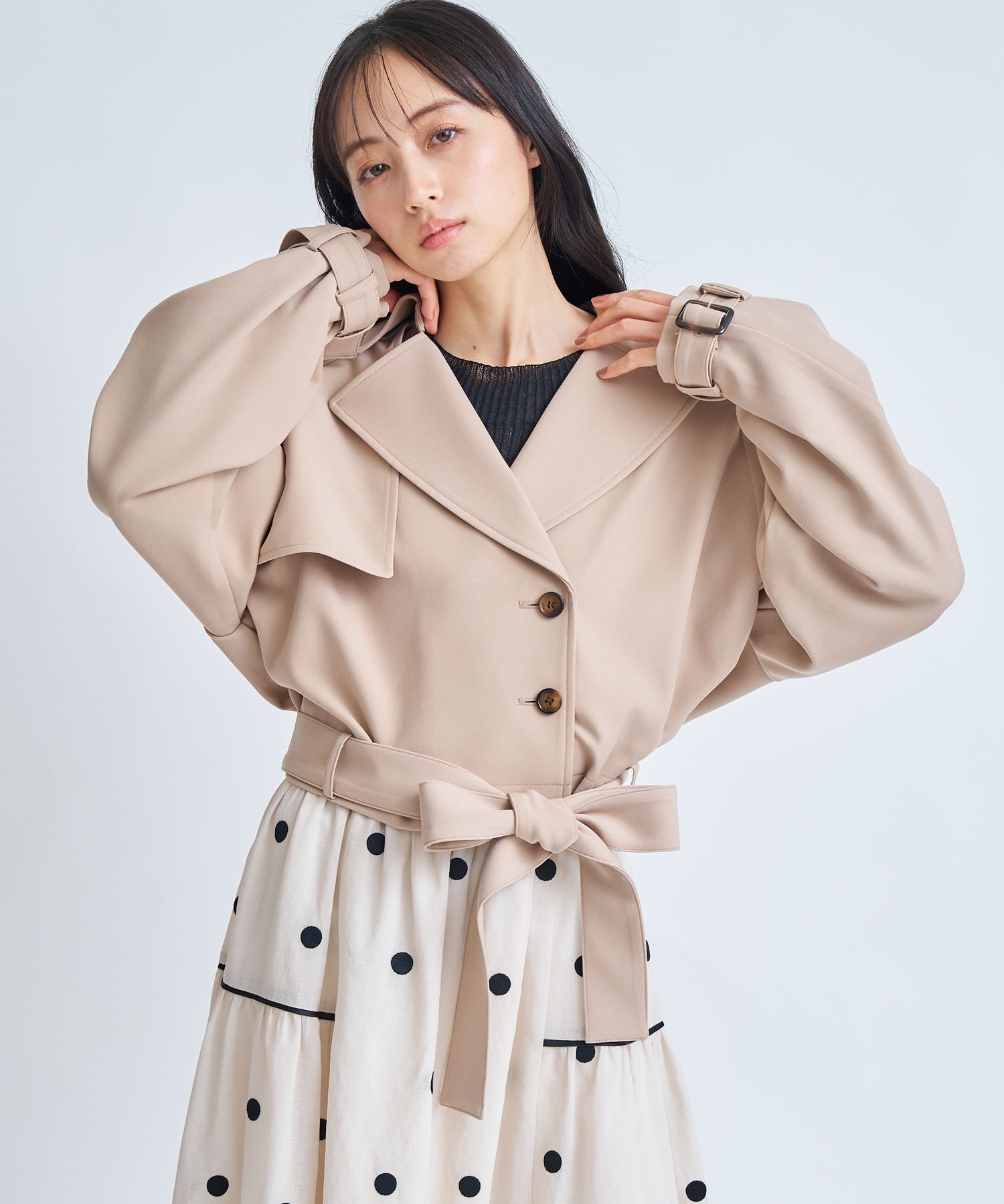 コンパクトな丈感でスタイルアップが叶う、今季主役のショートトレンチコート。