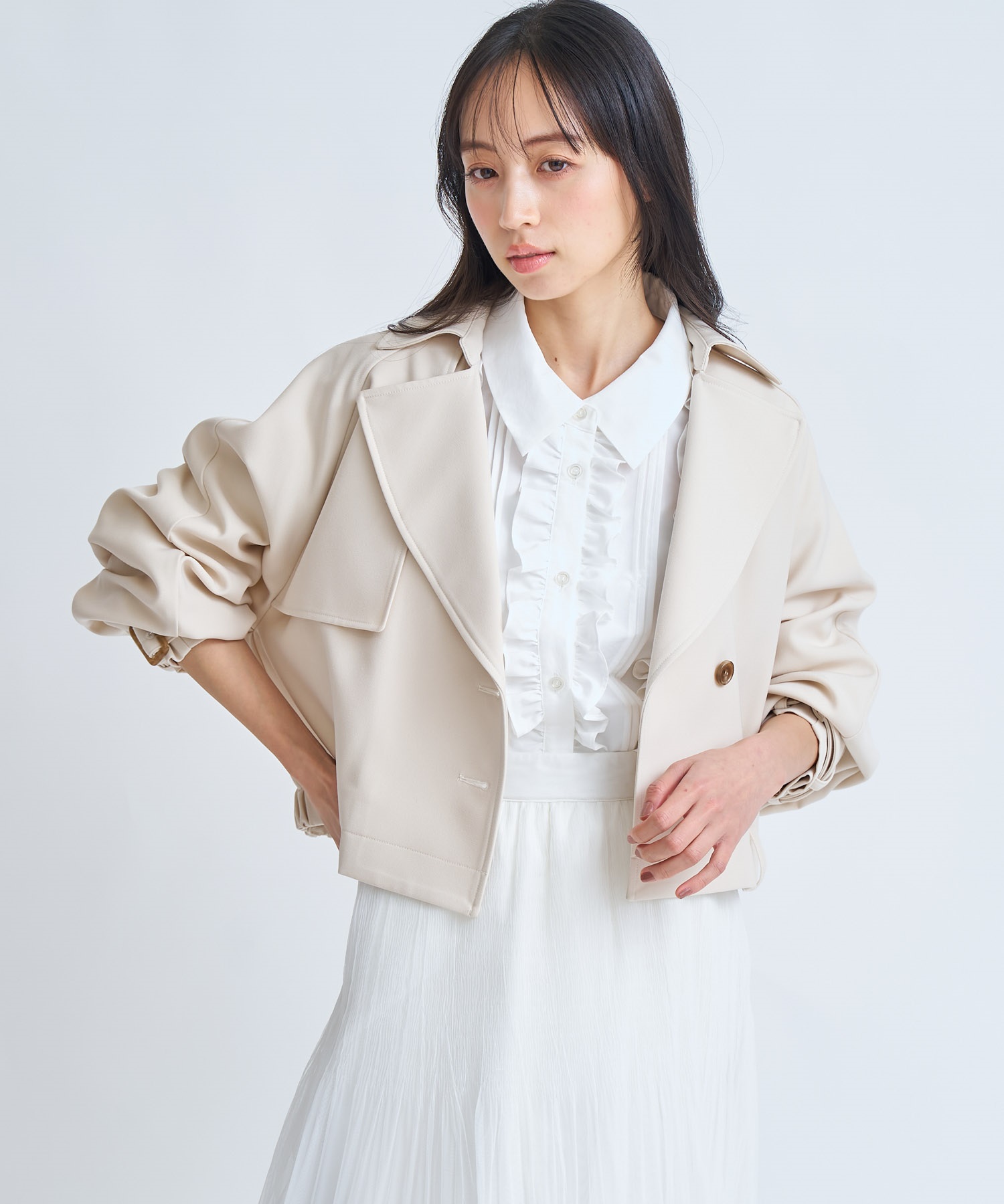 • 【予約】ラグランショートトレンチ(01オフホワイト-S-2月下旬ごろのお届け)