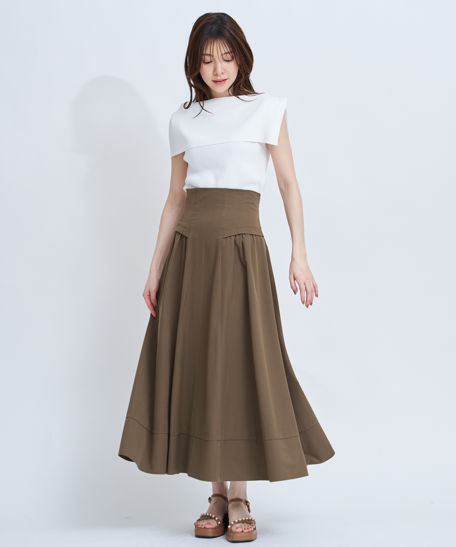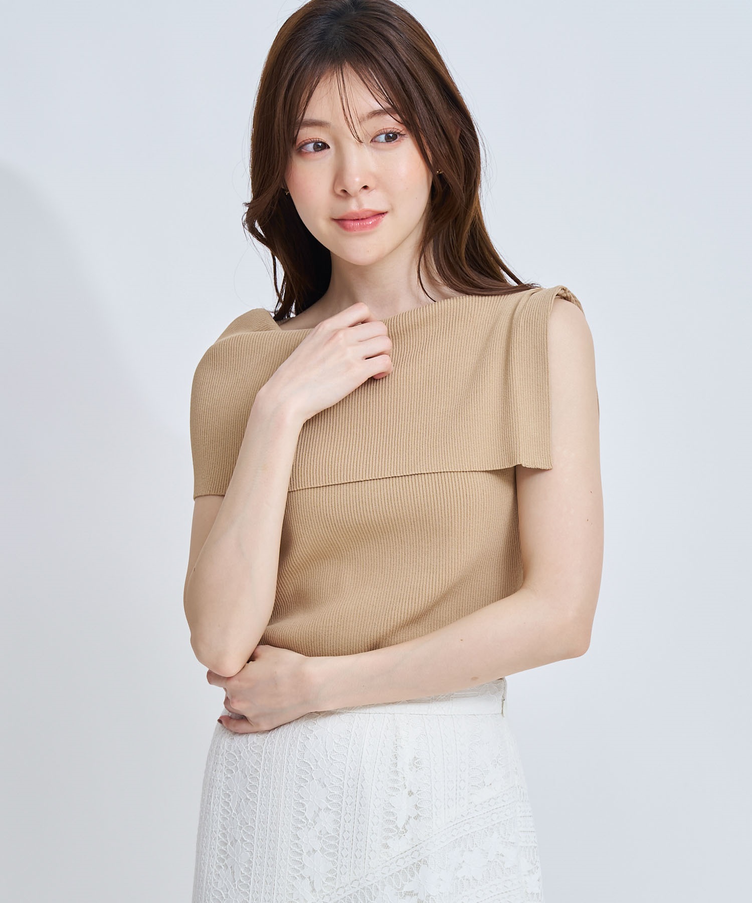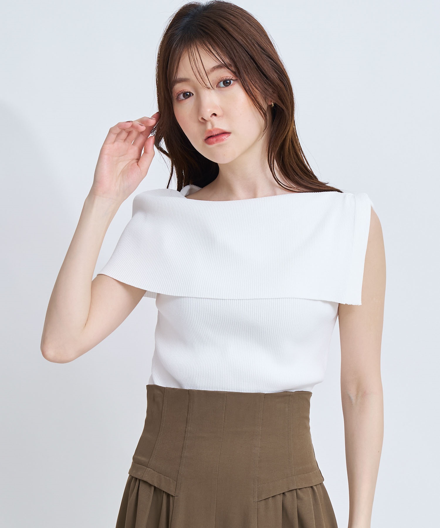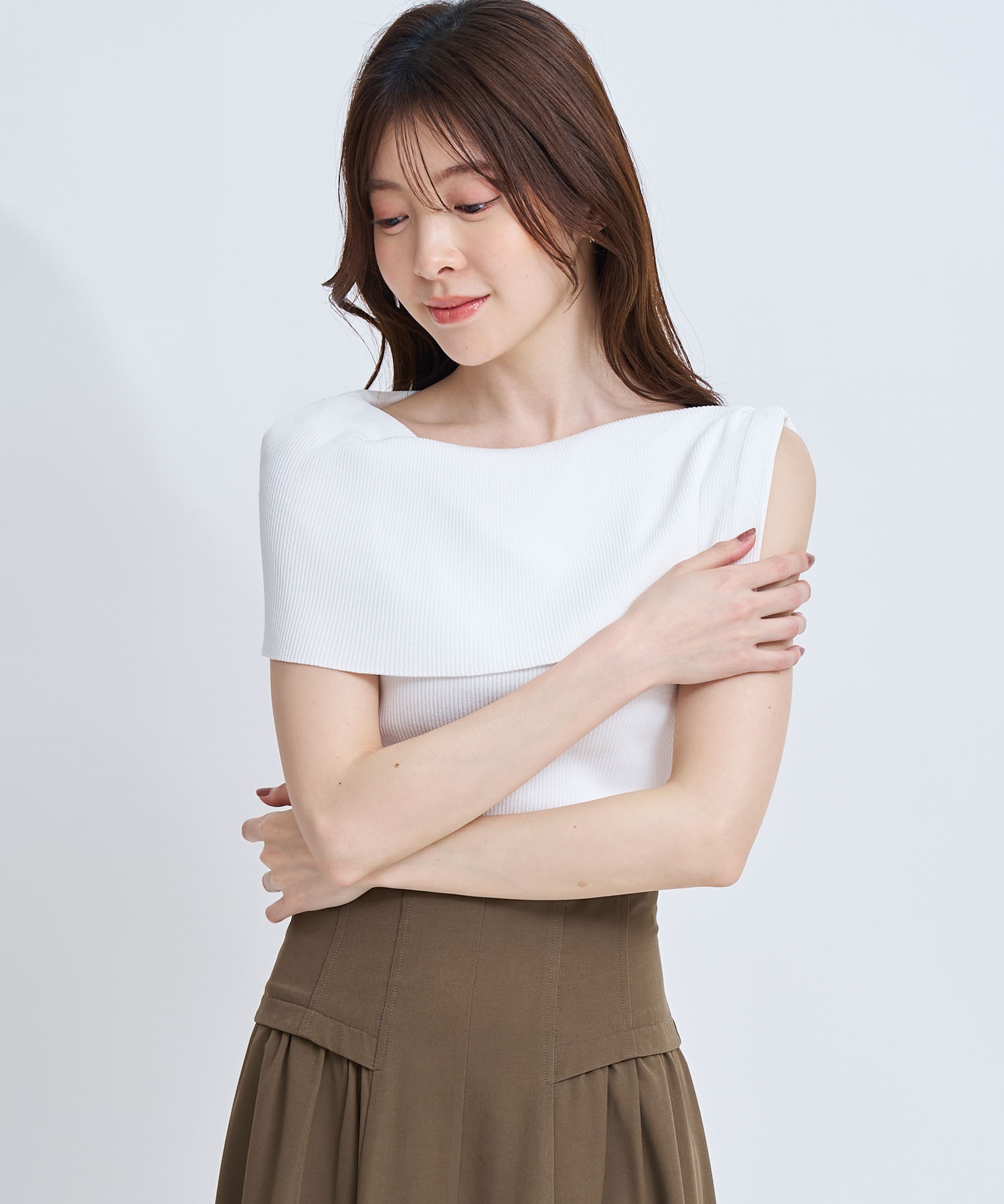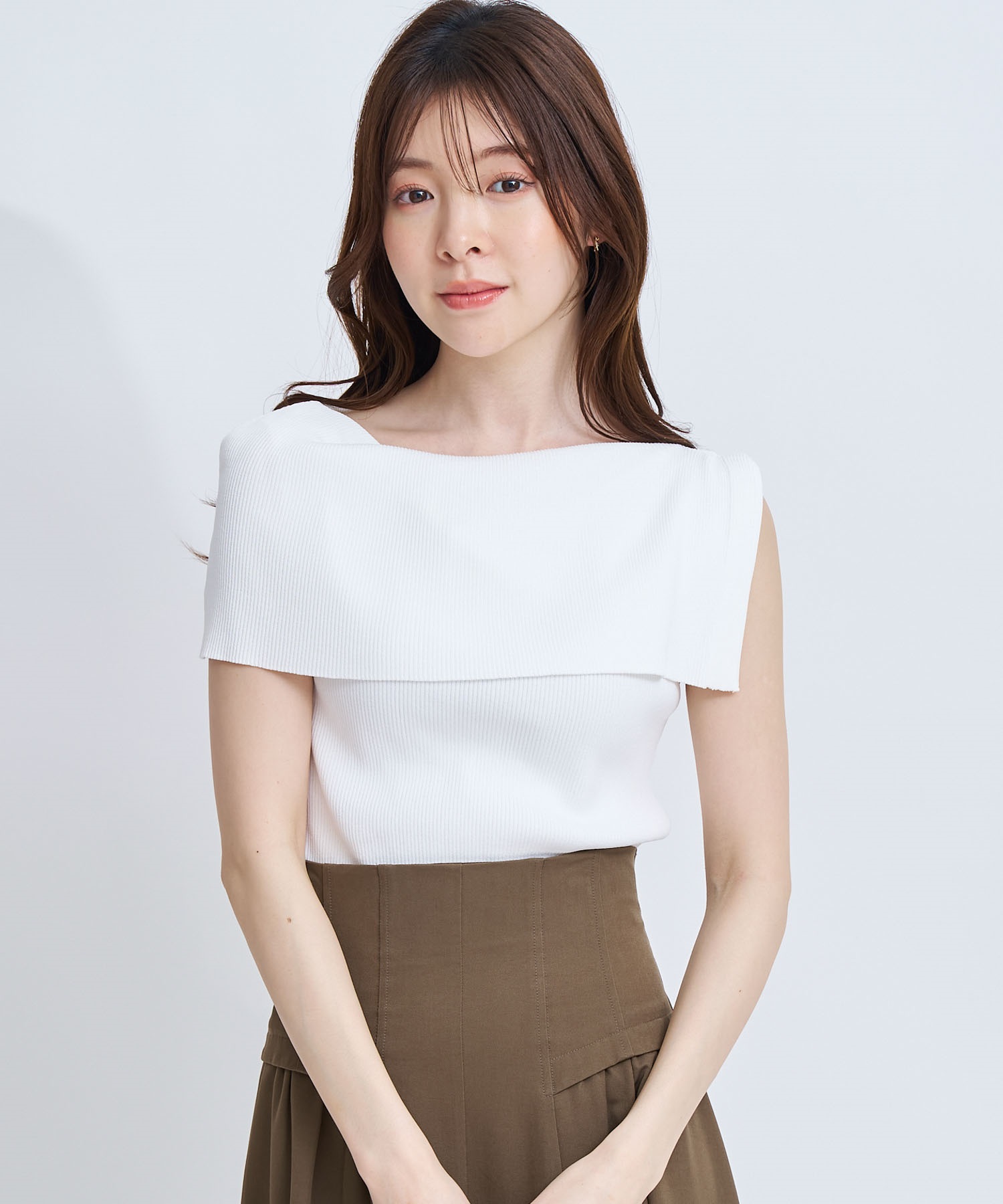 • 【予約】2WAYドレープノースリリブニット(01オフホワイト-フリー-4月下旬ごろのお届け)