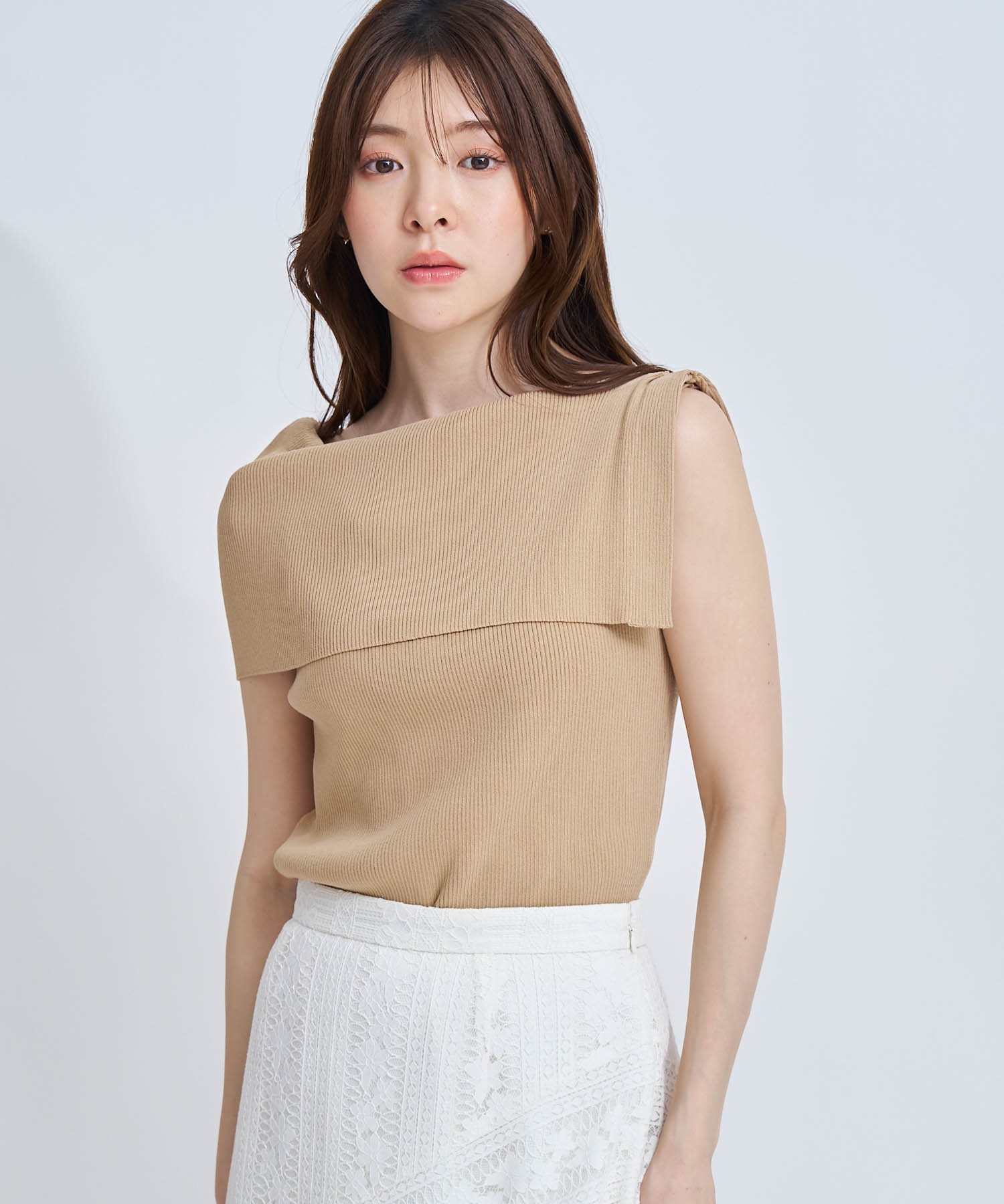 • 【予約】2WAYドレープノースリリブニット(83キャメル-フリー-4月下旬ごろのお届け)