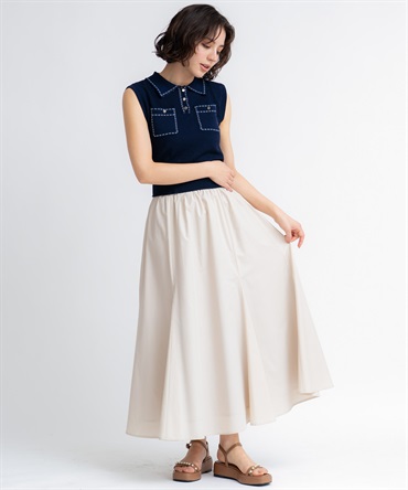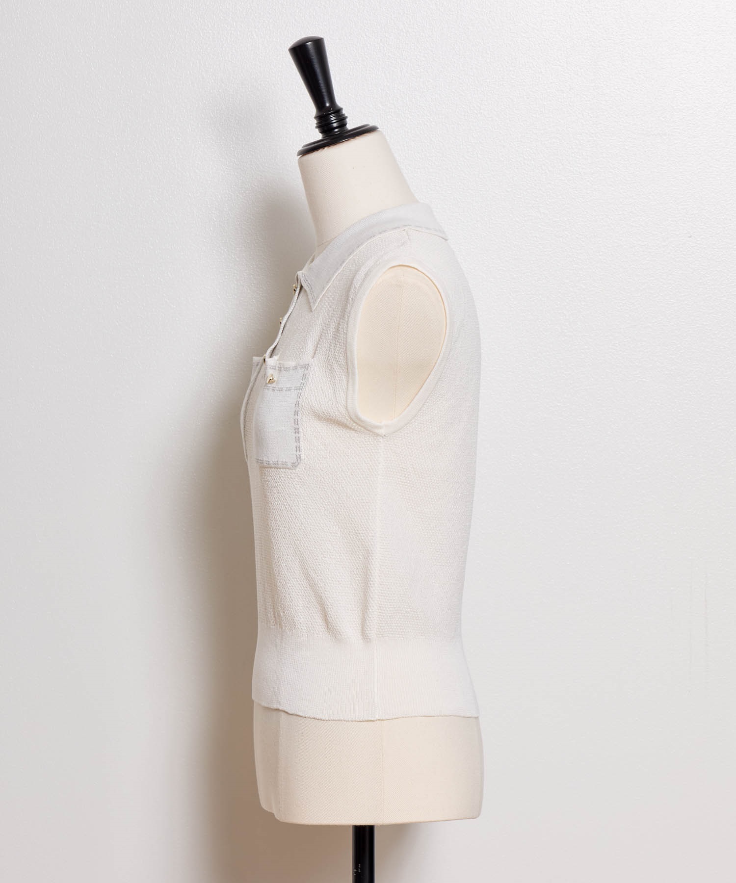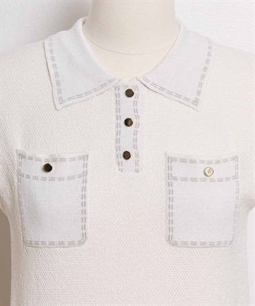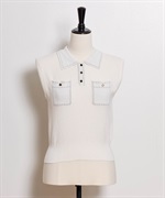 • 【予約】鹿の子編みステッチノースリポロニット(01オフホワイト-フリー-5月下旬ごろのお届け)
