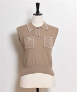 • 【予約】鹿の子編みステッチノースリポロニット(85モカ-フリー-5月下旬ごろのお届け)