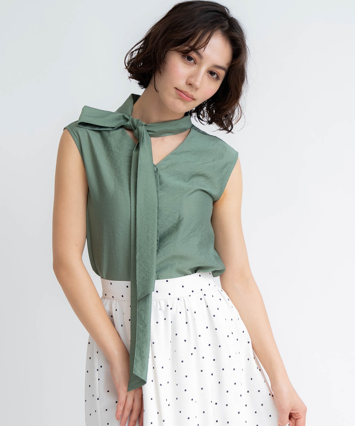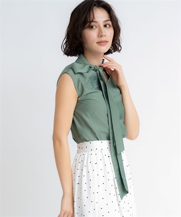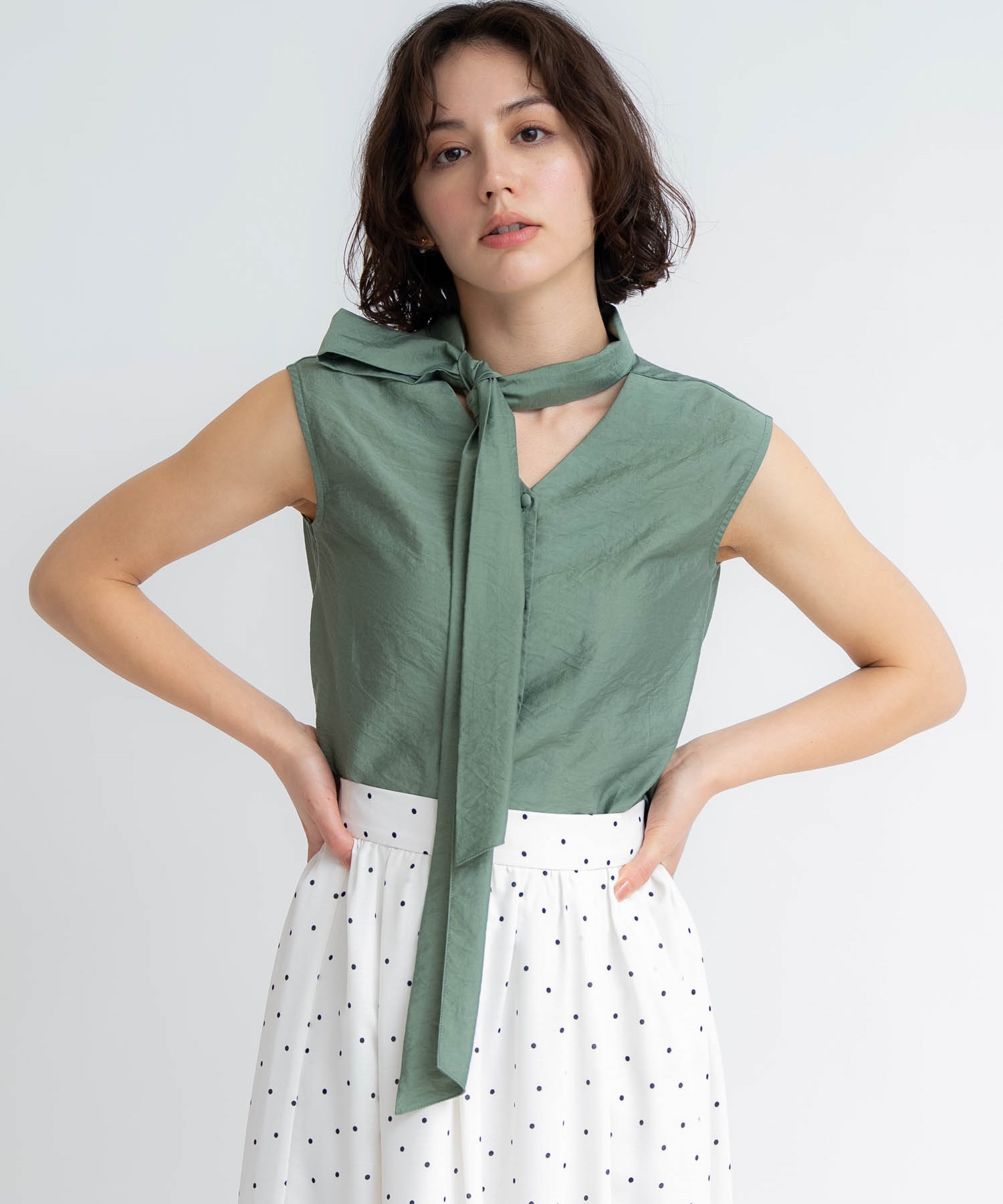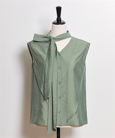 • 【予約】2WAYリボンシアーノースリブラウス(61グリーン-フリー-5月下旬ごろのお届け)