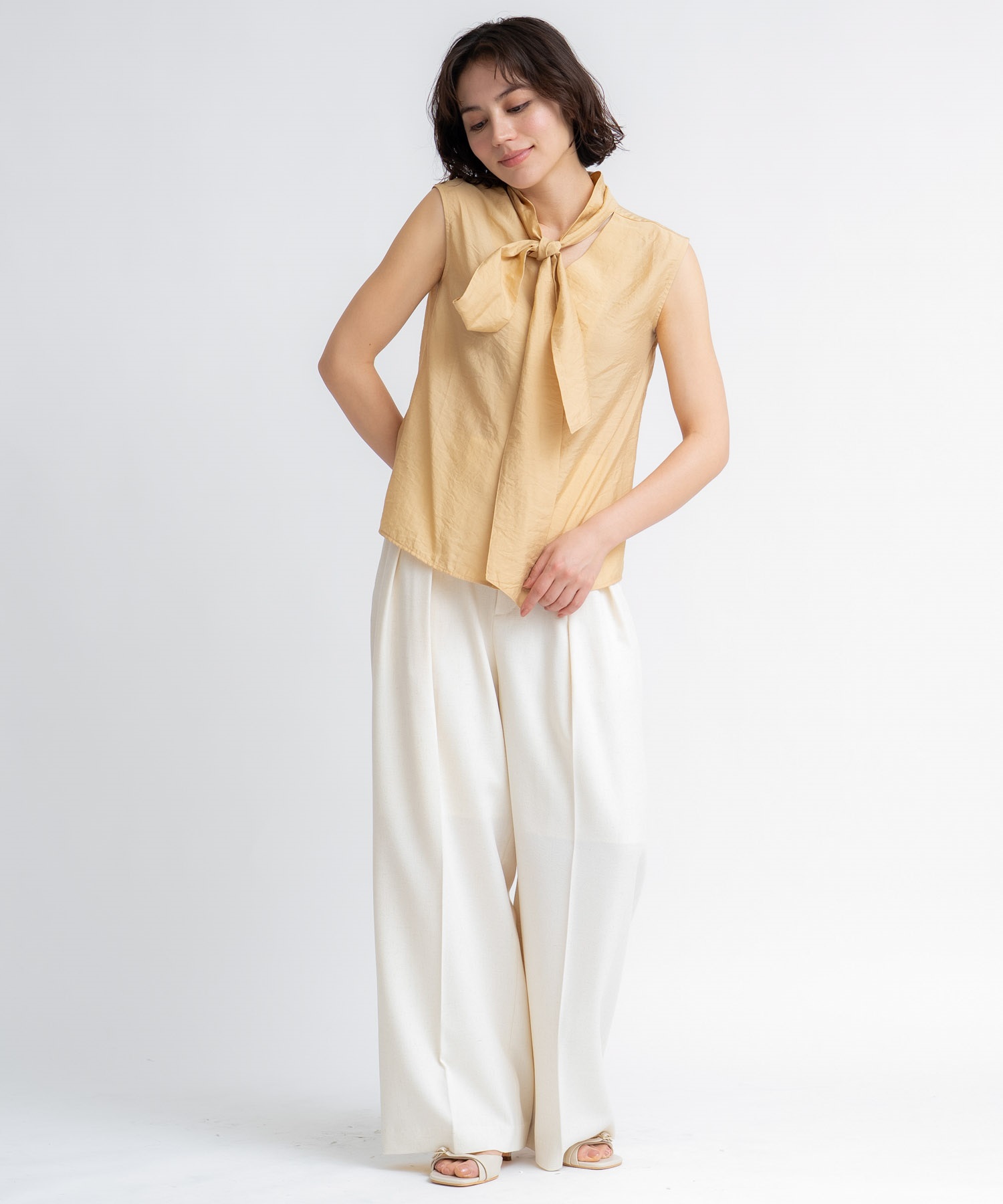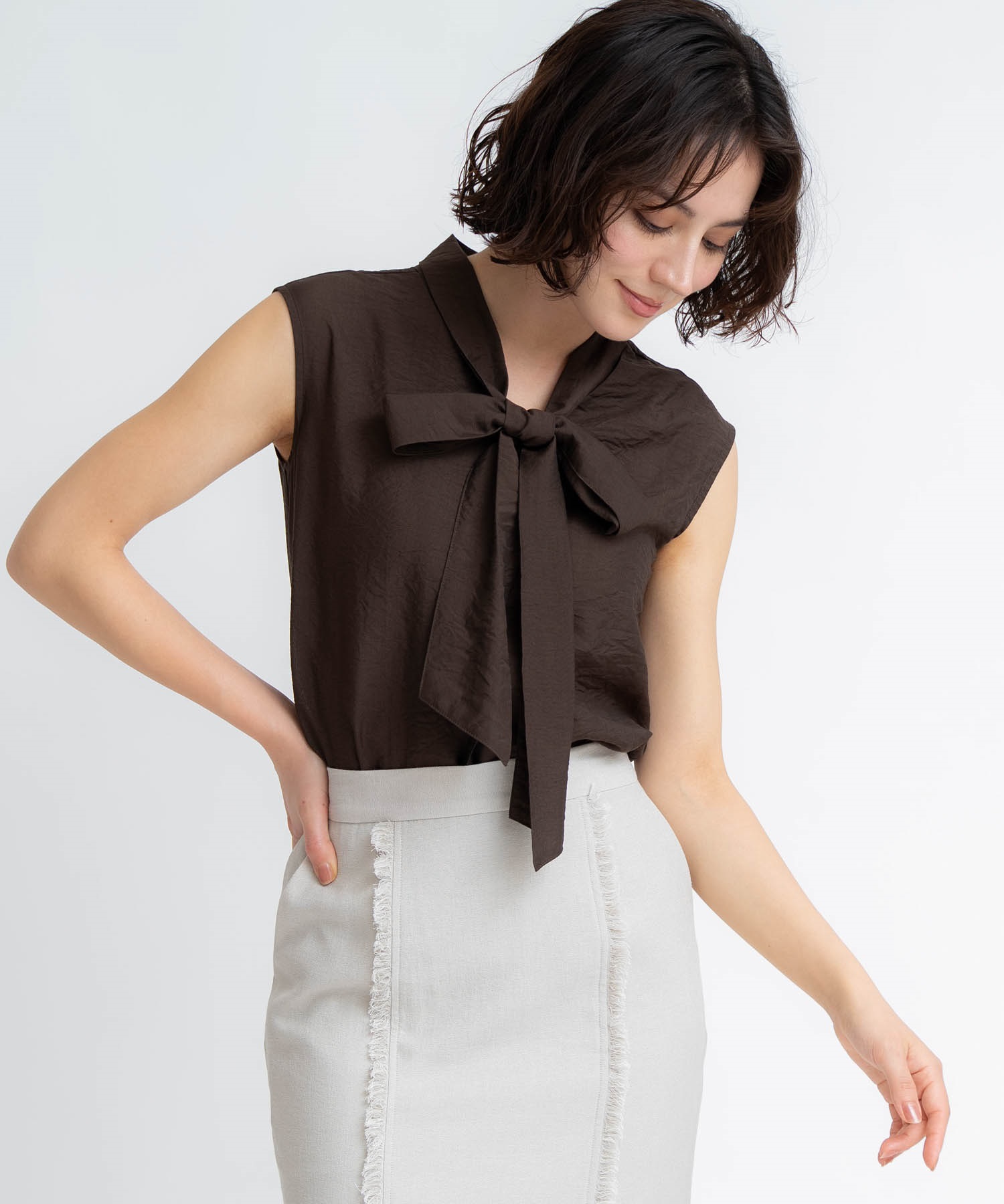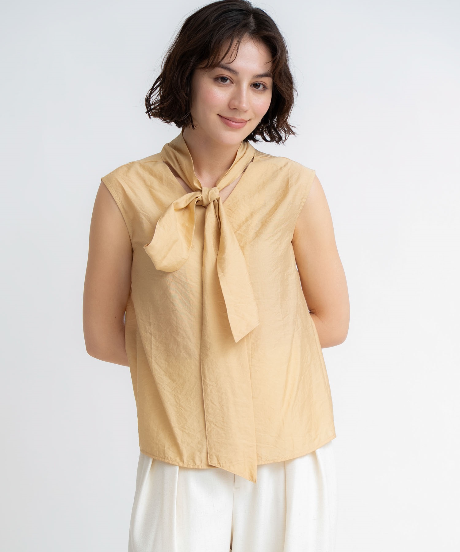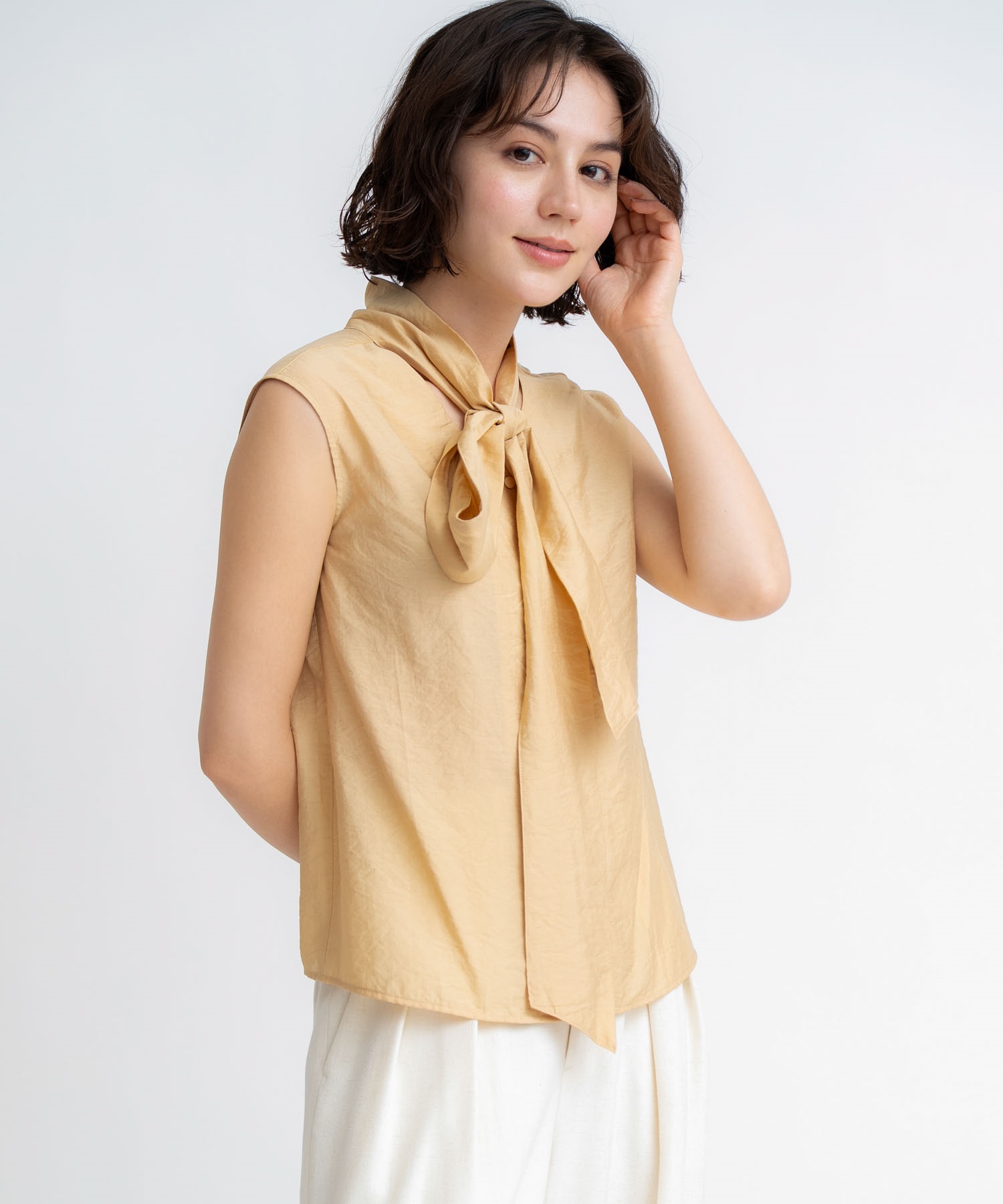 • 【予約】2WAYリボンシアーノースリブラウス(82ベージュ-フリー-5月下旬ごろのお届け)