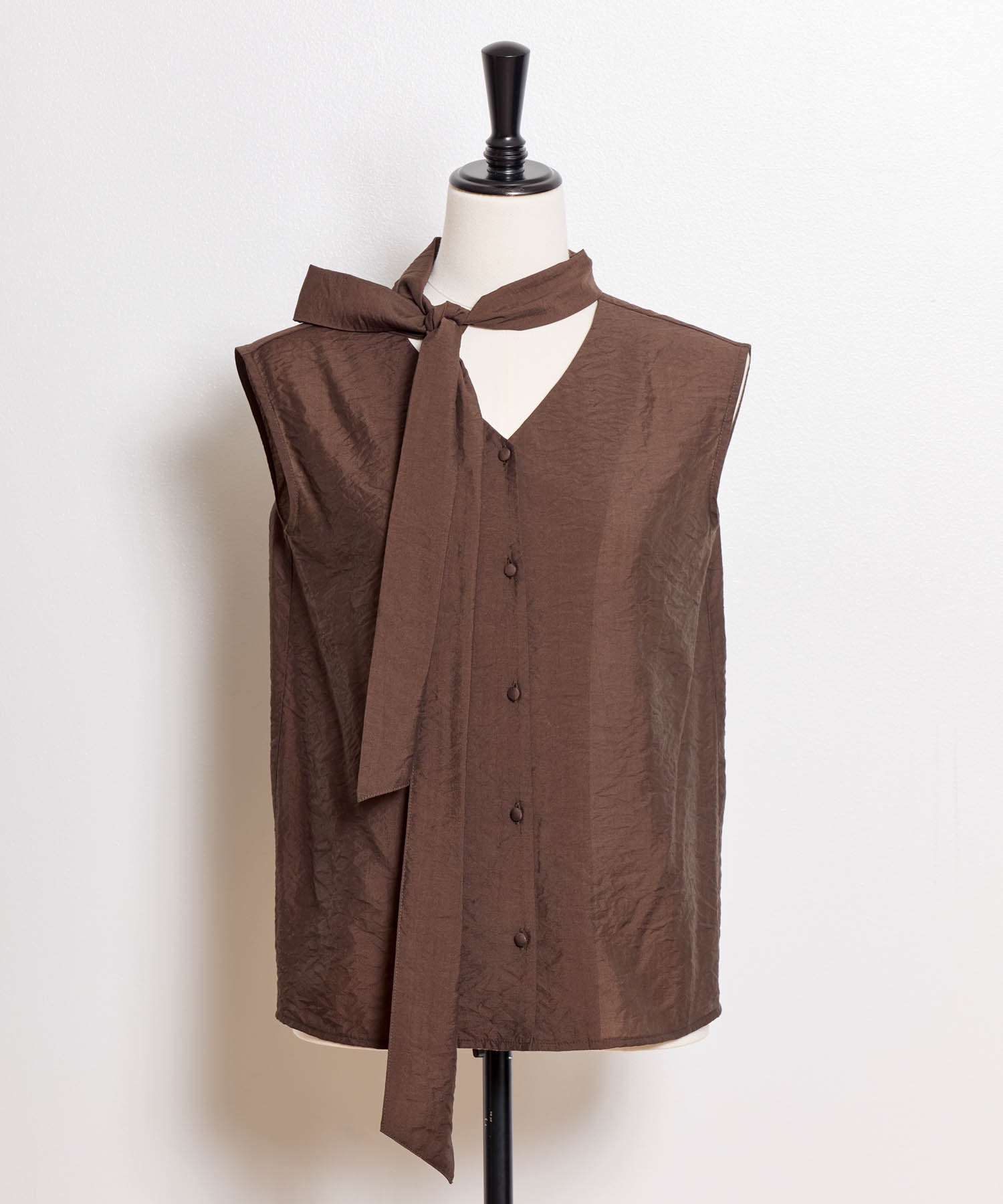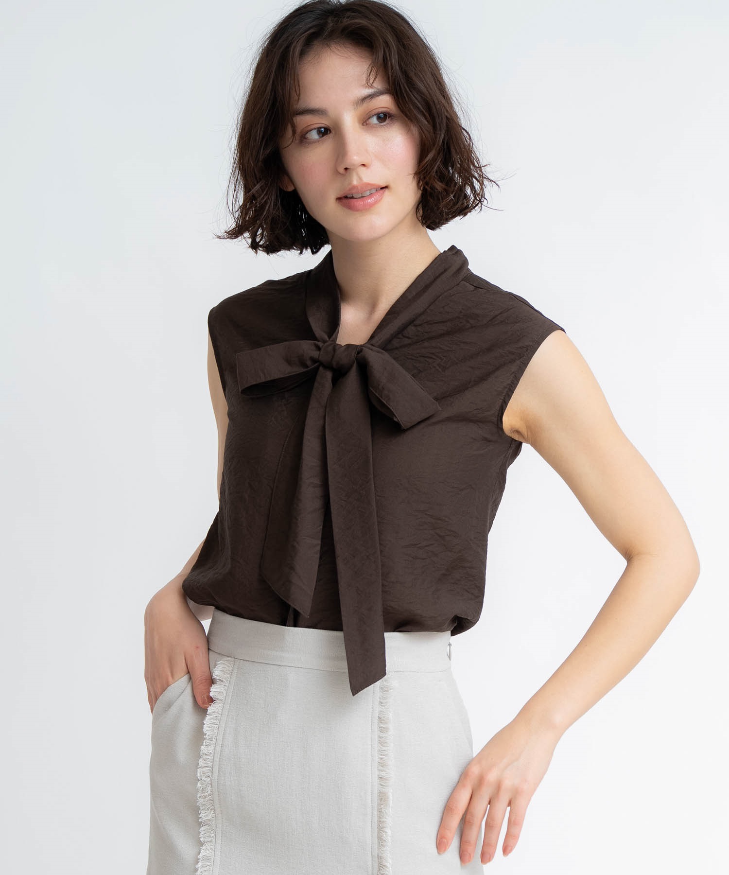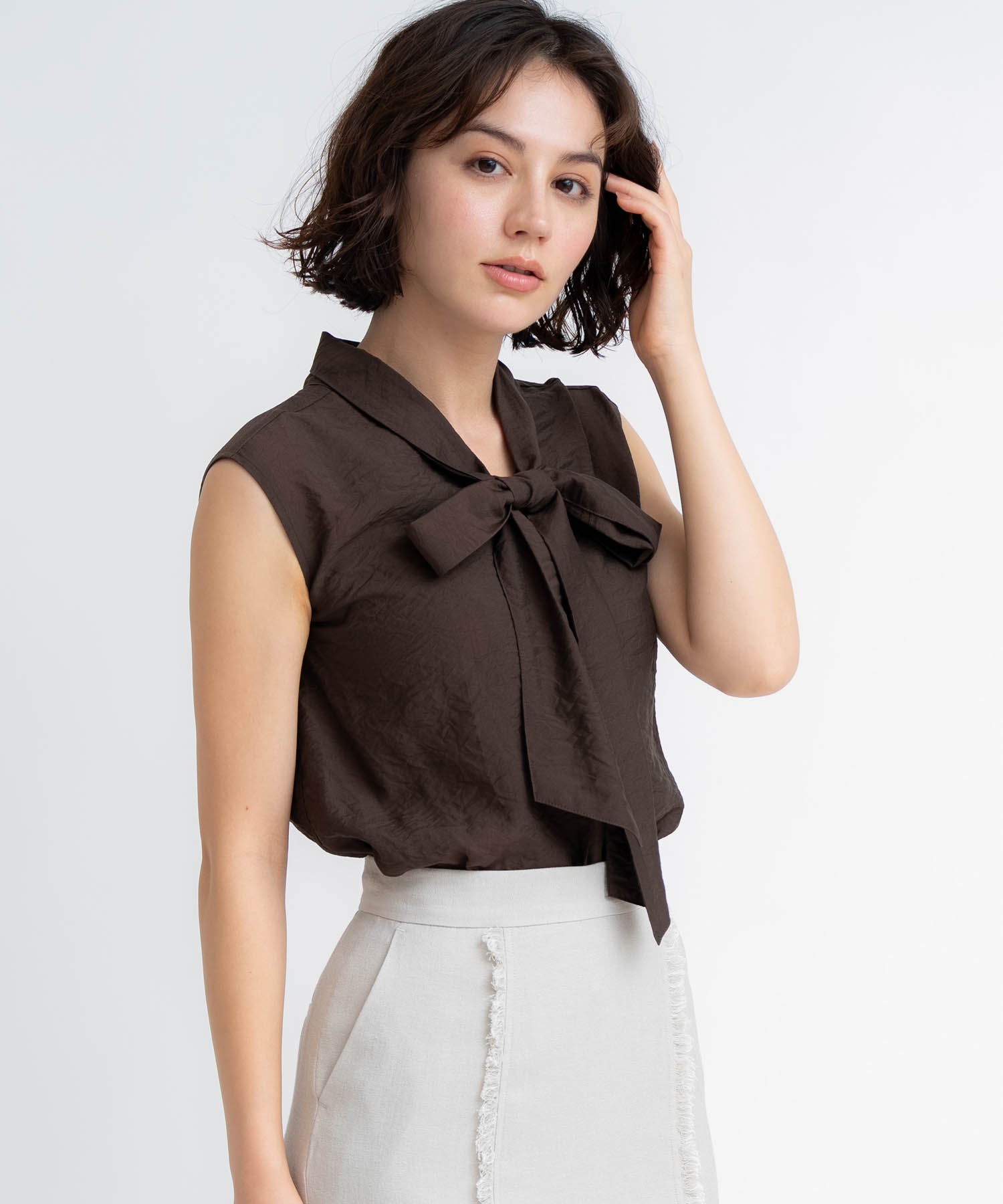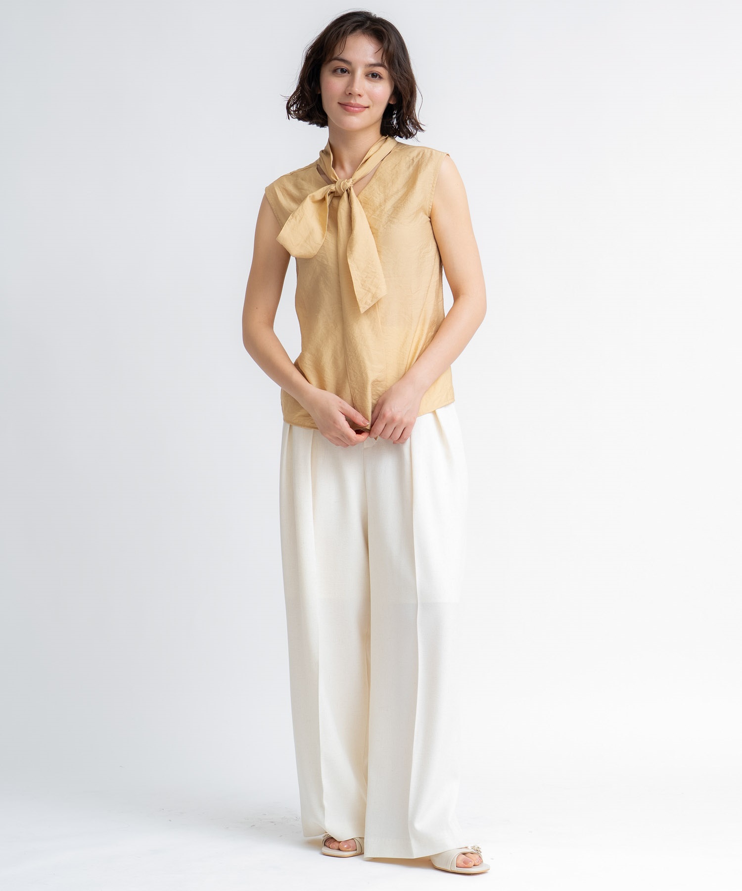 • 【予約】2WAYリボンシアーノースリブラウス(82ベージュ-フリー-5月下旬ごろのお届け)