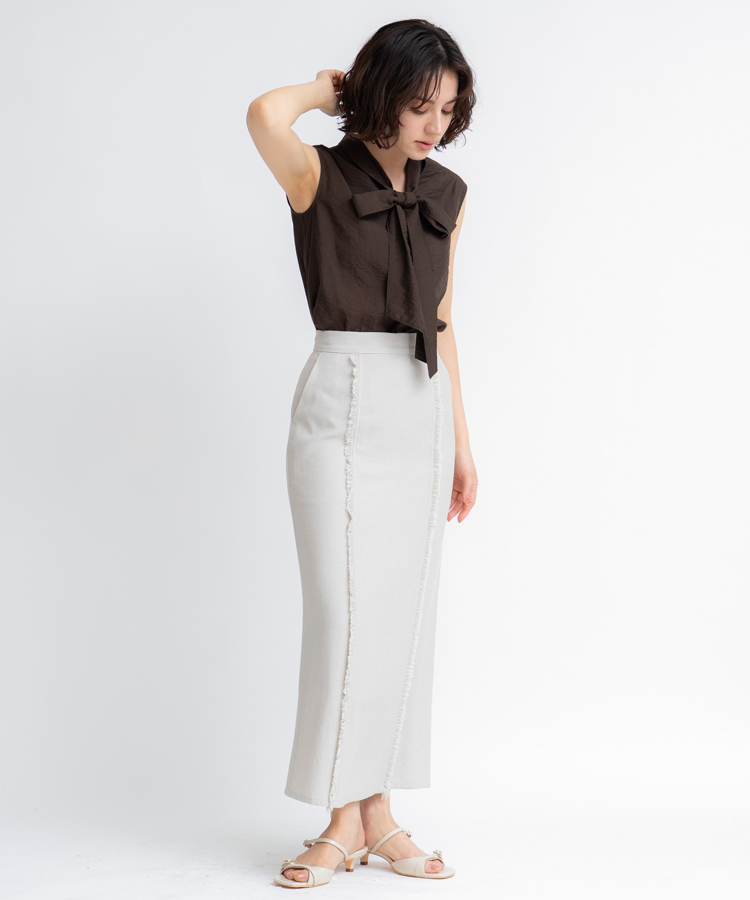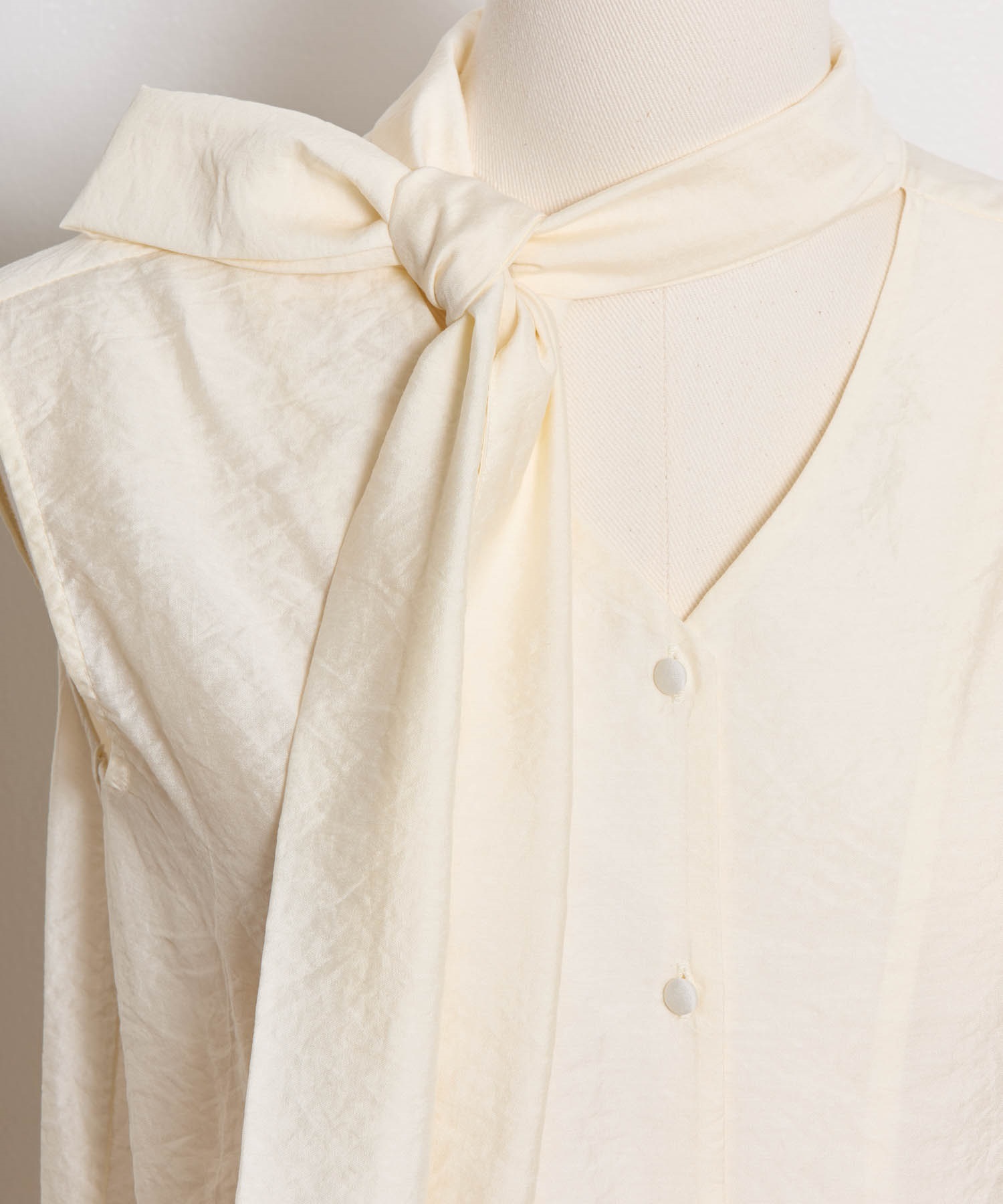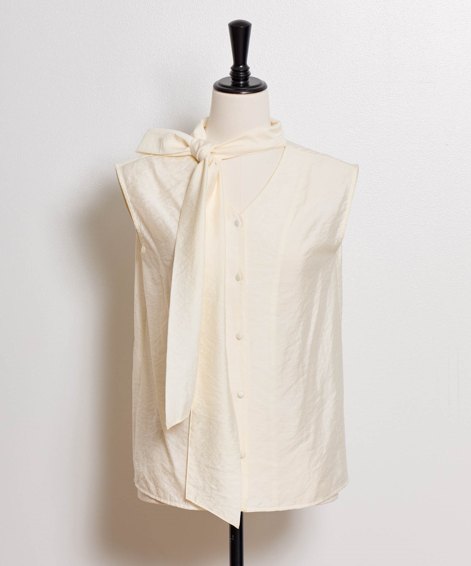 • 【予約】2WAYリボンシアーノースリブラウス(01オフホワイト-フリー-5月下旬ごろのお届け)