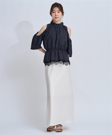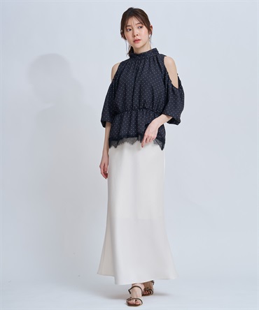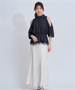 ニット合わせはもちろん、ショルダーカットフリルブラウスなど裾フレアのトップスとも好相性な1枚です。
