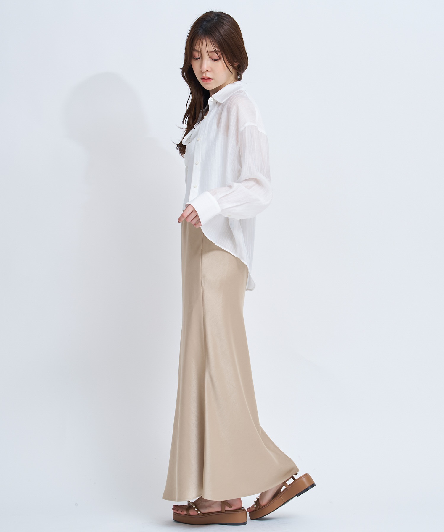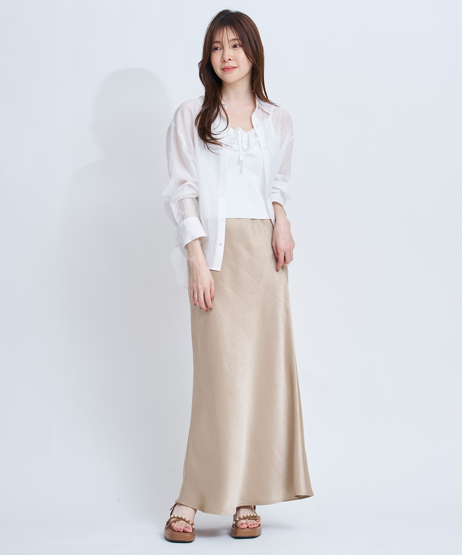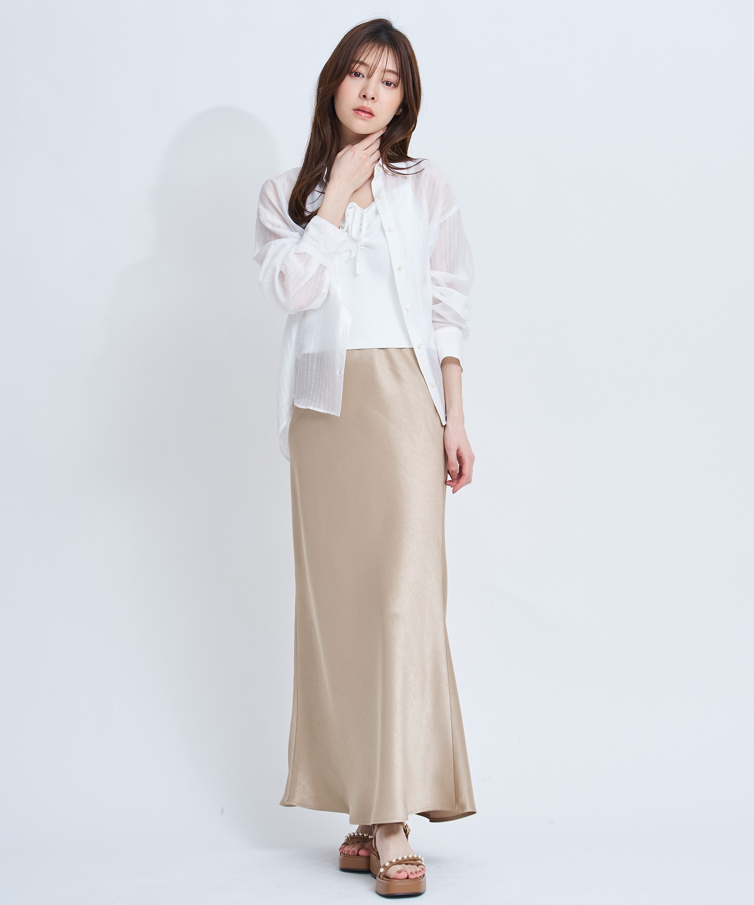 • 【予約】サテンナロースカート(82ベージュ-S-4月下旬ごろのお届け)