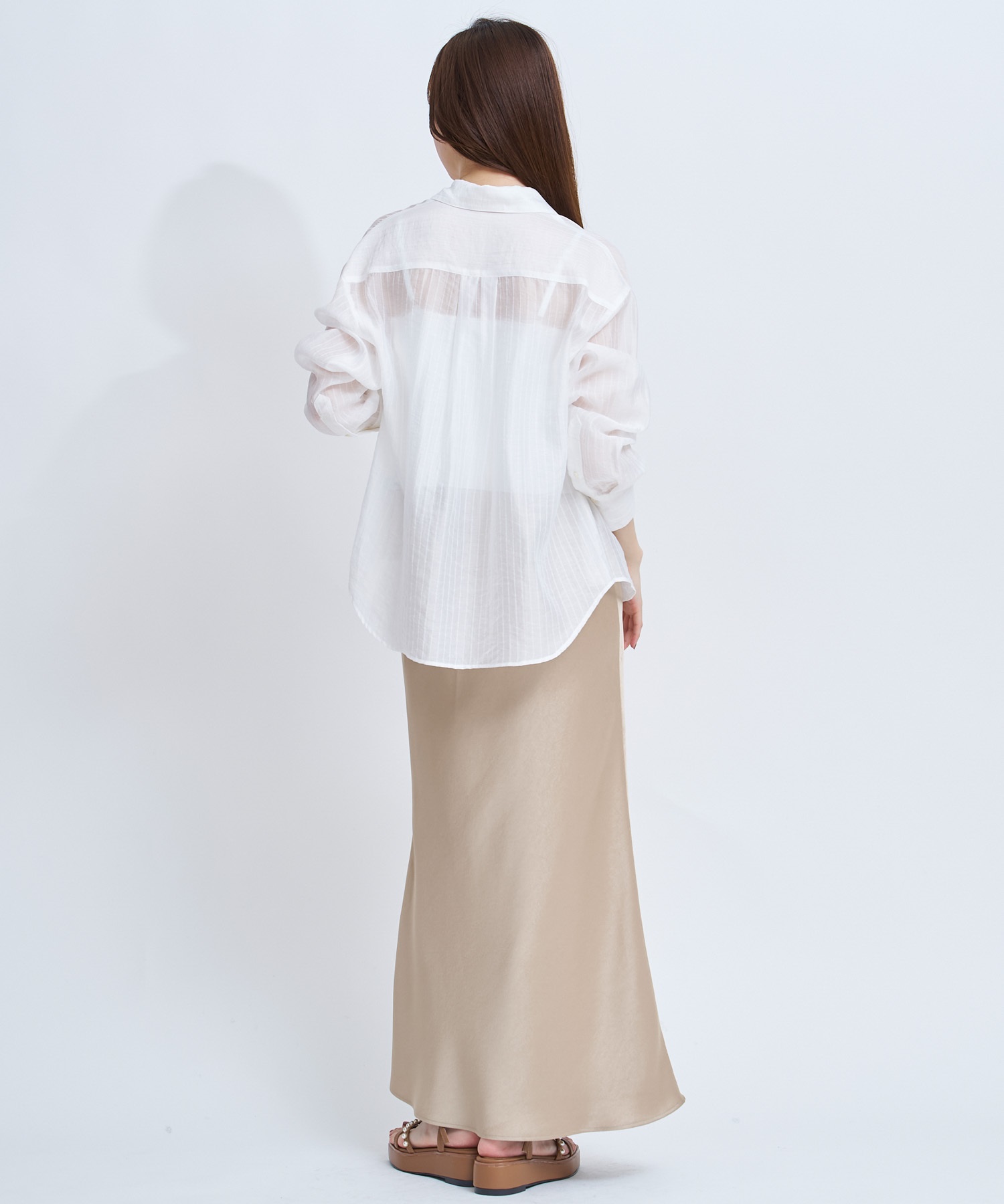 バイヤス使いにより身体のラインにやわらかく沿い、美しい落ち感を演出します。