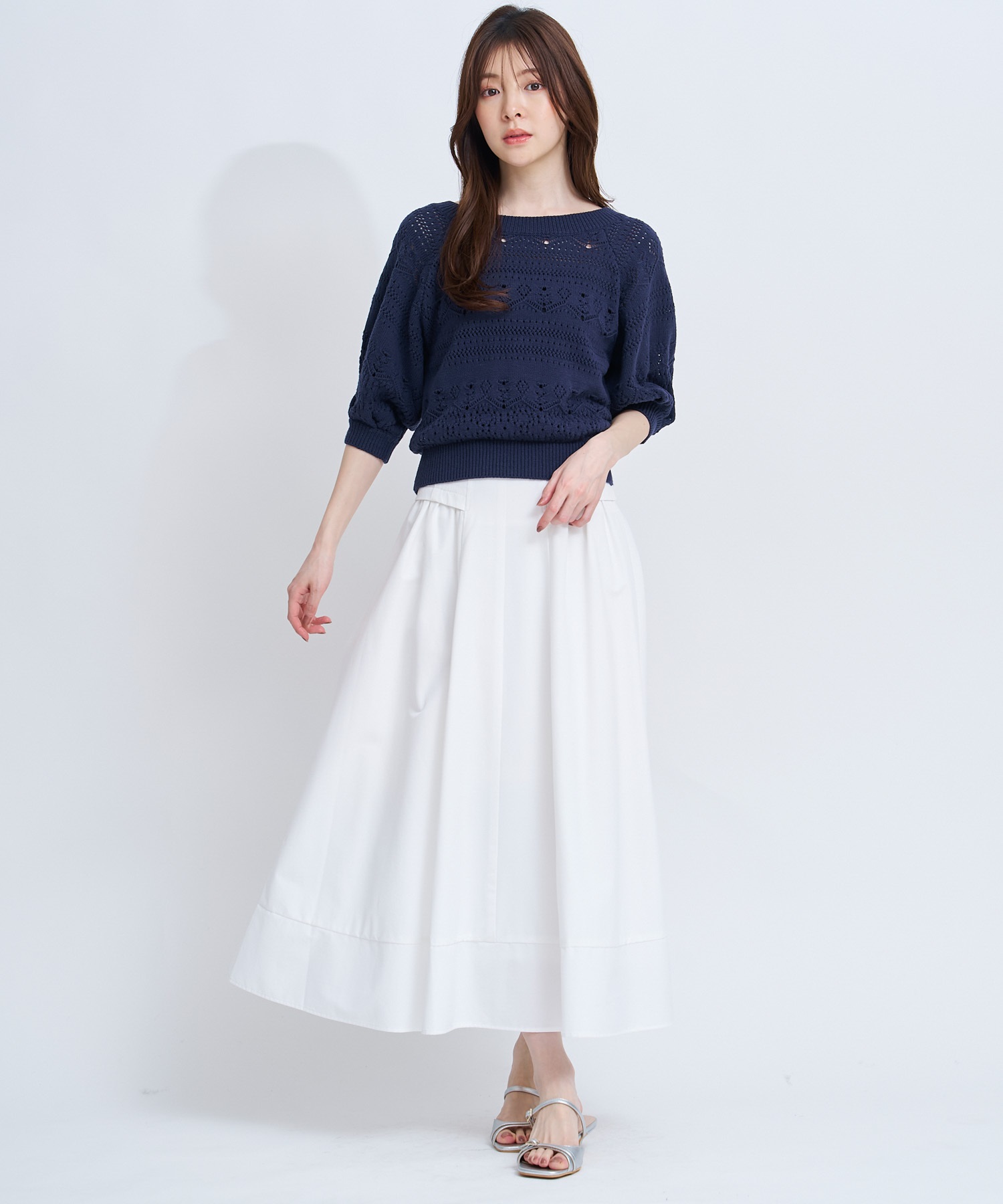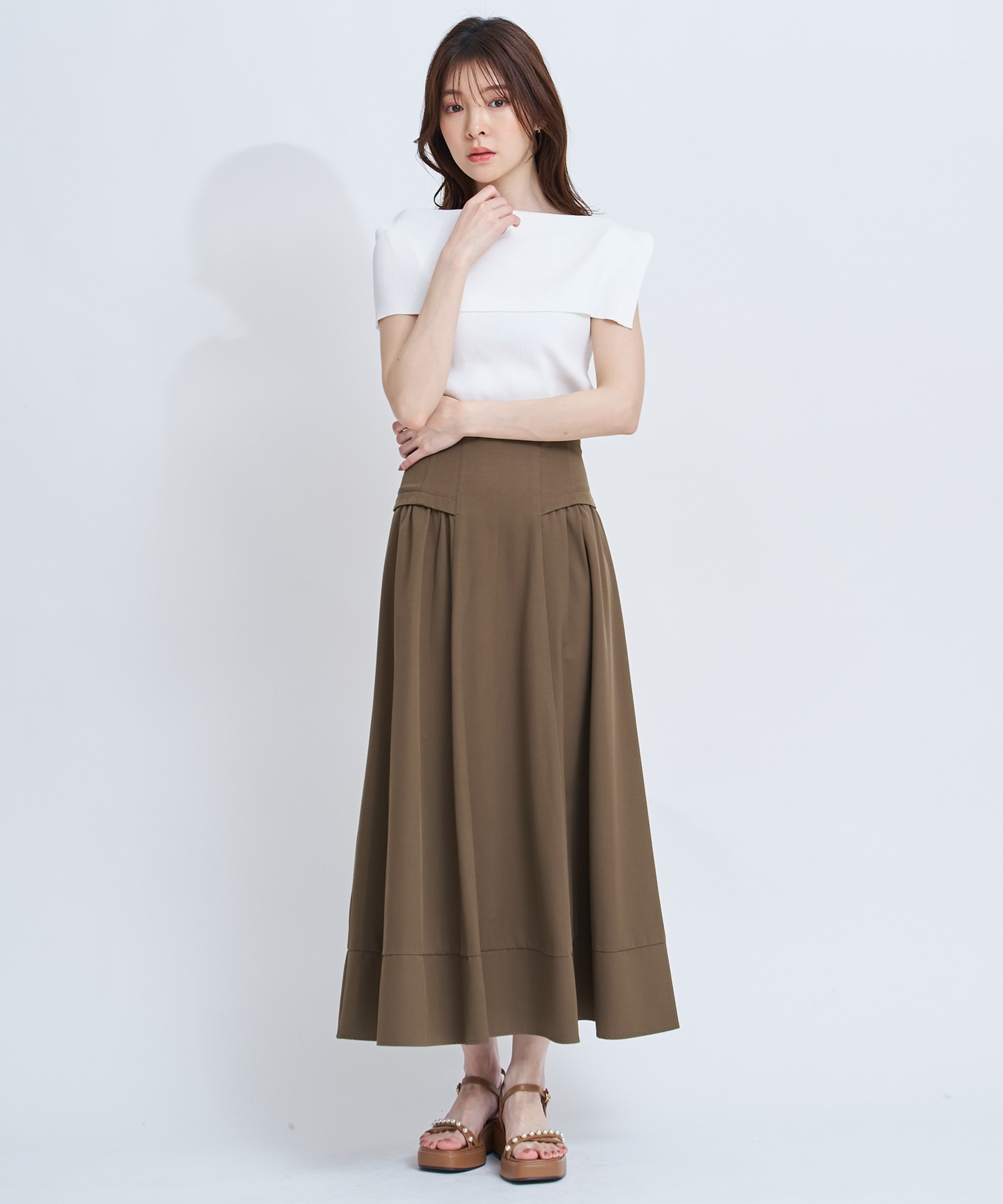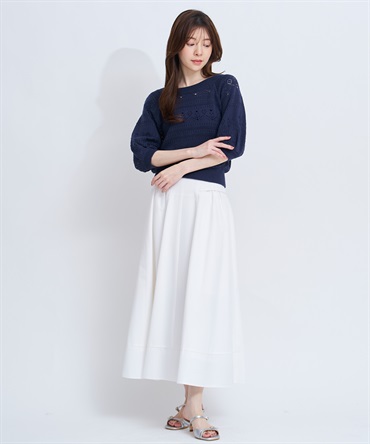 たっぷりと広がるフレアが歩くたびに軽やかに揺れ、上品で華やかな印象に。